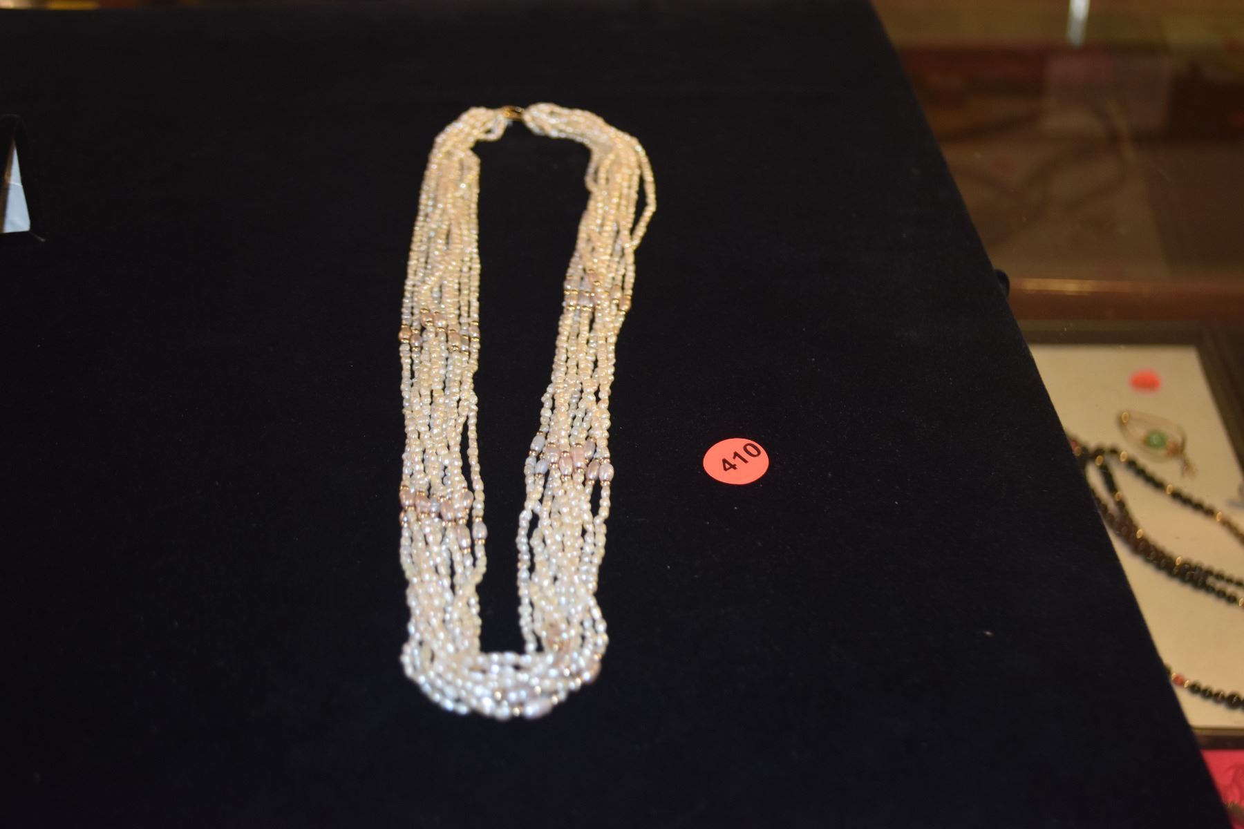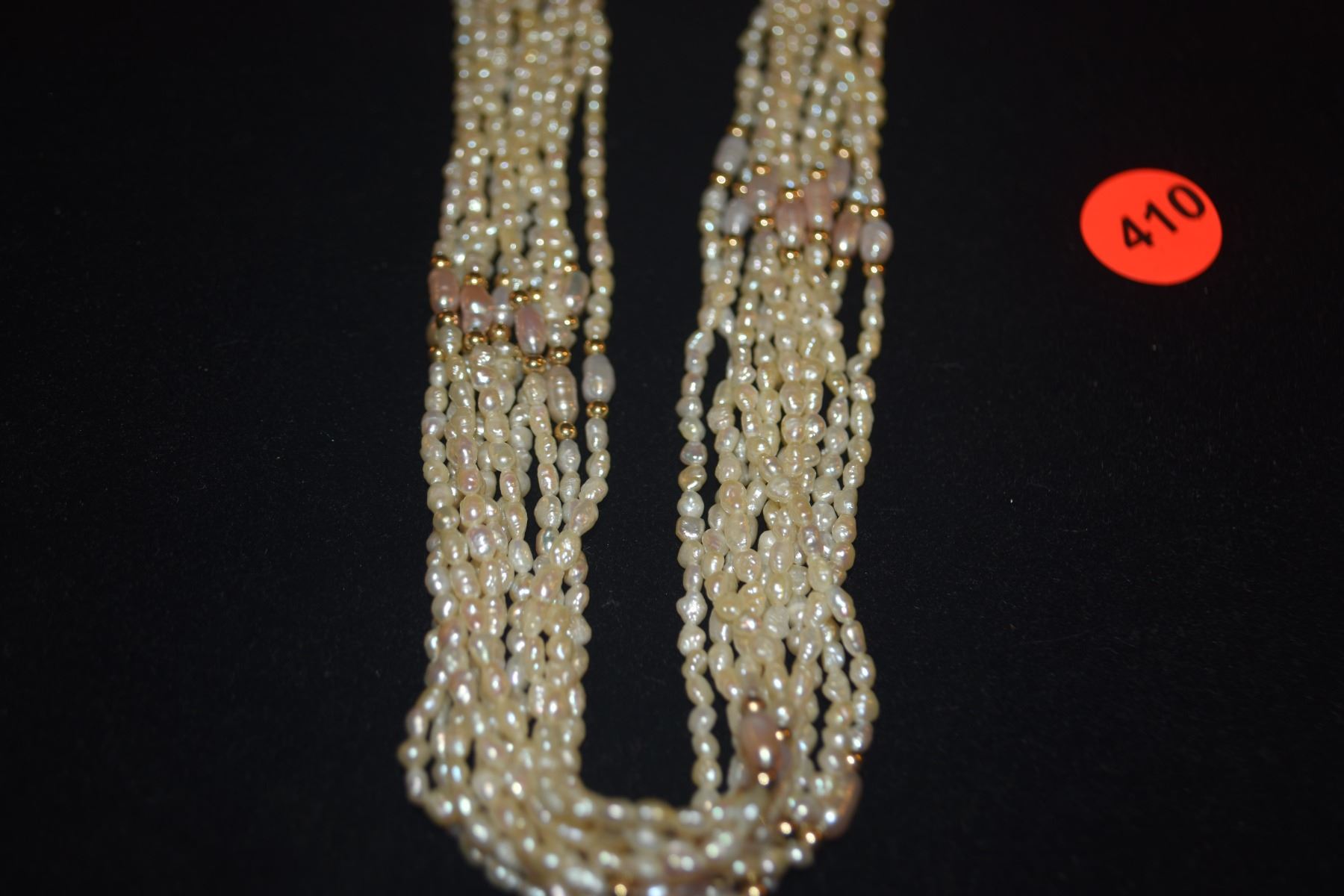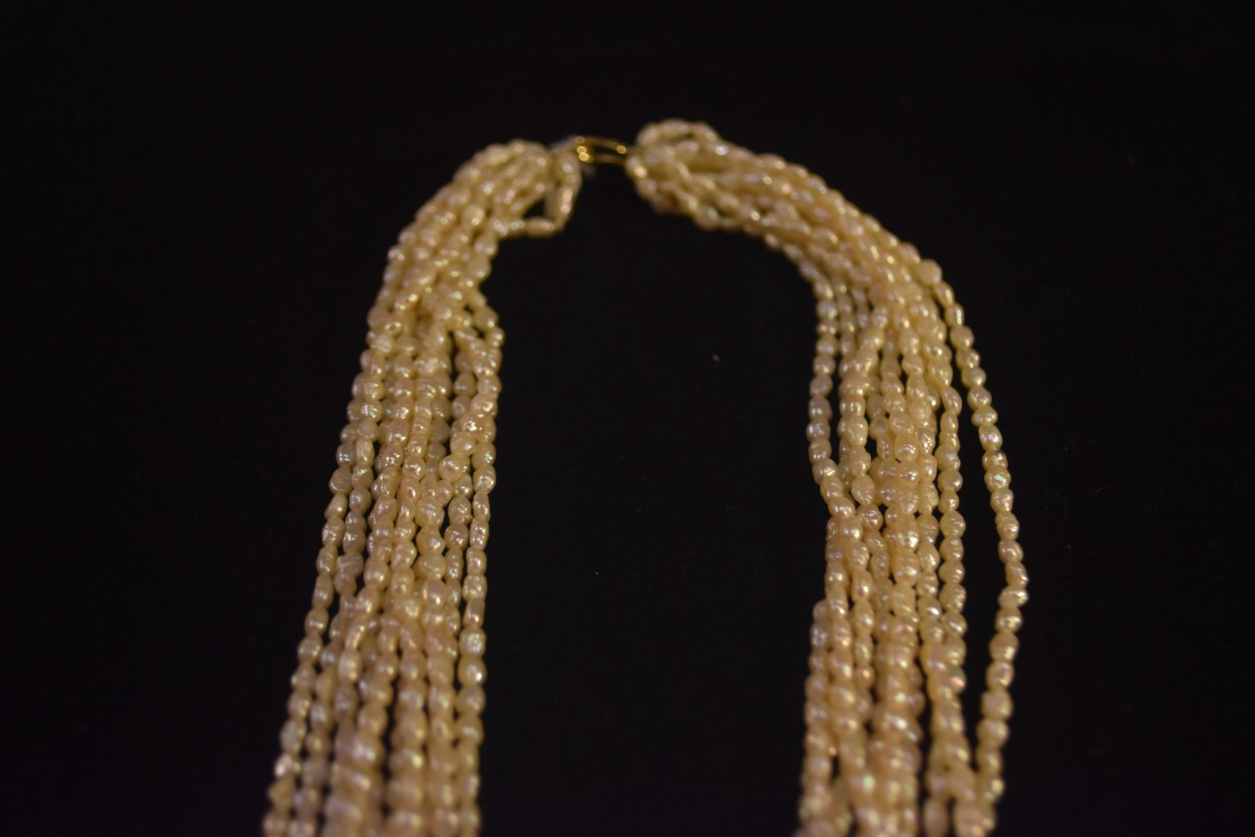 10 STRAND FRESH WATER RICE PEARL NECKLACE W/14K CLASP (30")