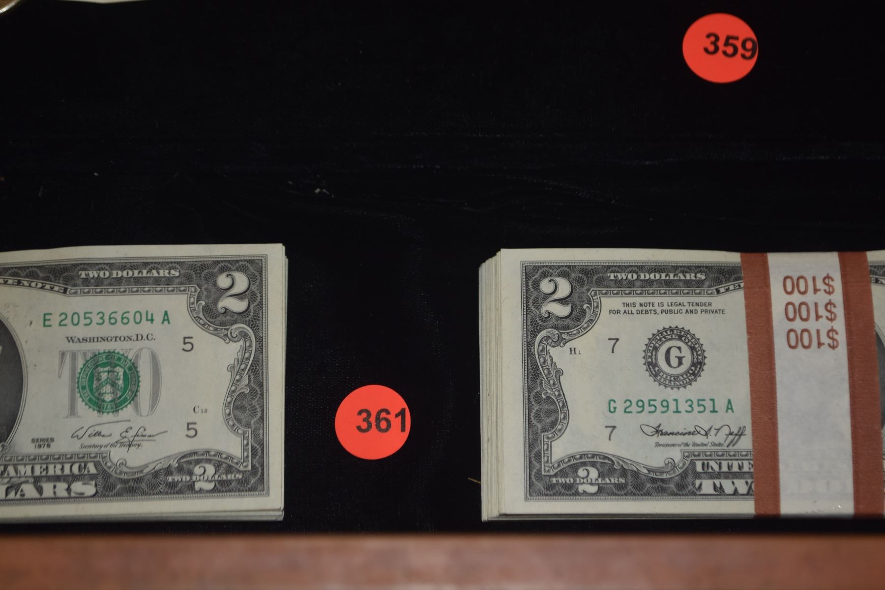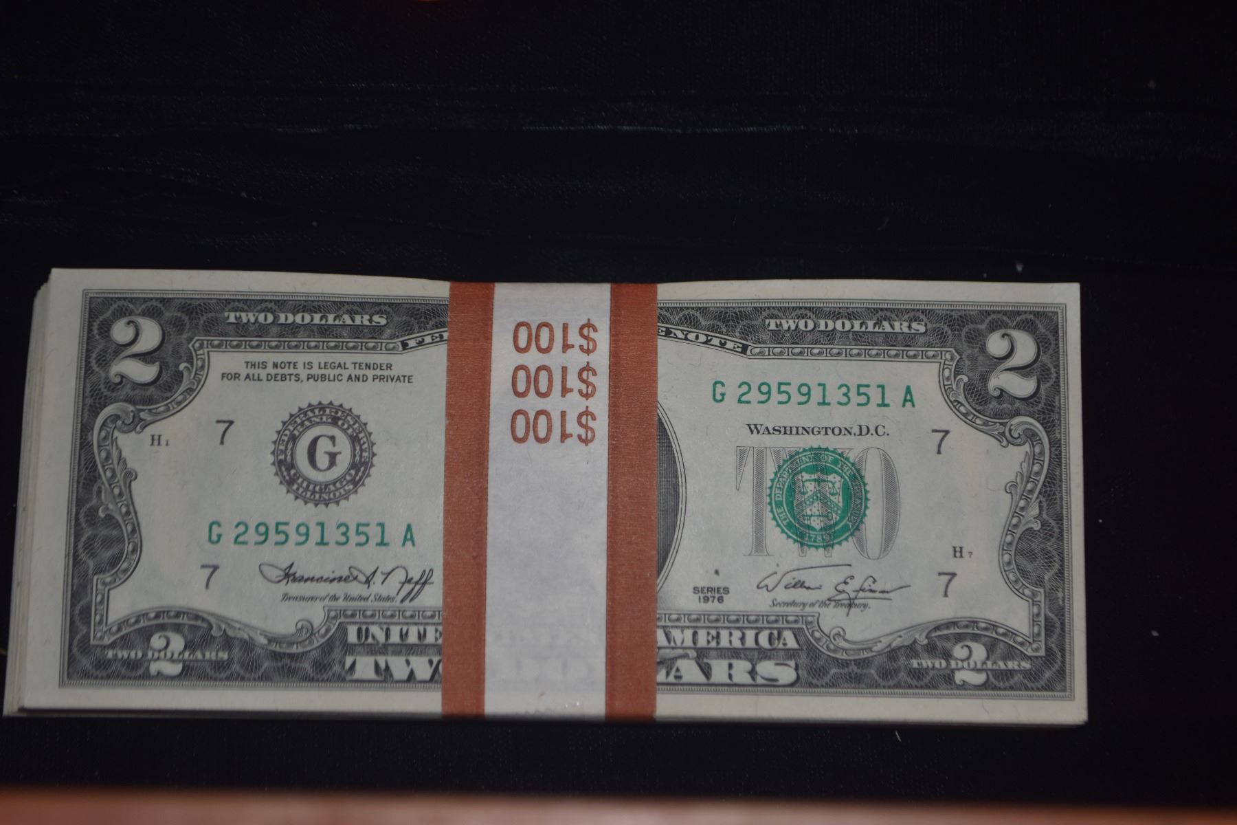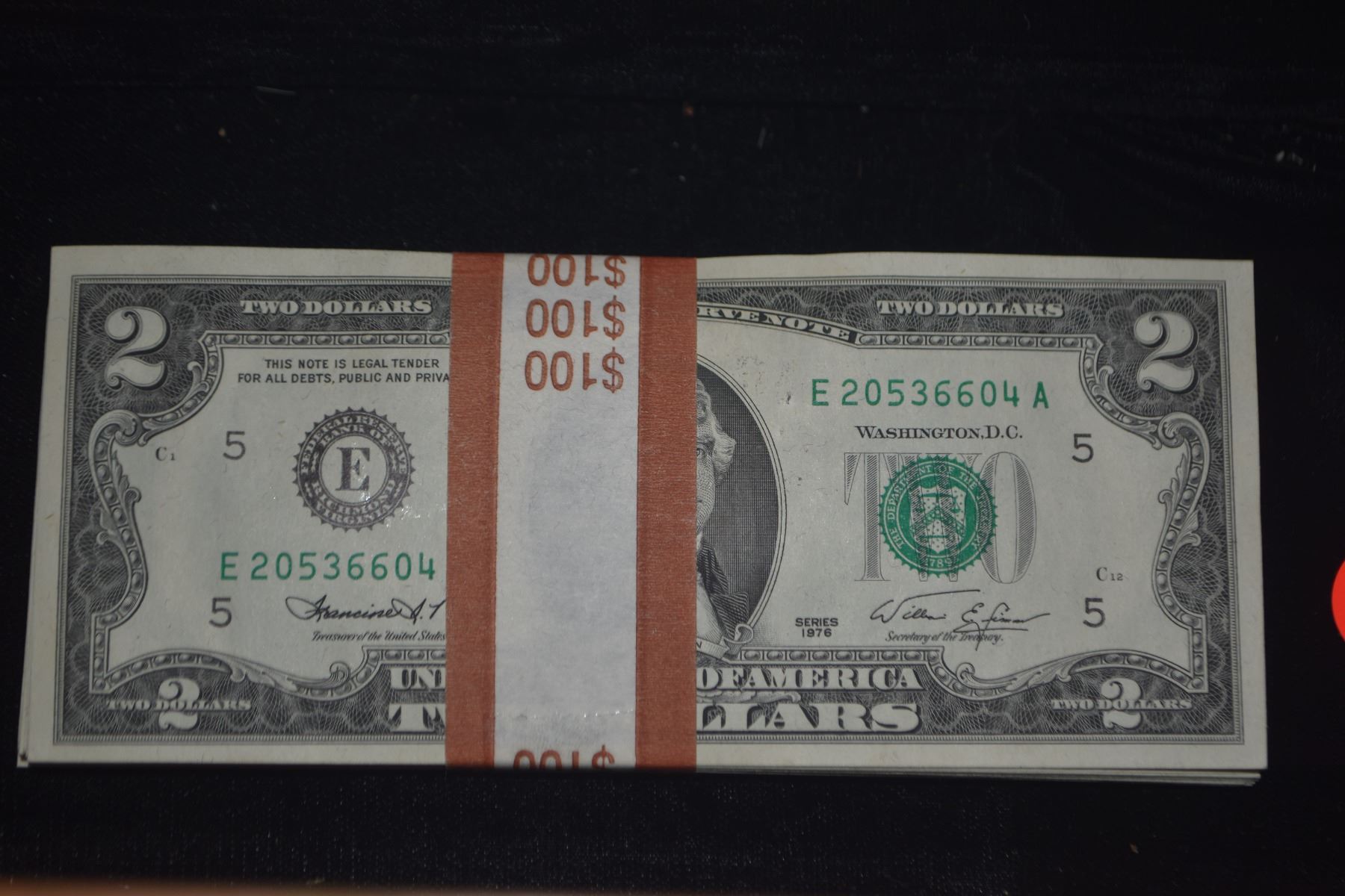 100 $2 DOLLAR BILLS. W/1ST DAY STAMP (100 PCS)