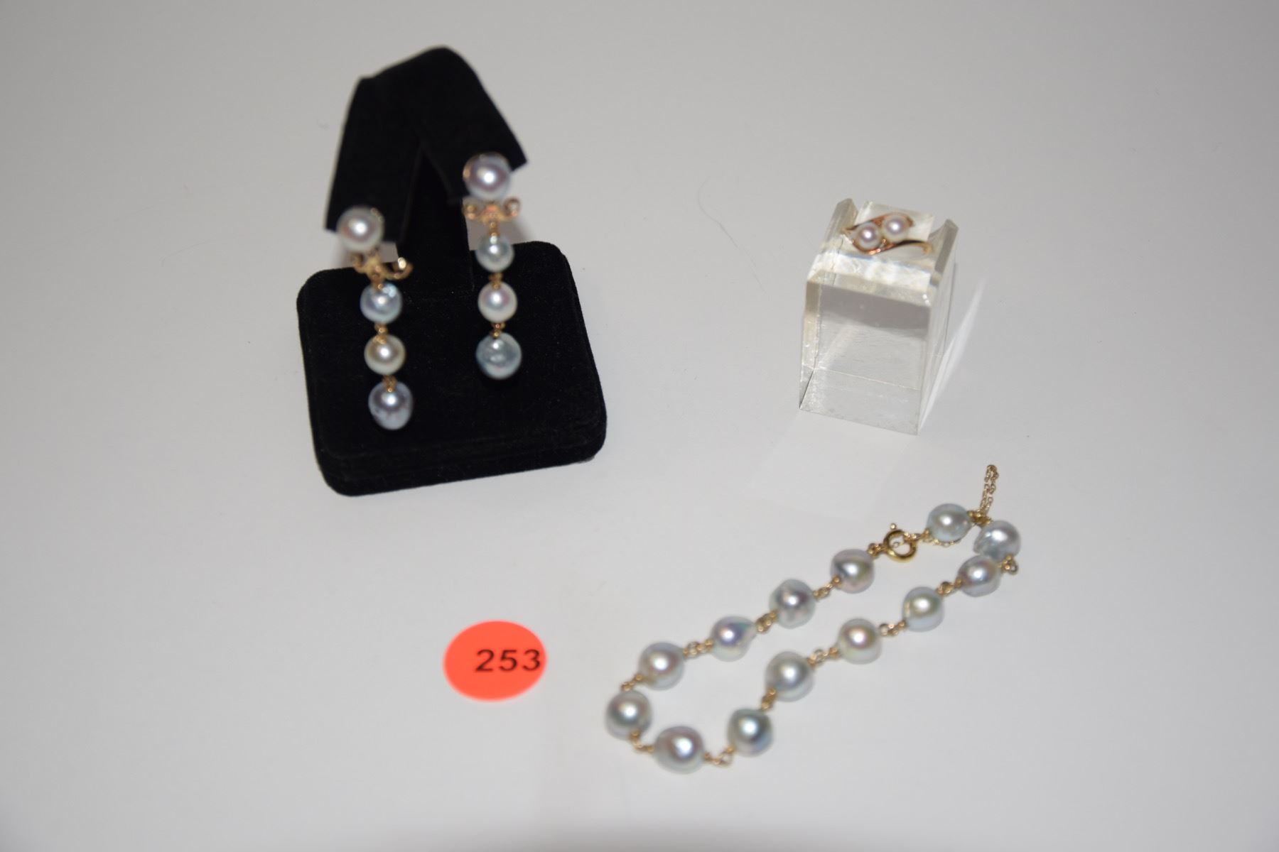 10K PEARL RING & GOLD FILLED BAROQUE PEARL BRACELET & EARRINGS