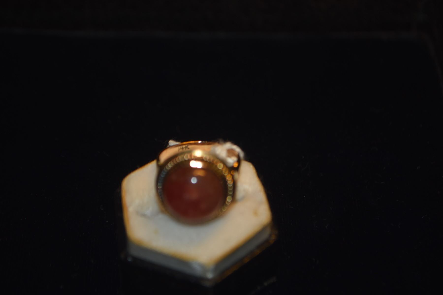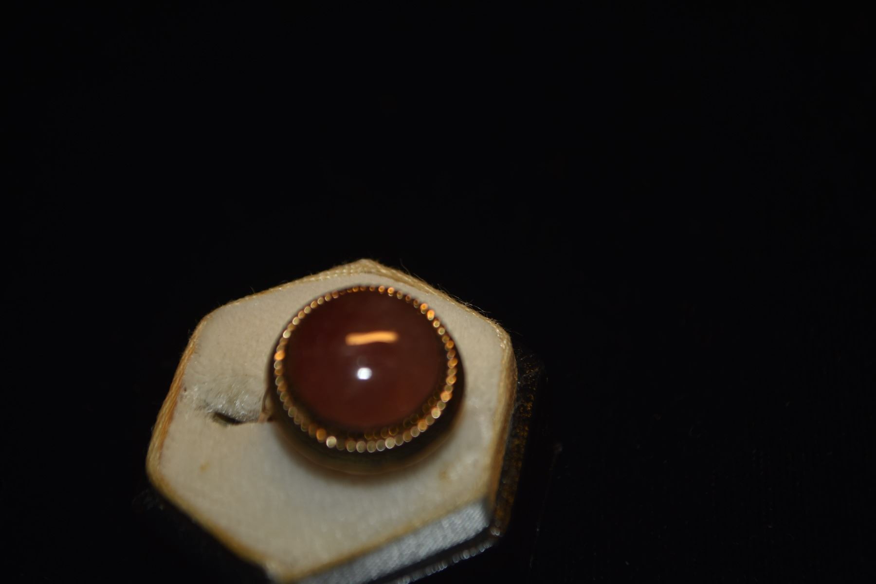 10K (TESTED) QUARTZ CABOCHON RING, SIZE 5 (4.6 GTW)