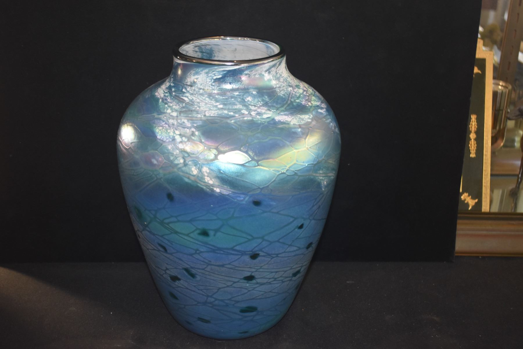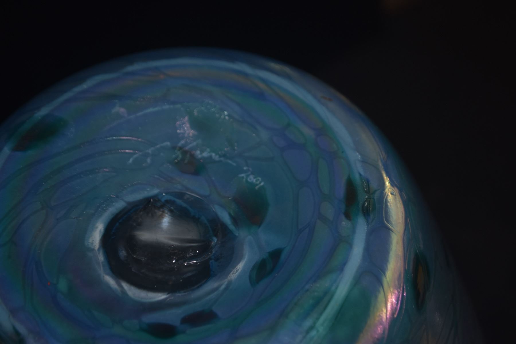 11 3/4" HAND BLOWN ART GLASS VASE; SIGNED TOM STOENER 2001