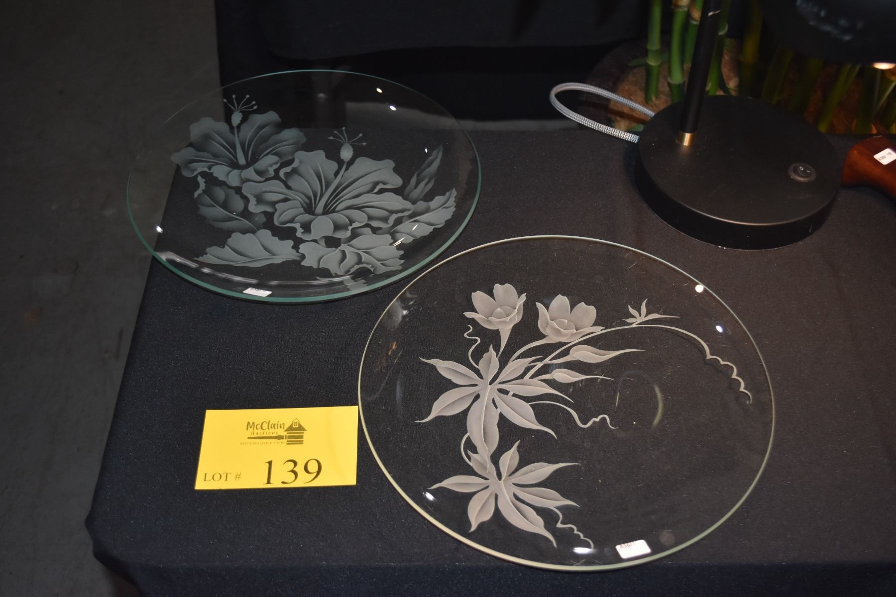 12" ETCHED GLASS PLATES, HIBISCUS & WOOD ROSE (2 PCS)