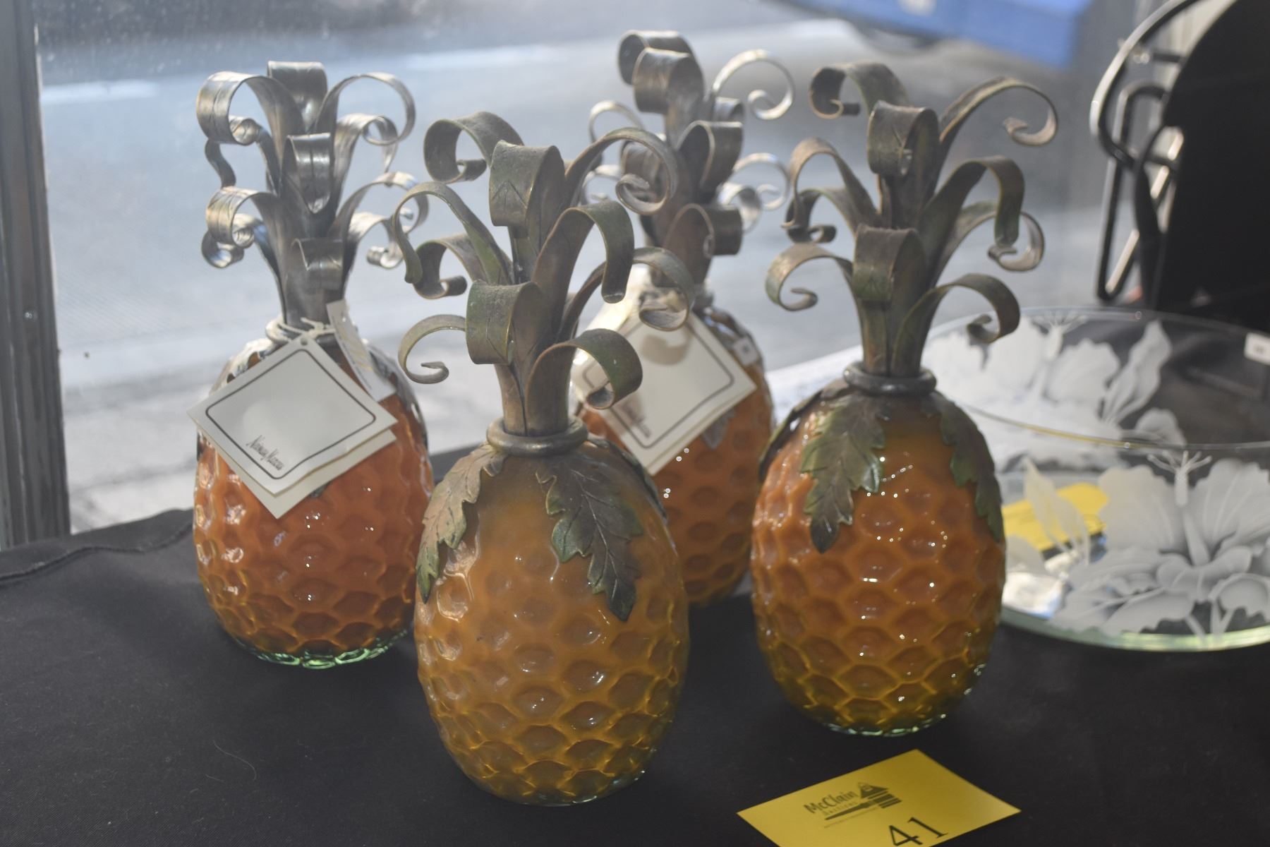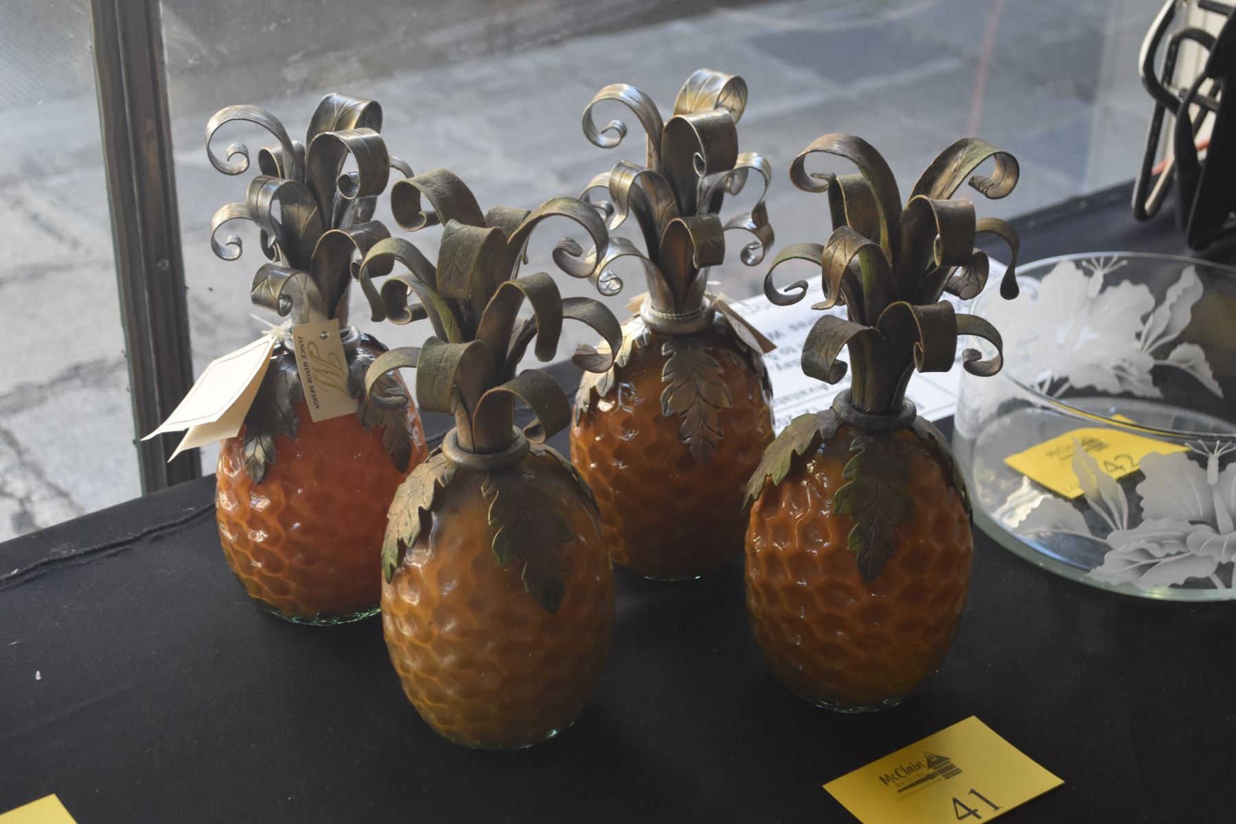12" JANICE MINOR GLASS & METAL PINEAPPLES (4 PCS)