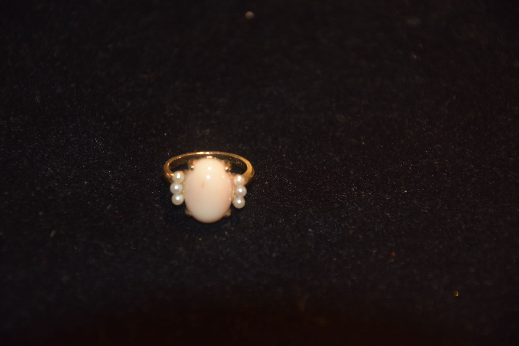 14K ANGEL SKIN CORAL & PEARL RING (6 GTW)