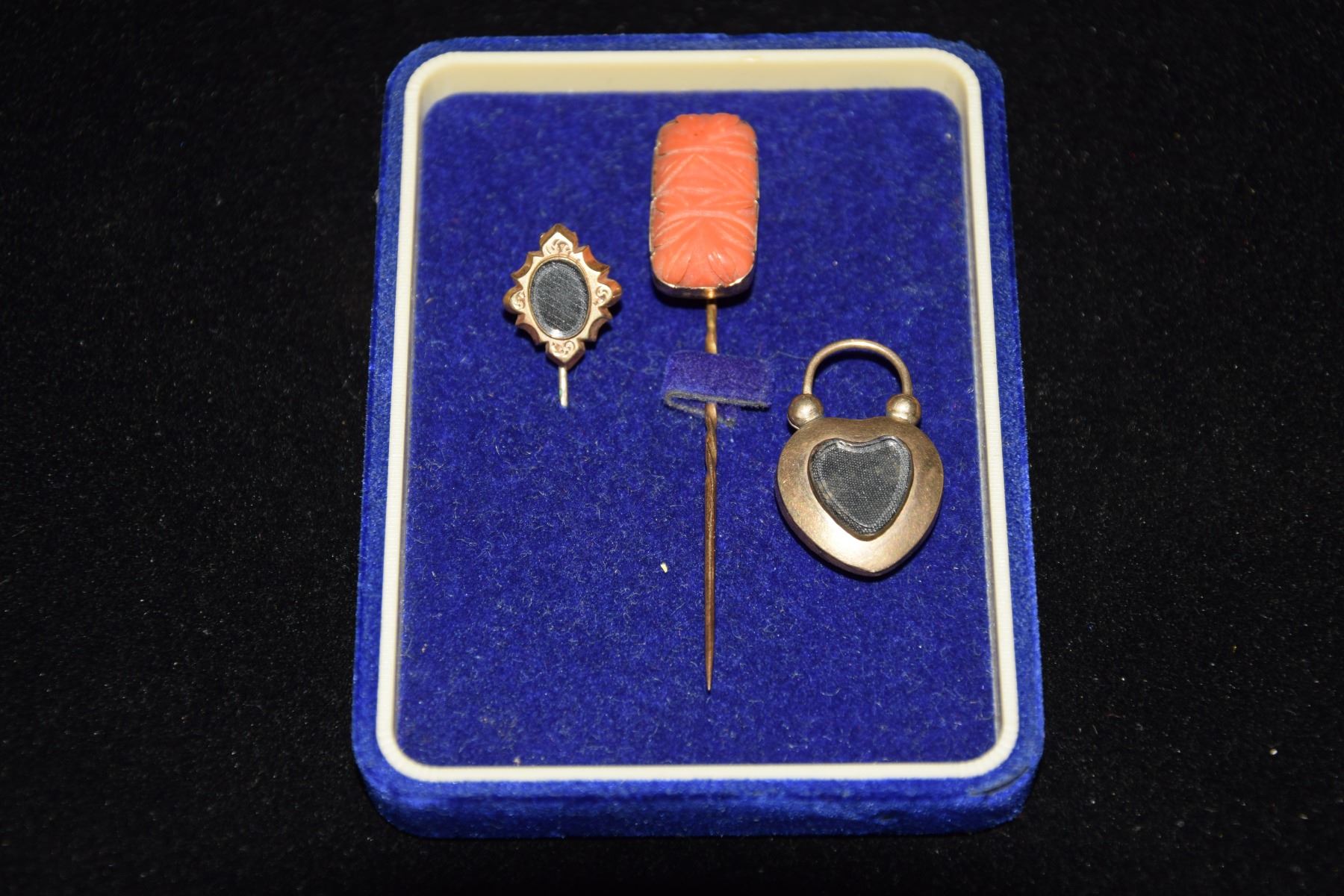 14K CORAL STICK PIN, VICTORIAN LOCKET & PIN (3 PCS)