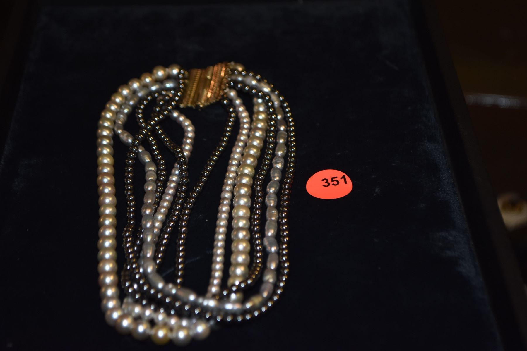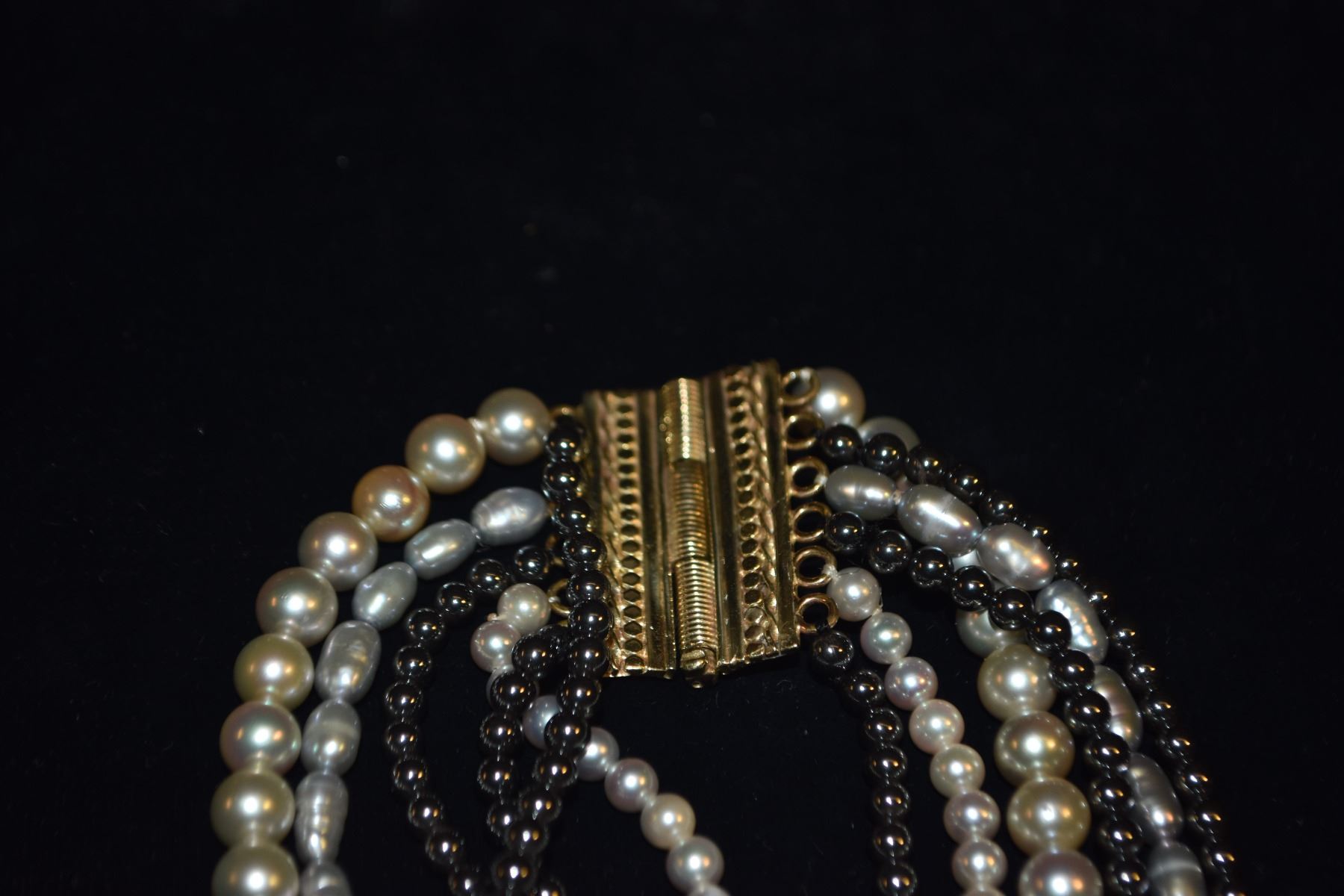 14K GRADUATED PEARL & HEMATITE NECKLACE (APPROX. 16")