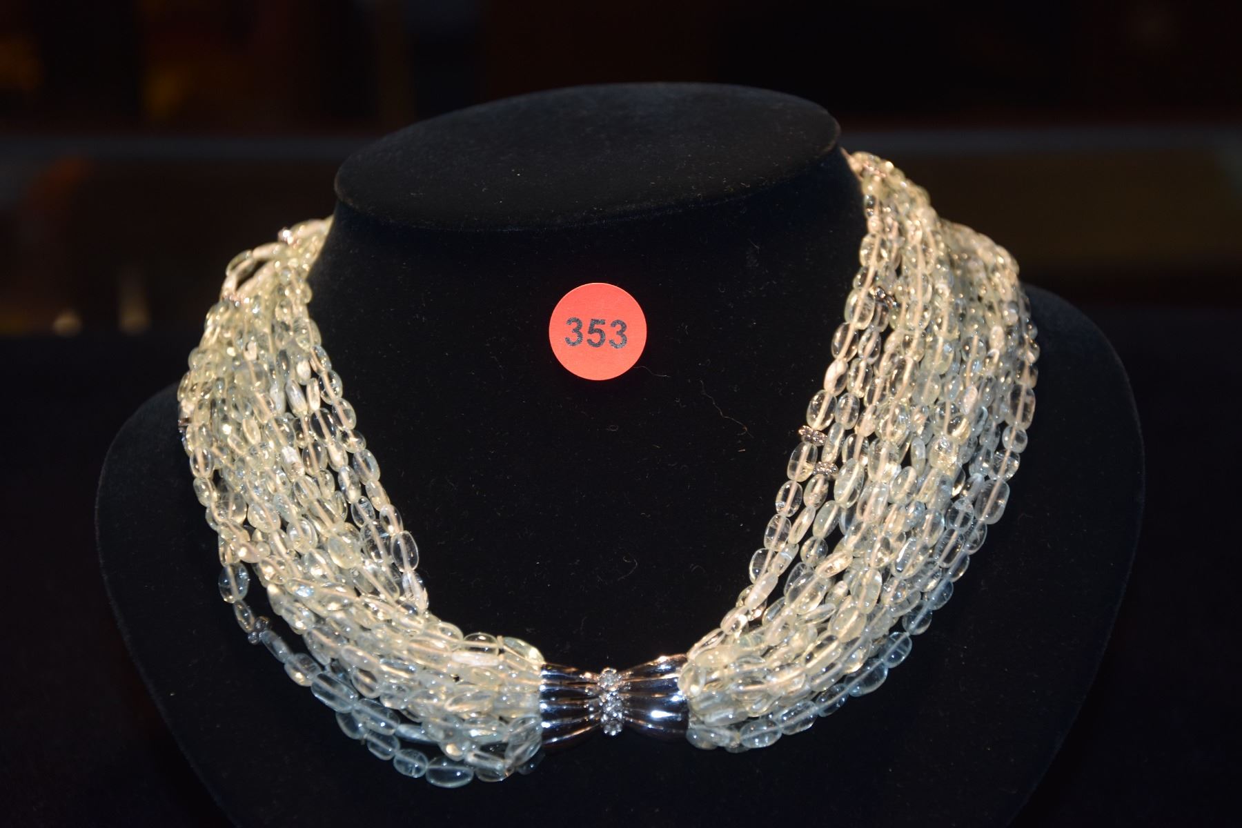14K GW AQUAMARINE & DIAMOND NECKLACE