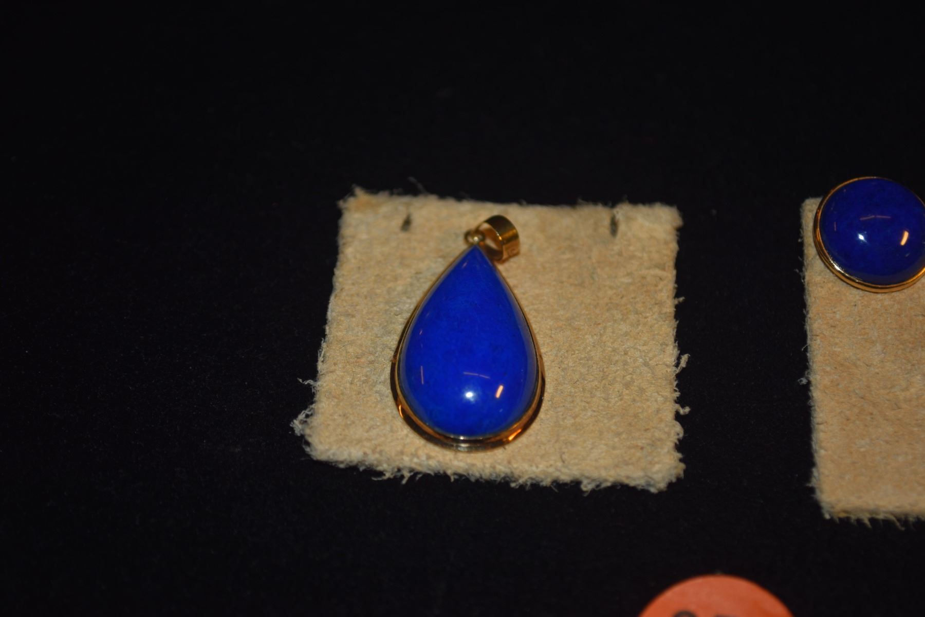 14K LAPIS LAZULI EARRINGS & PENDANT (2 PCS)