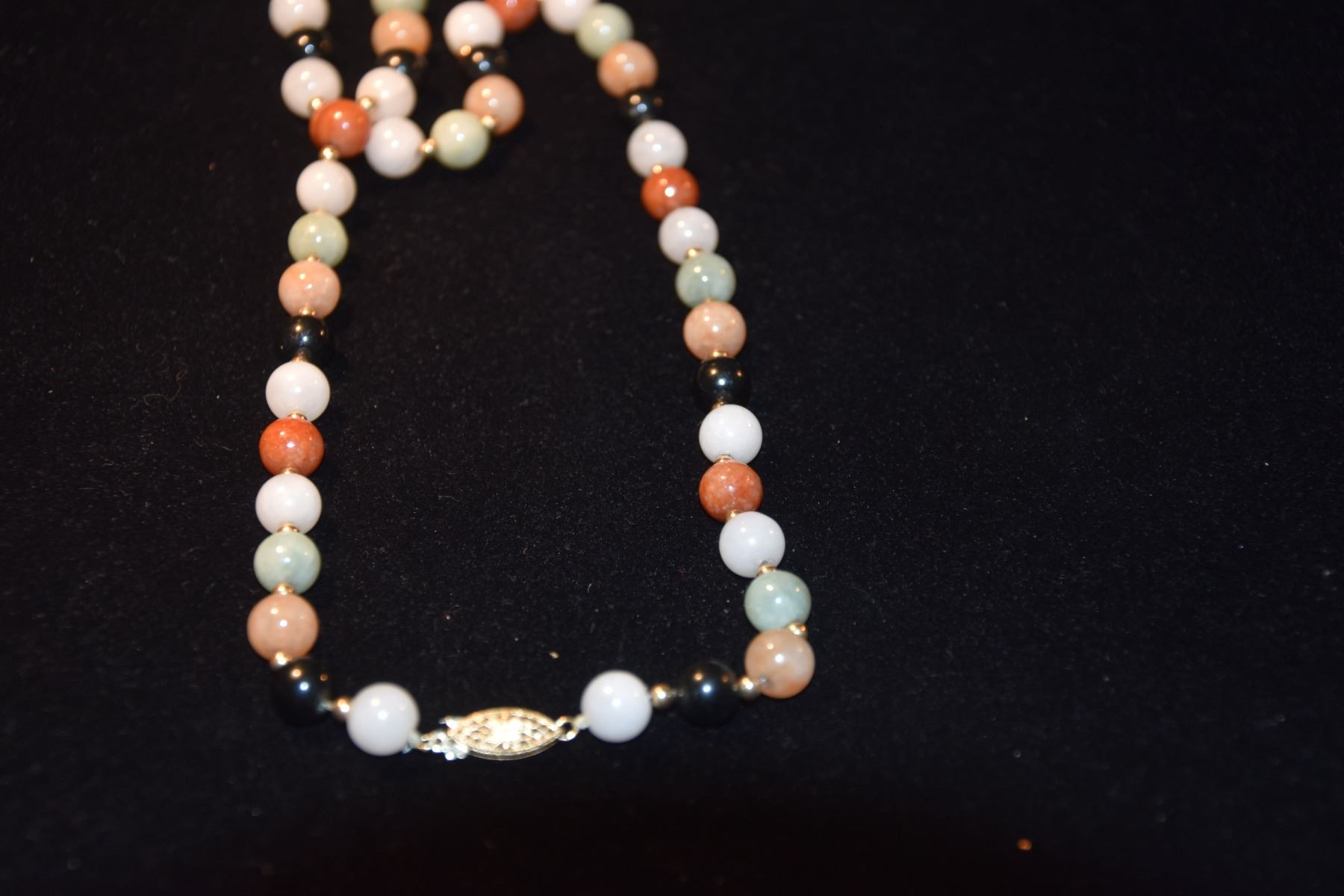 14K MULTICOLOR JADE BEAD NECKLACE