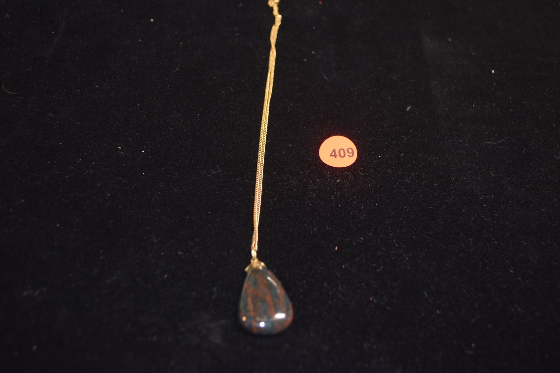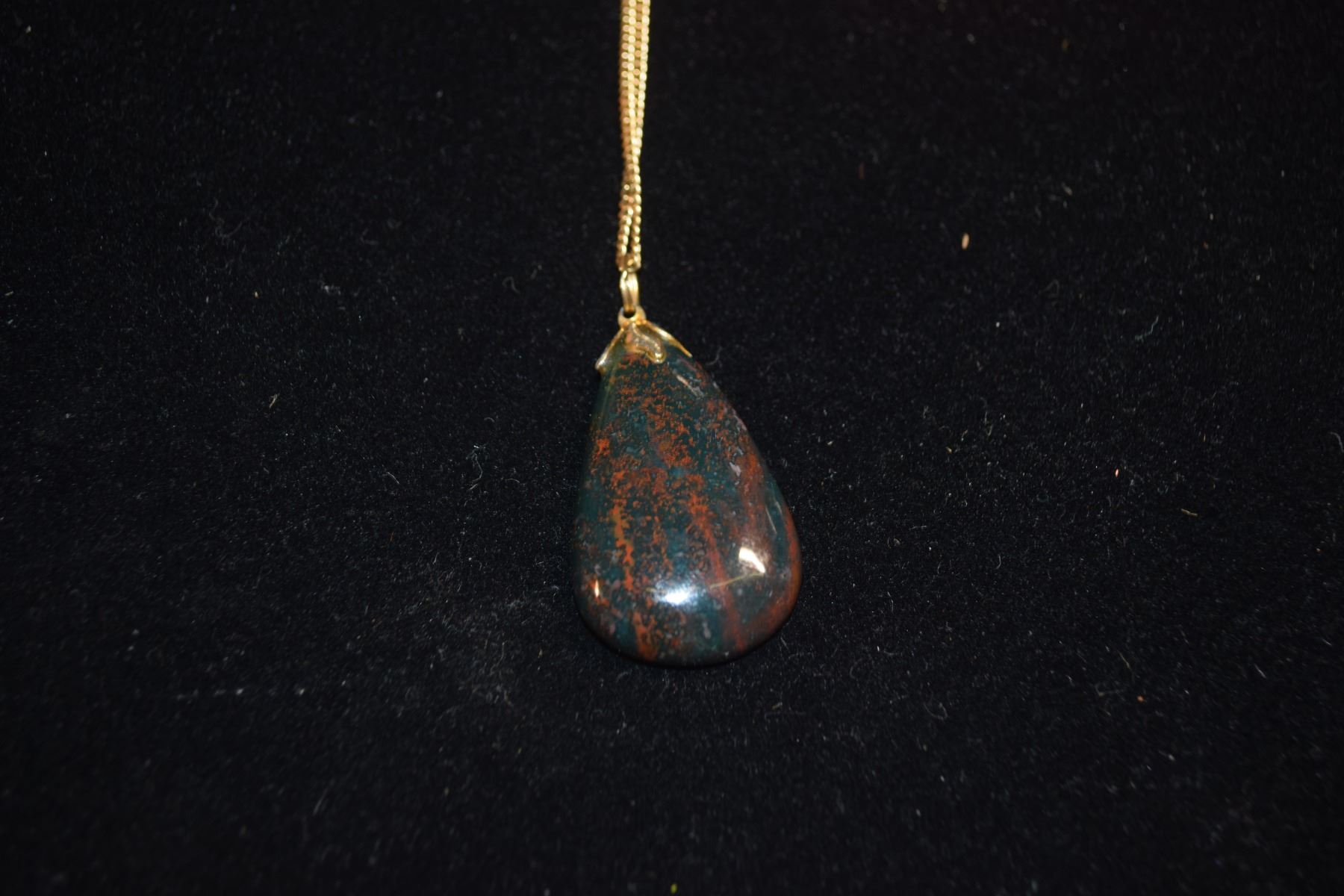 14K NECKLACE W/BLOOD STONE PENDANT (CHAIN 3.1 G)