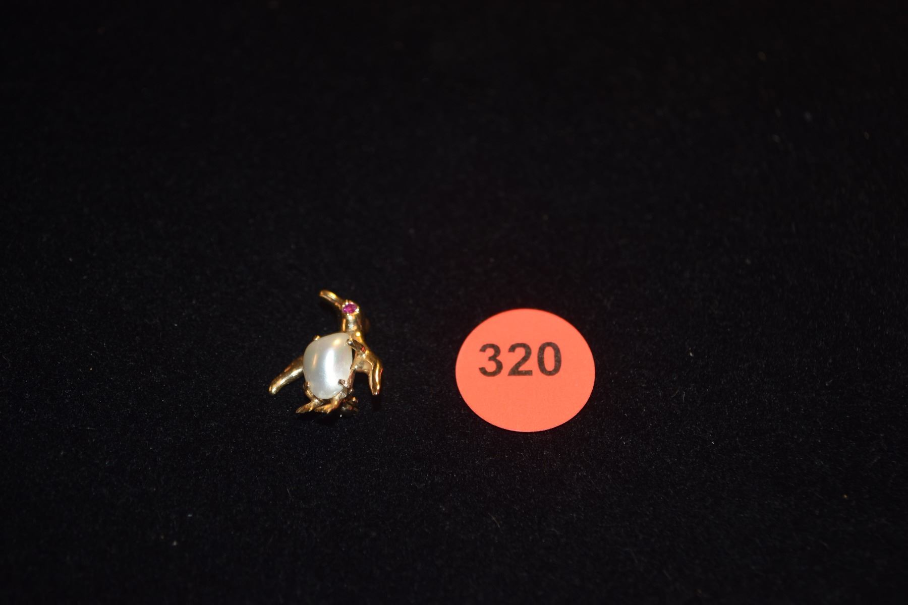 14K PEARL PENGUIN PIN W/RUBY EYE (2.1 GTW)