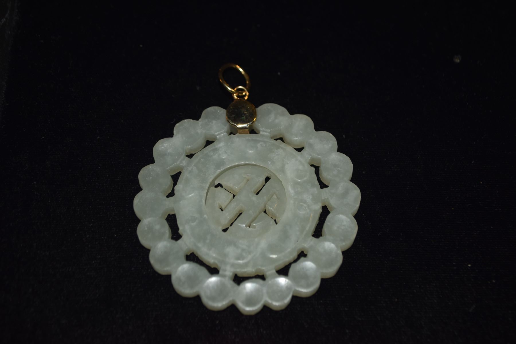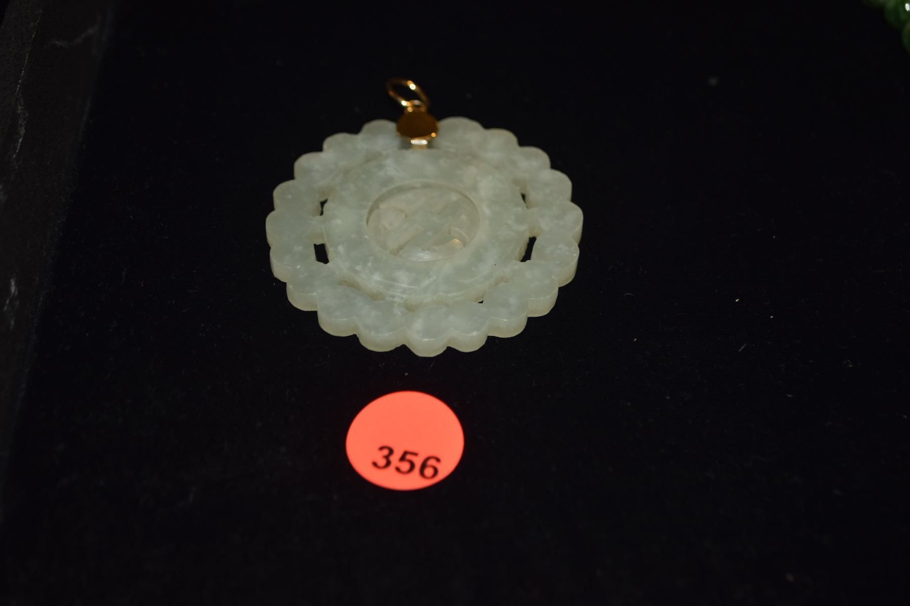 14K (TESTED) NEPHRITE JADE CARVED PENDANT (2 1/4")