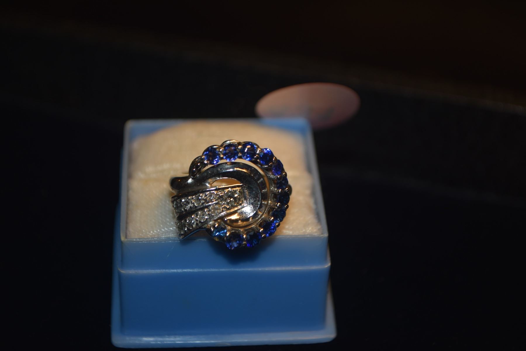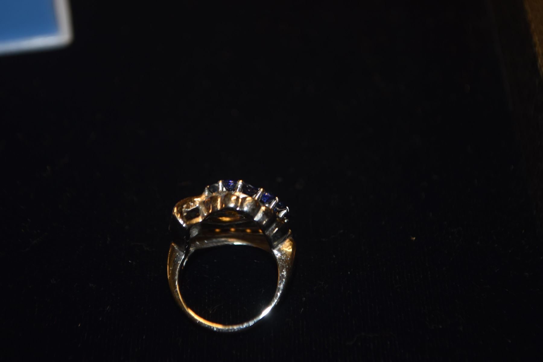 14K WG DIAMOND & SAPPHIRE RING, SIZE 5 (7.4 GTW)