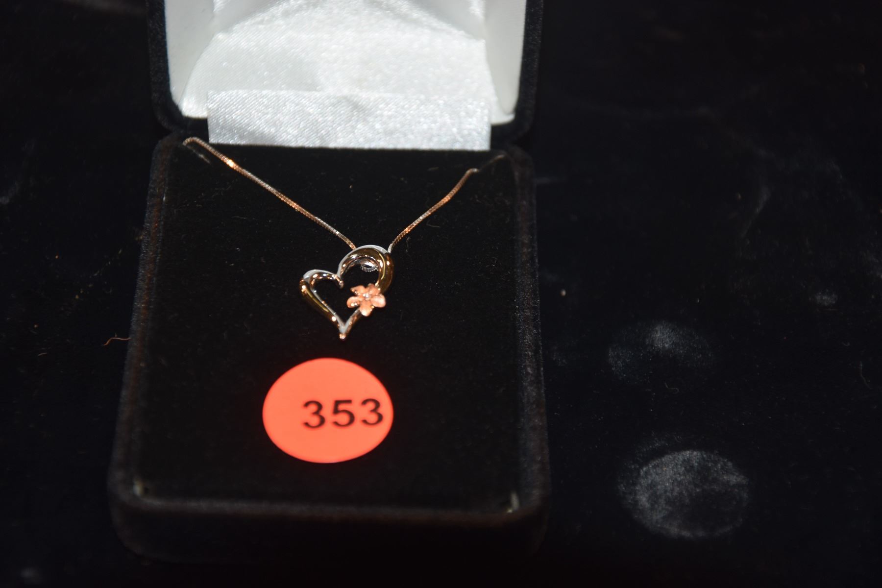 14K WG HAWAIIAN HEART & PLUMERIA FLOWER PENDANT ON CHAIN (3.1 G)