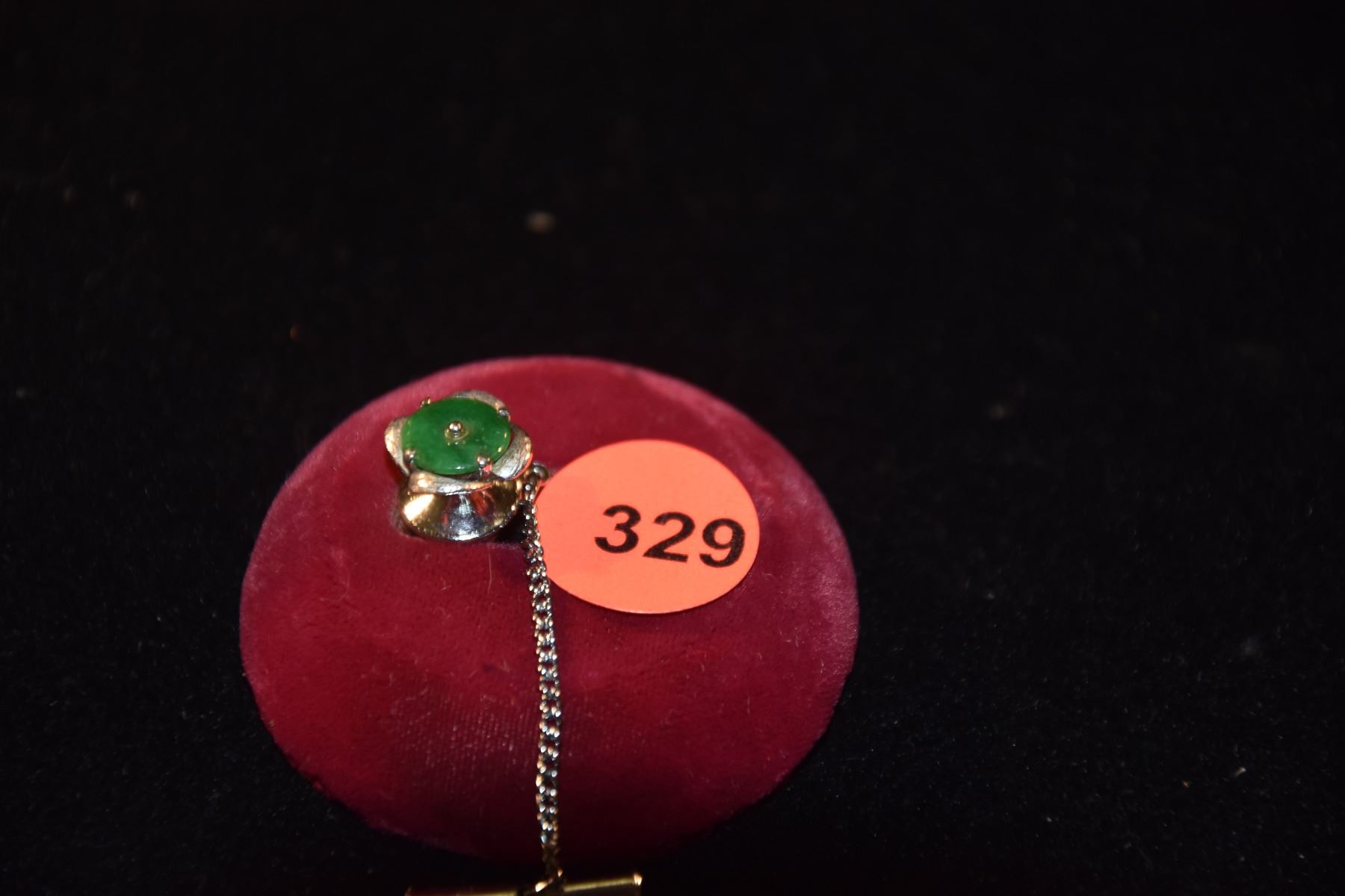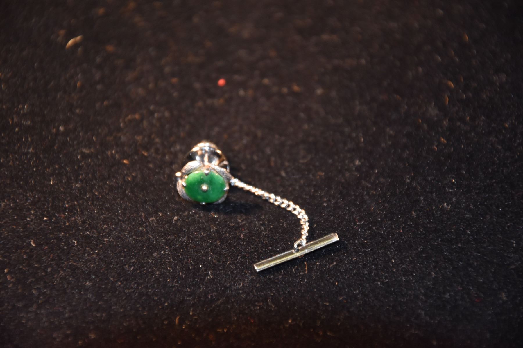14K WG LAPEL PIN W/BURMESE GREEN JADE (1.3 GTW)