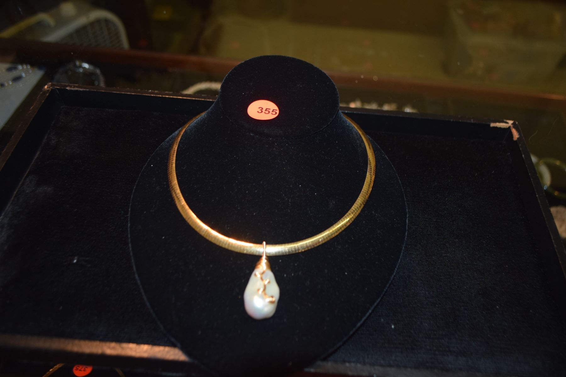 14K WG & YG OMEGA CHAIN COLLAR (REVERSIBLE) & BAROQUE PEARL PENDANT (34.3 G)