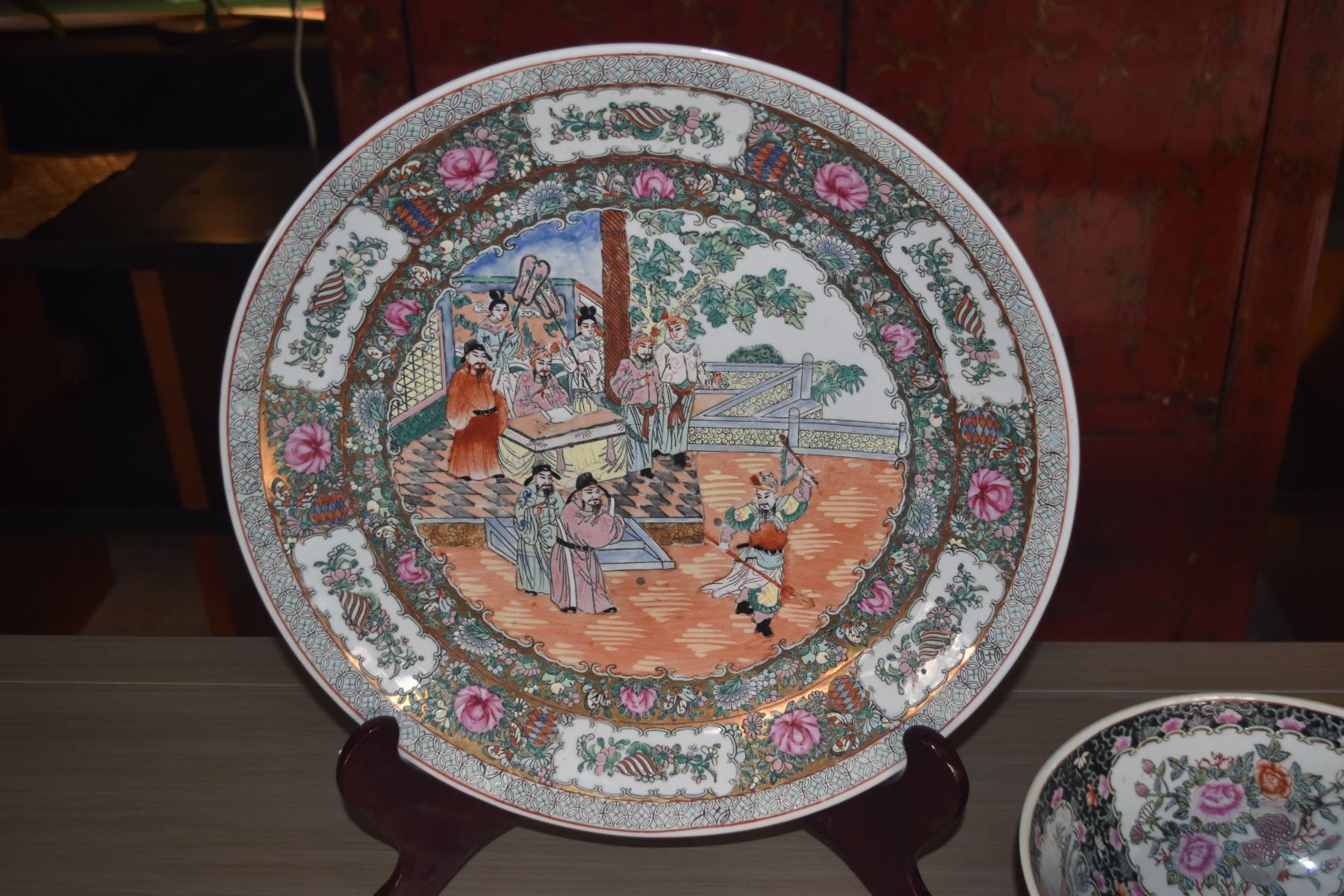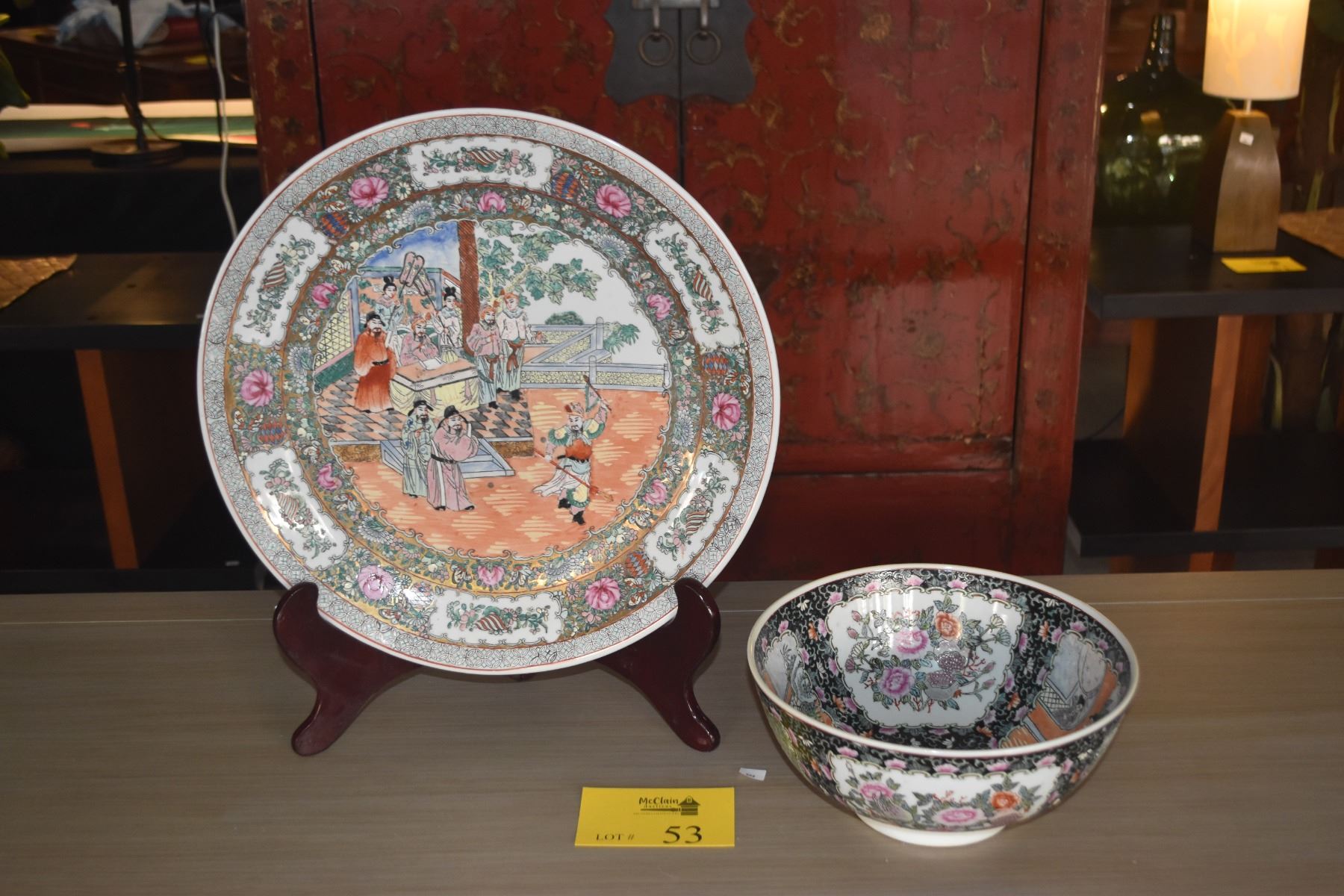 15 3/4" FAMILLE ROSE CHARGER & 10" PORCELAIN BOWL (2 PCS) (DOES NOT INCLUDE STAND)