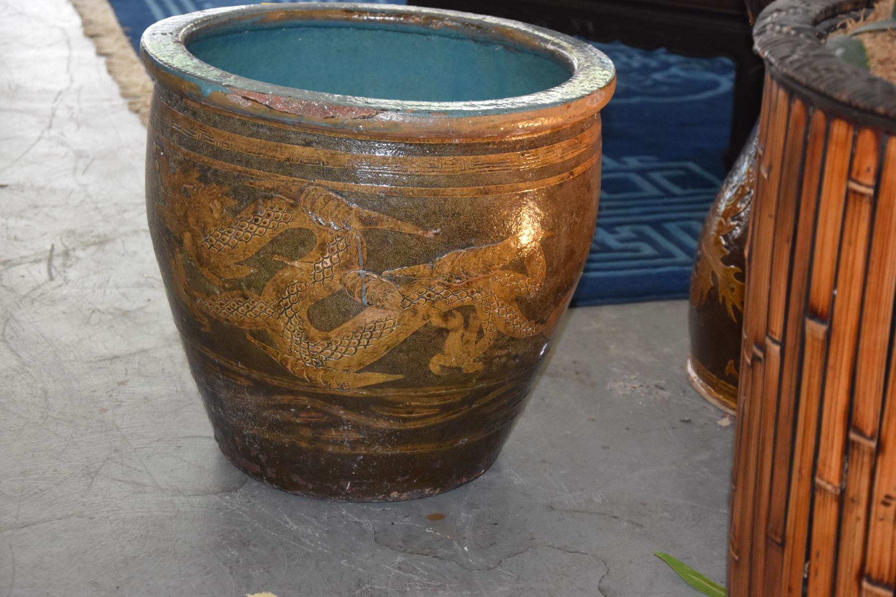 17" EGG POT W/DRAGON MOTIF