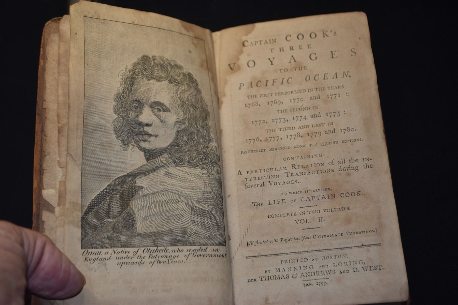 1797 BOOK: CAPTAIN COOK'S THREE VOYAGES TO THE PACIFIC OCEAN, PRINTED AT BOSTON BY MANNING & LORING, FOR THOMAS & ANDREWS & D. WEST JAN, 1797