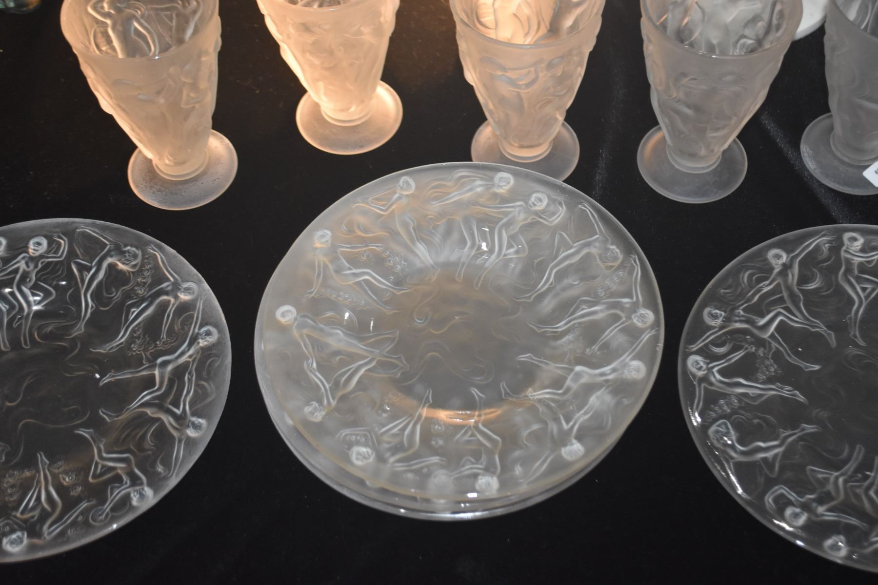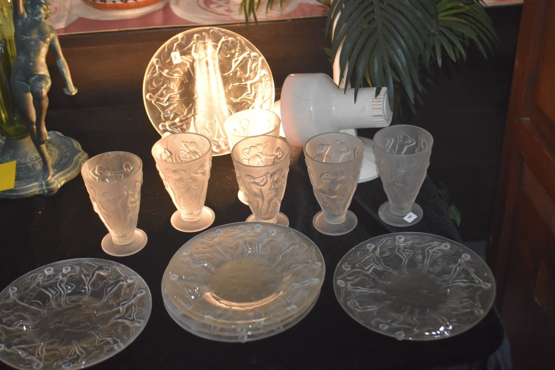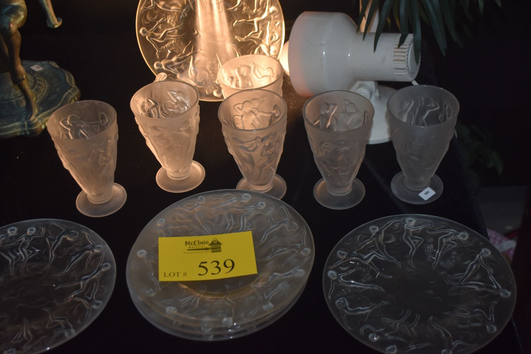 1920'S CONSOLIDATED MARTELE ART DECO FROSTED DANCING NYMPHS TUMBLERS & PLATES (12 PCS)