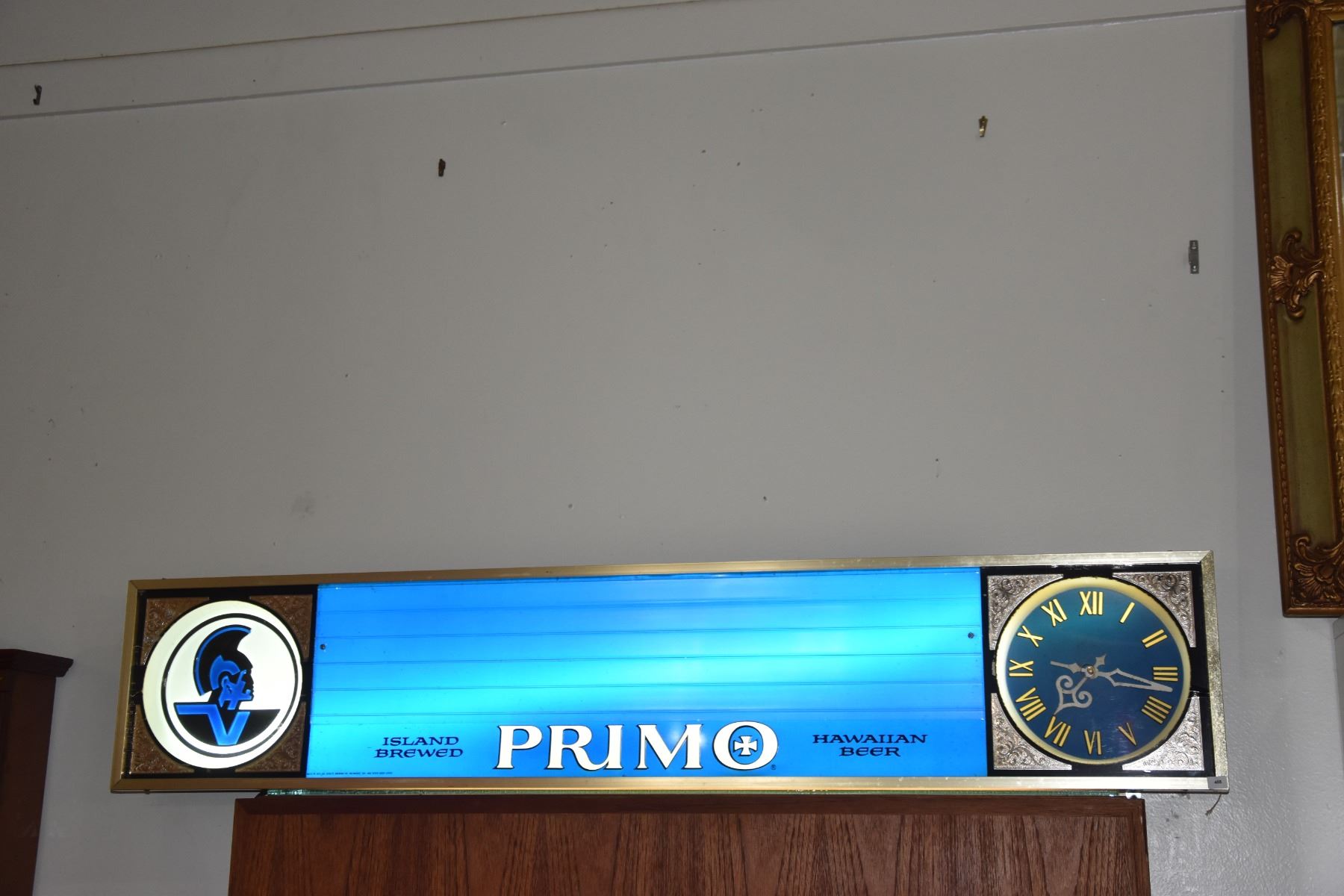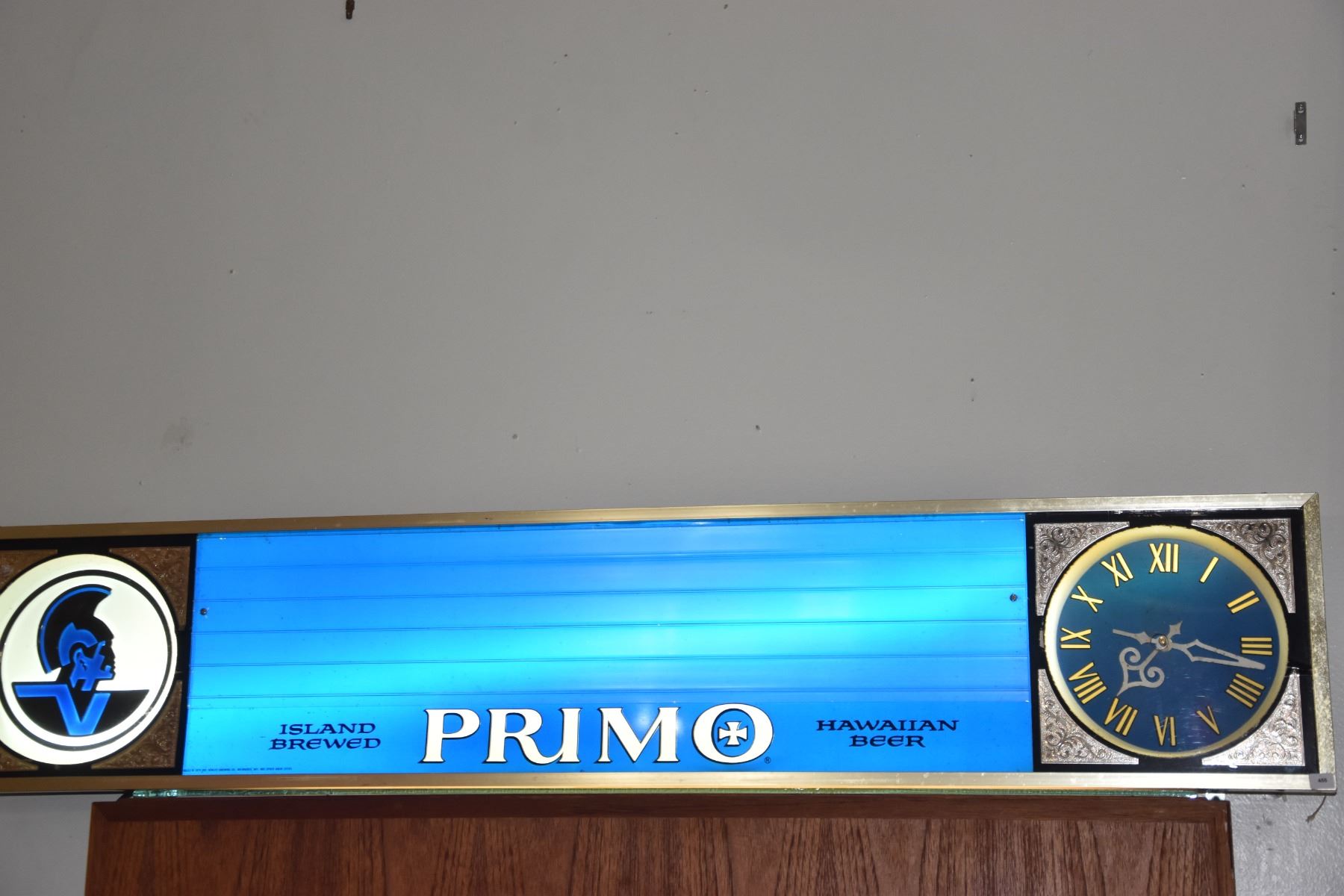 1970'S LIGHTED PRIMO SIGN W/CLOCK