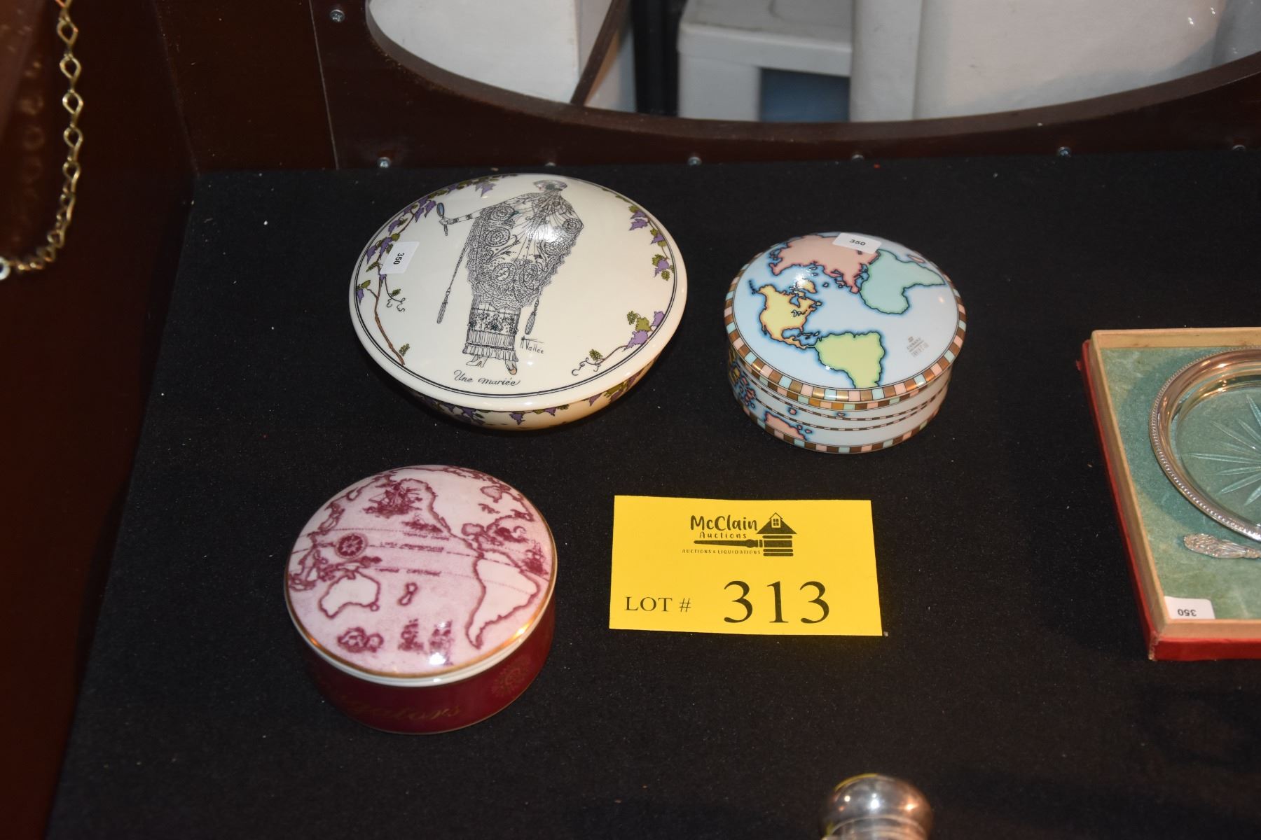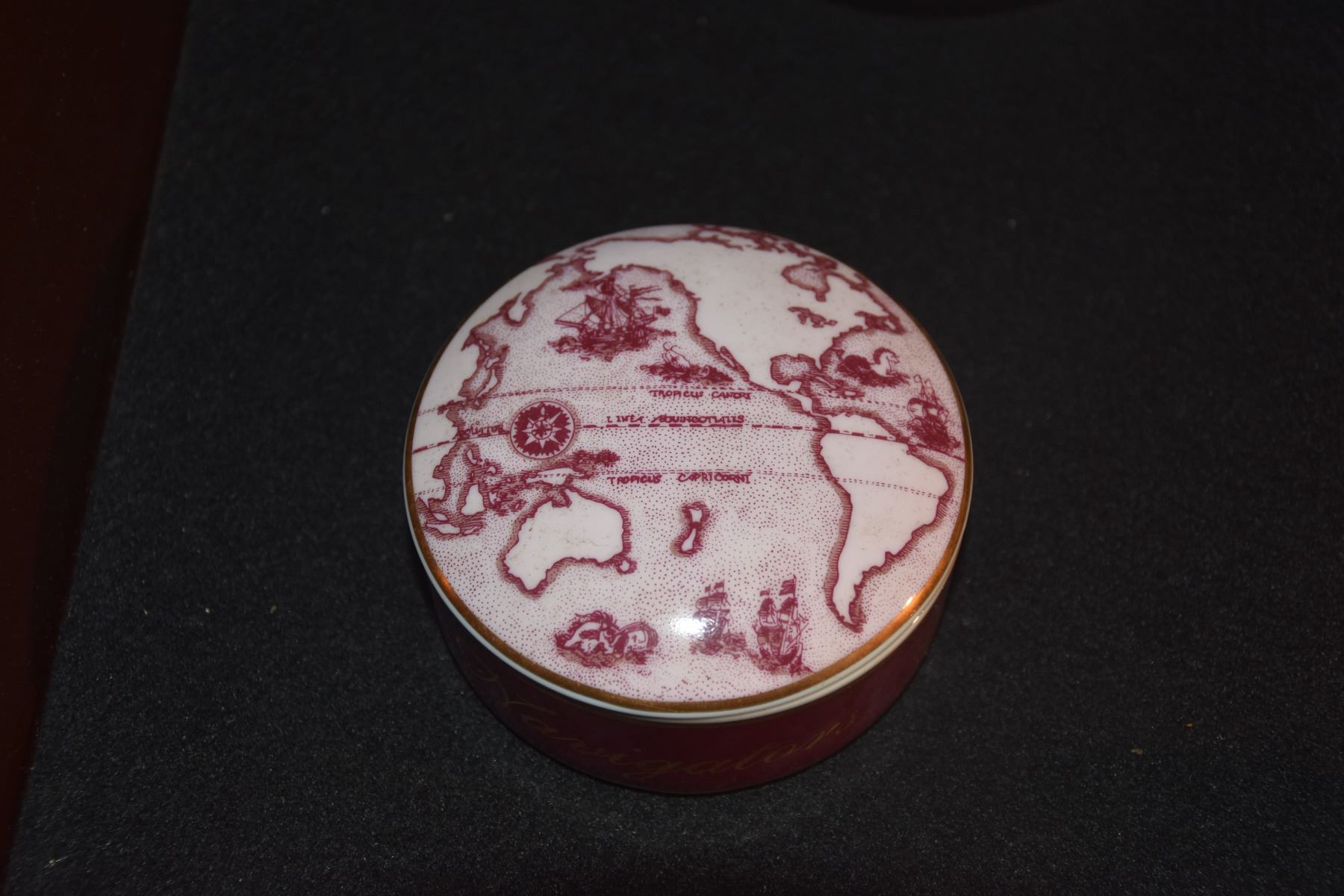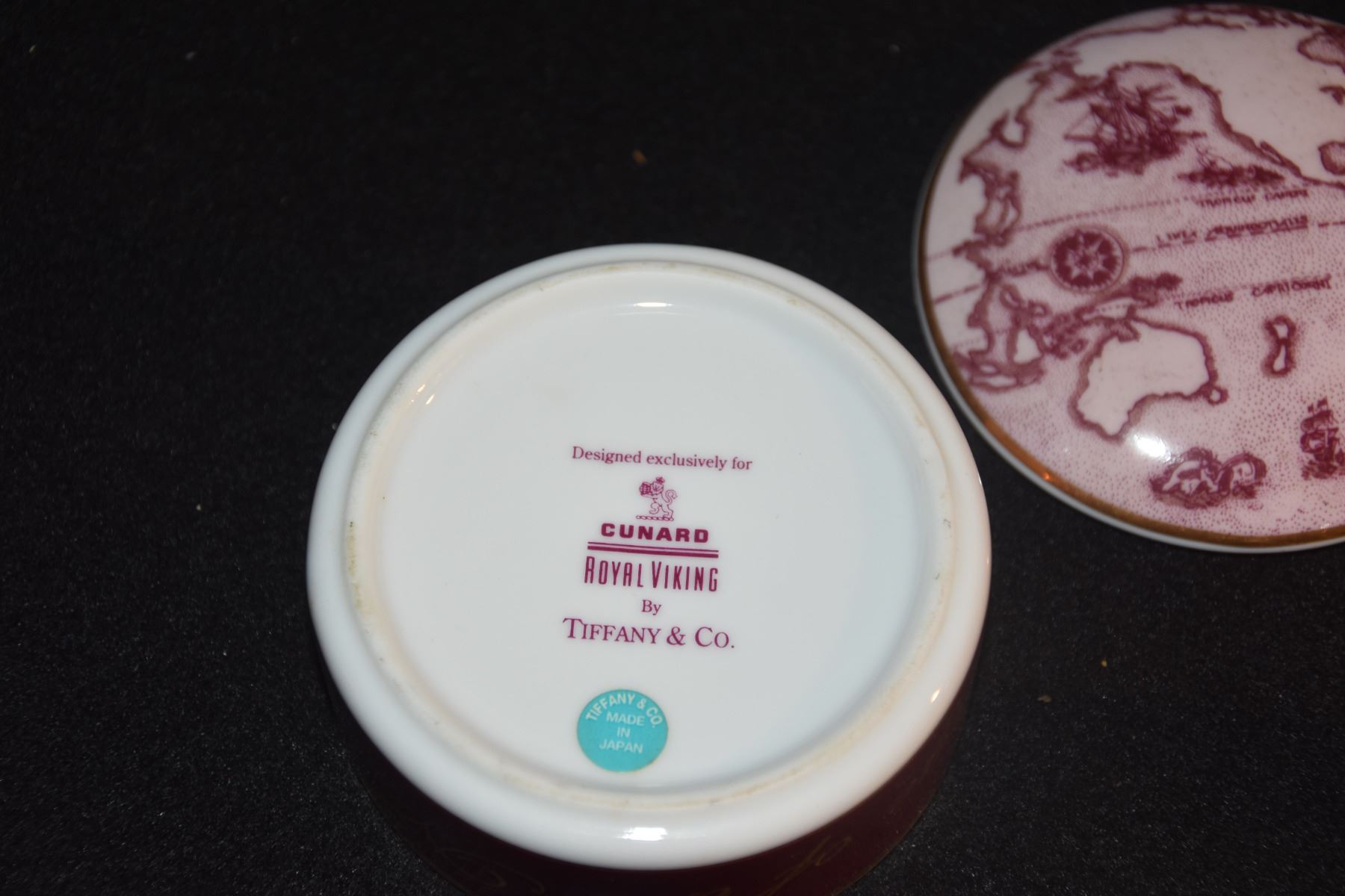 1995 CUNARD ROYAL VIKING TIFFANY & CO. WORLD MAP TRINKET BOX & VILLEROY & BOCH COVERED CANDY DISH (3 PCS)