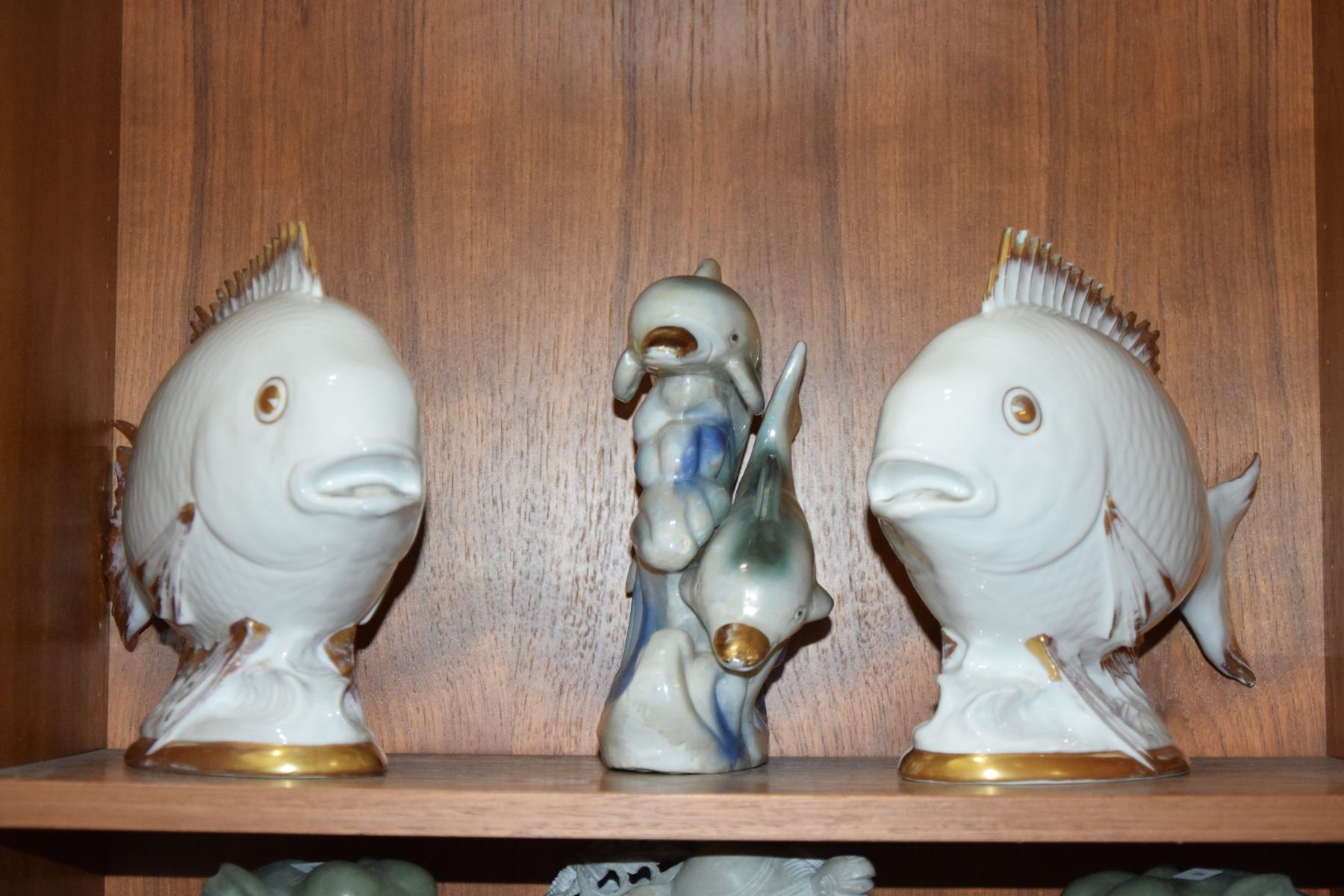 2 CERAMIC FISH & CERAMIC DOLPHIN (3 PCS) (FROM THE COLLECTION OF REV. CLARENCE GUERREIRO)
