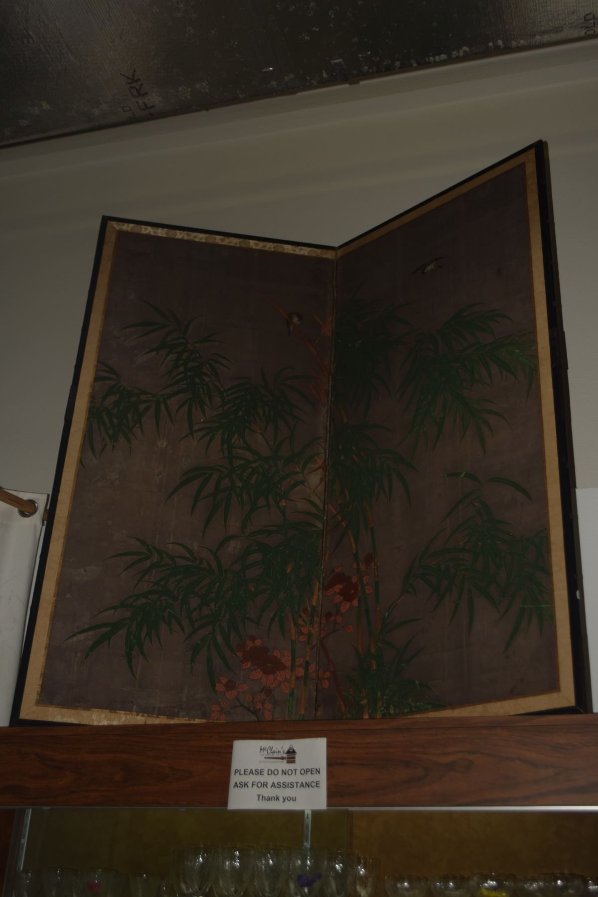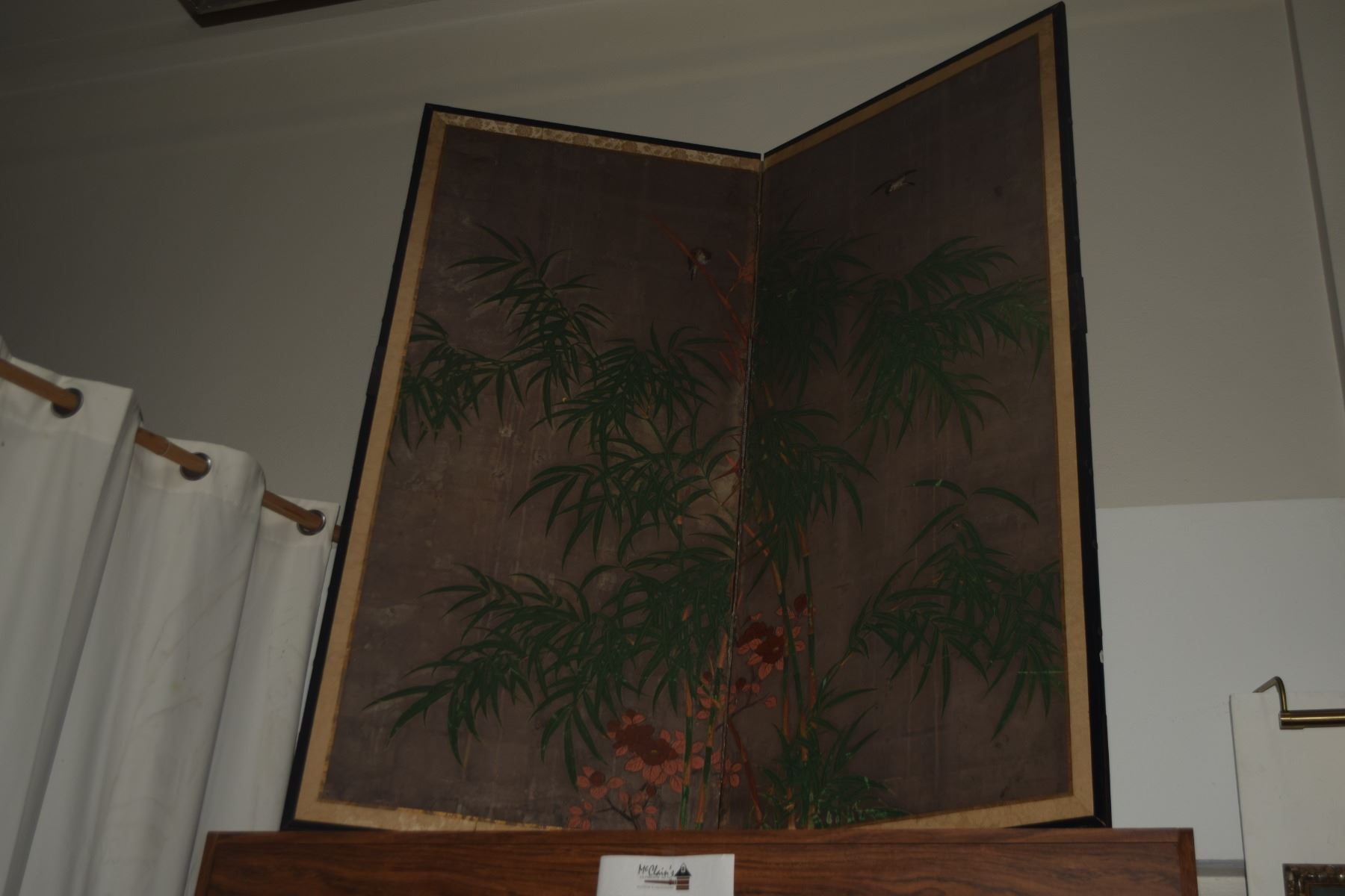 2 PANEL JAPANESE SCREEN W/BAMBOO & BIRD MOTIF (28" X 60" EACH PANEL)