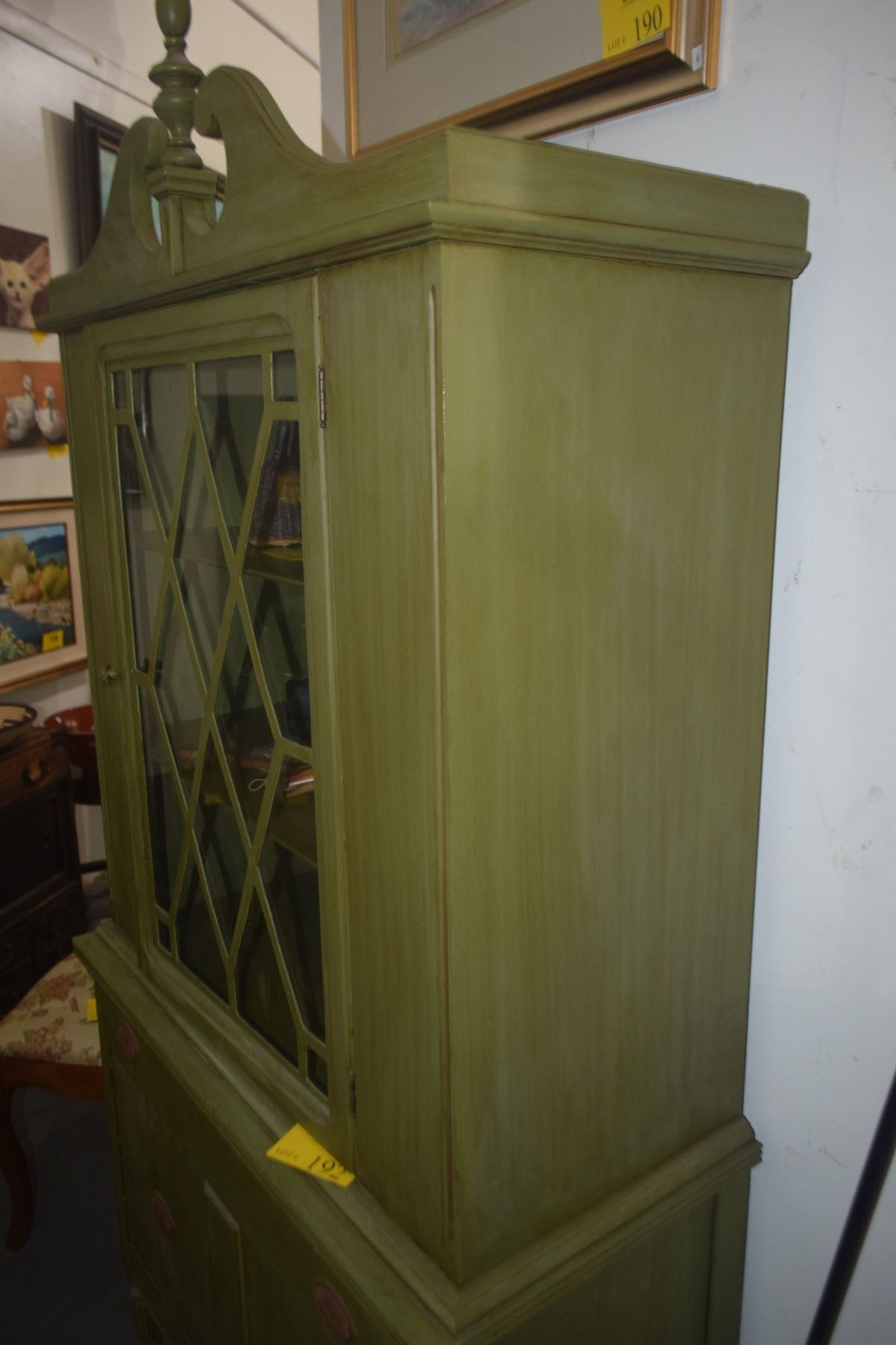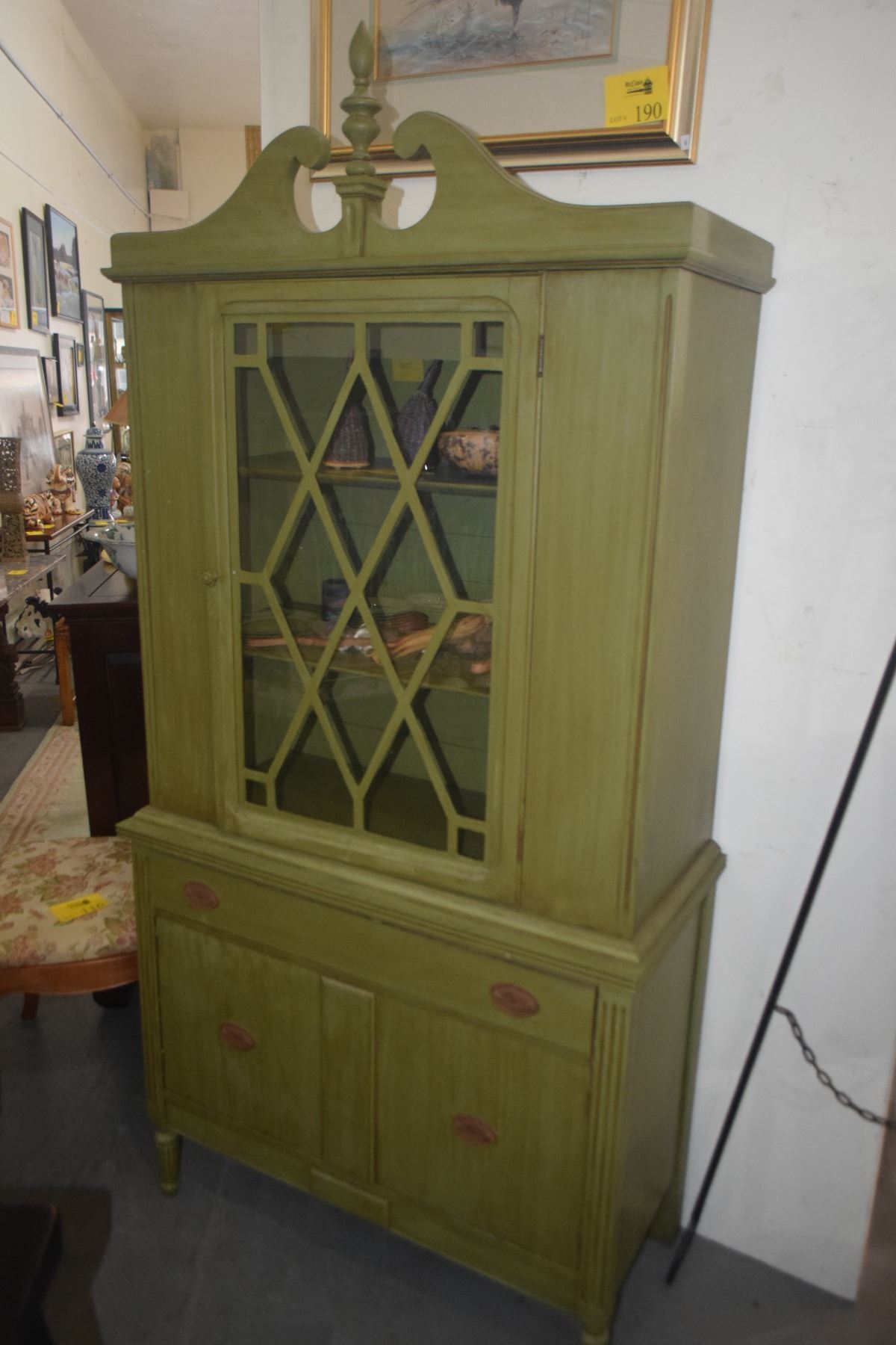 3 DRAWER CHINA HUTCH (PAINTED GREEN) (36" X 75" X 16 3/4")