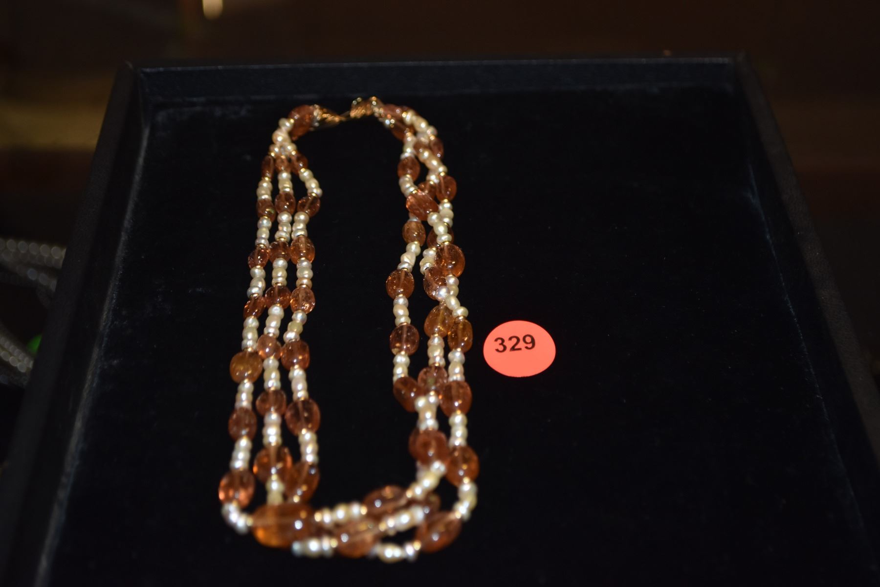3 STRAND 14K IMPERIAL TOPAZ & BIWA PEARL NECKLACE (17")