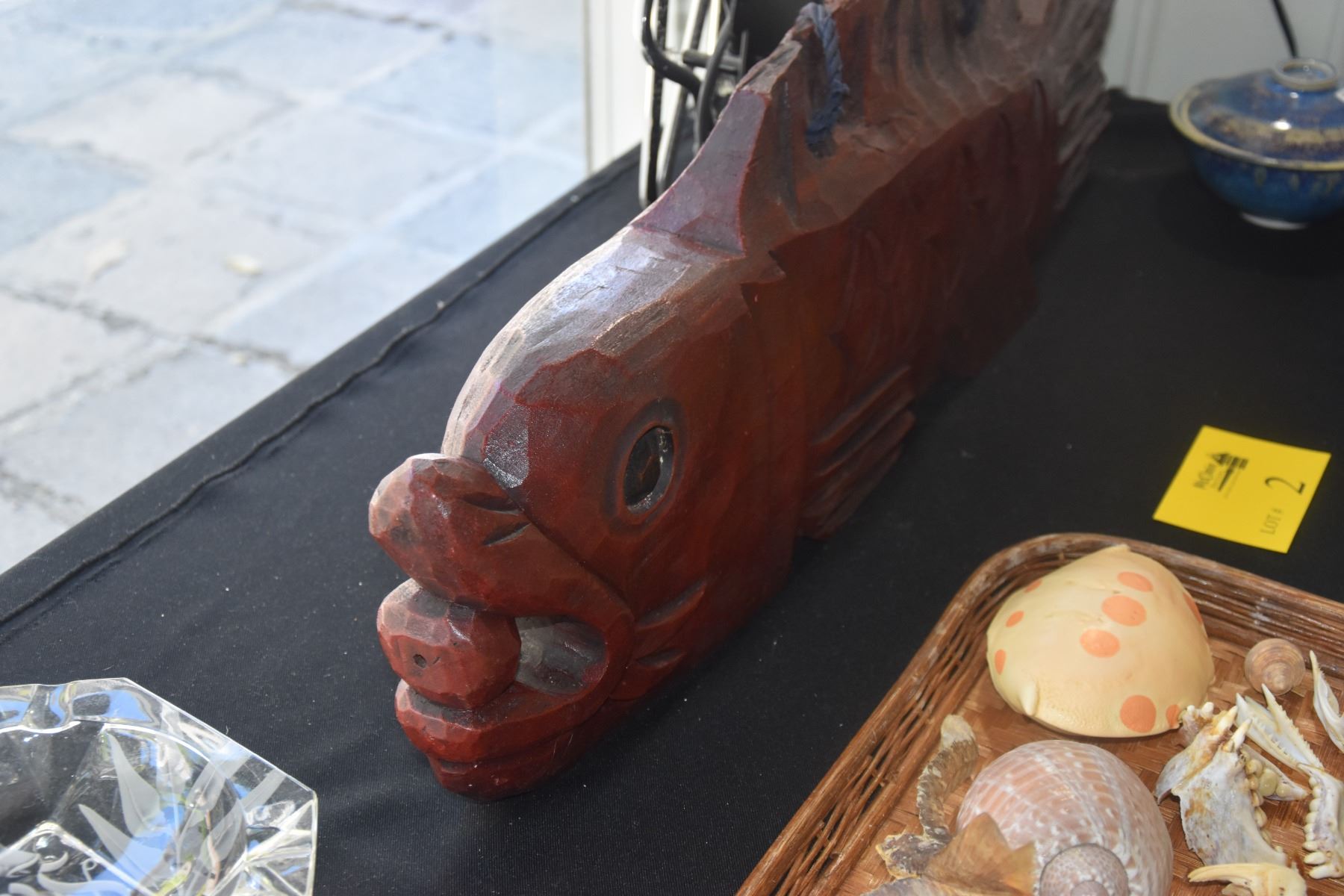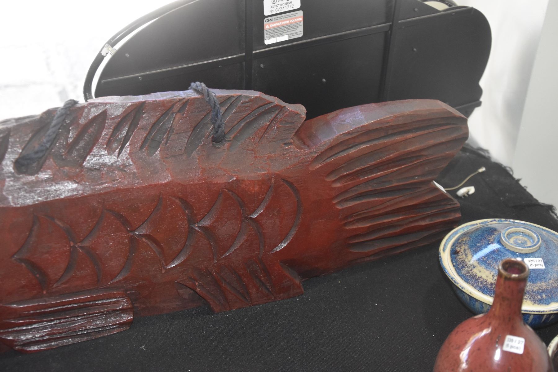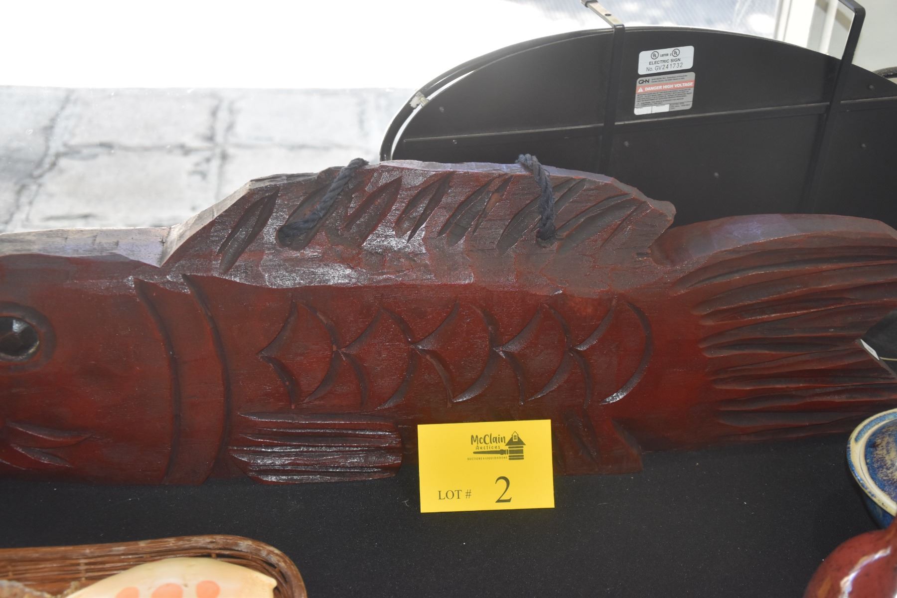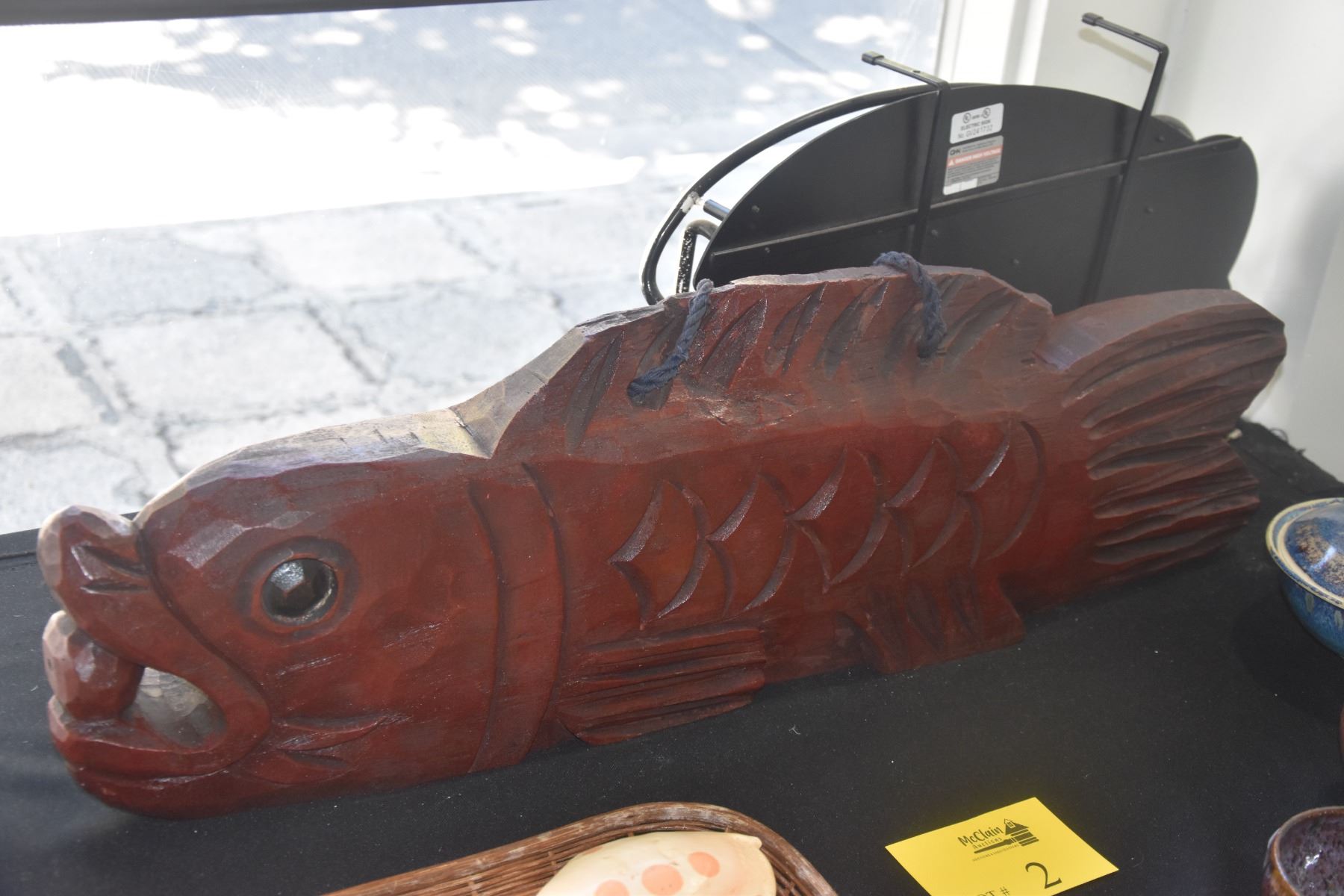 32" HAND CARVED HANGING FISH, "KAN BAN"