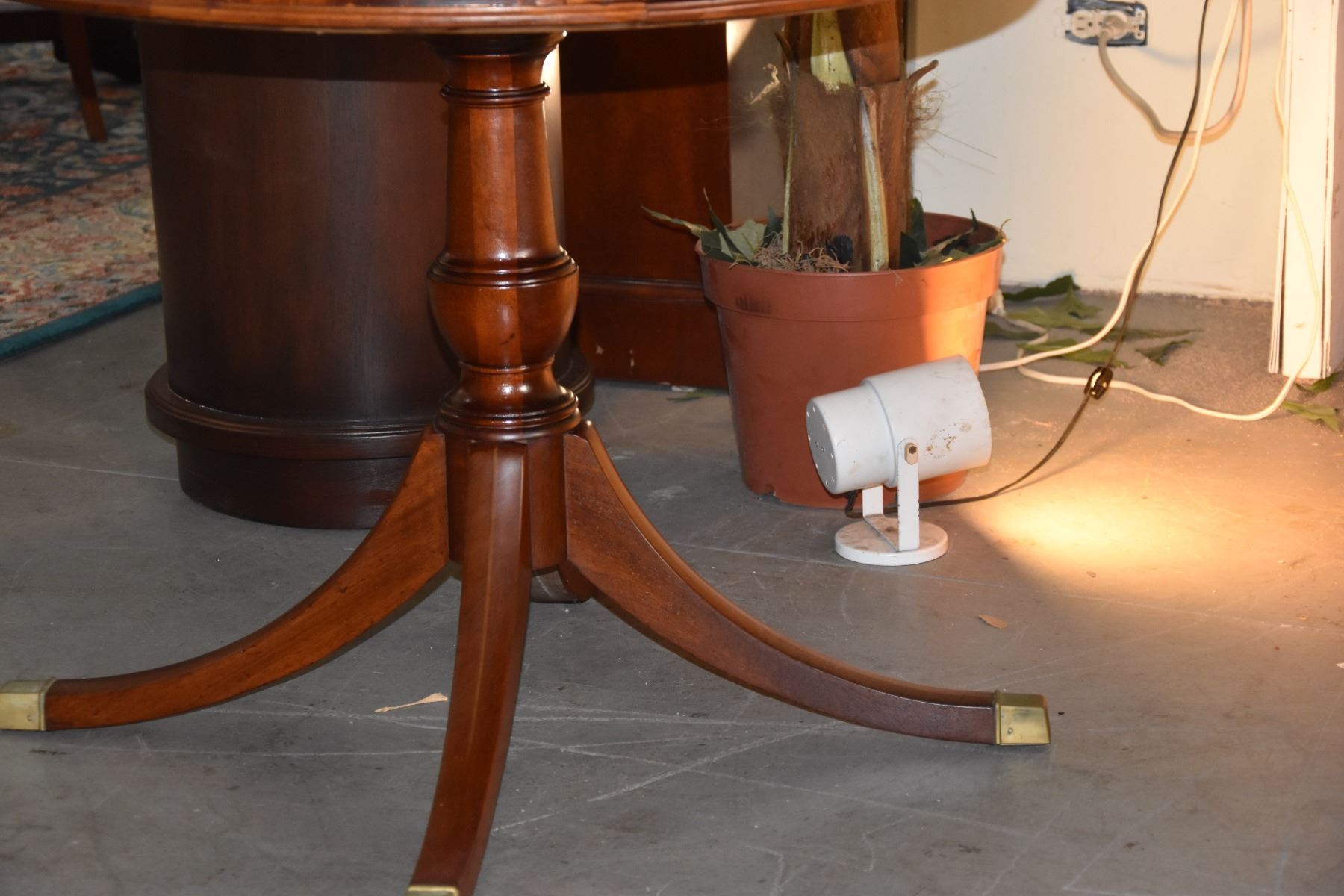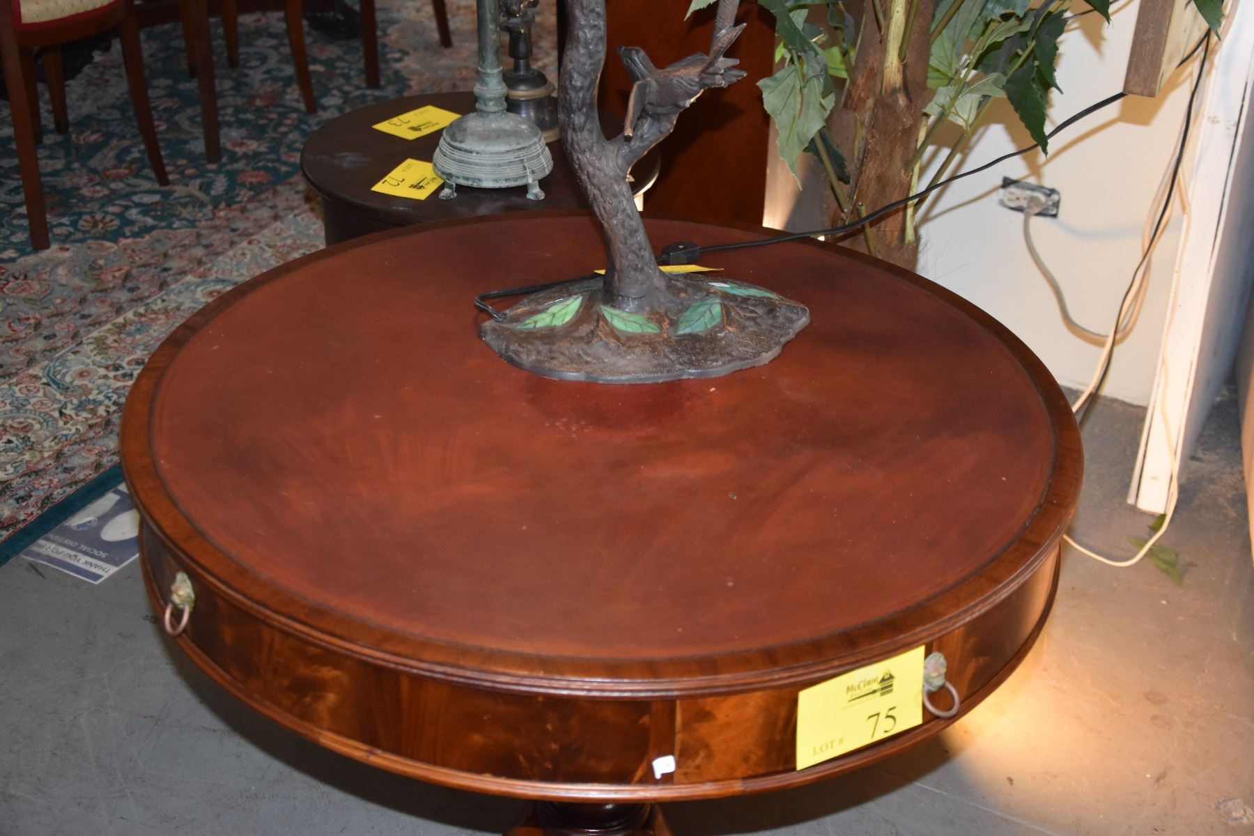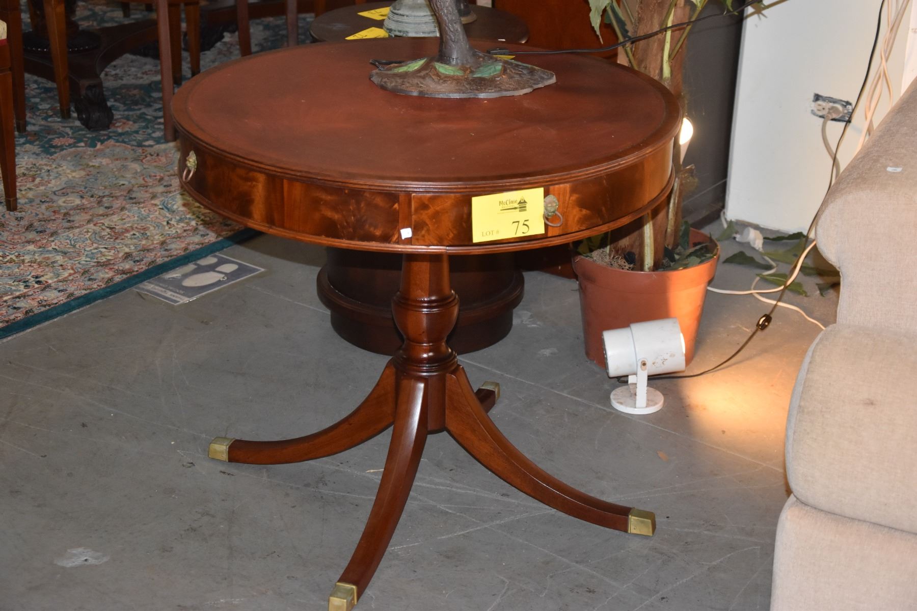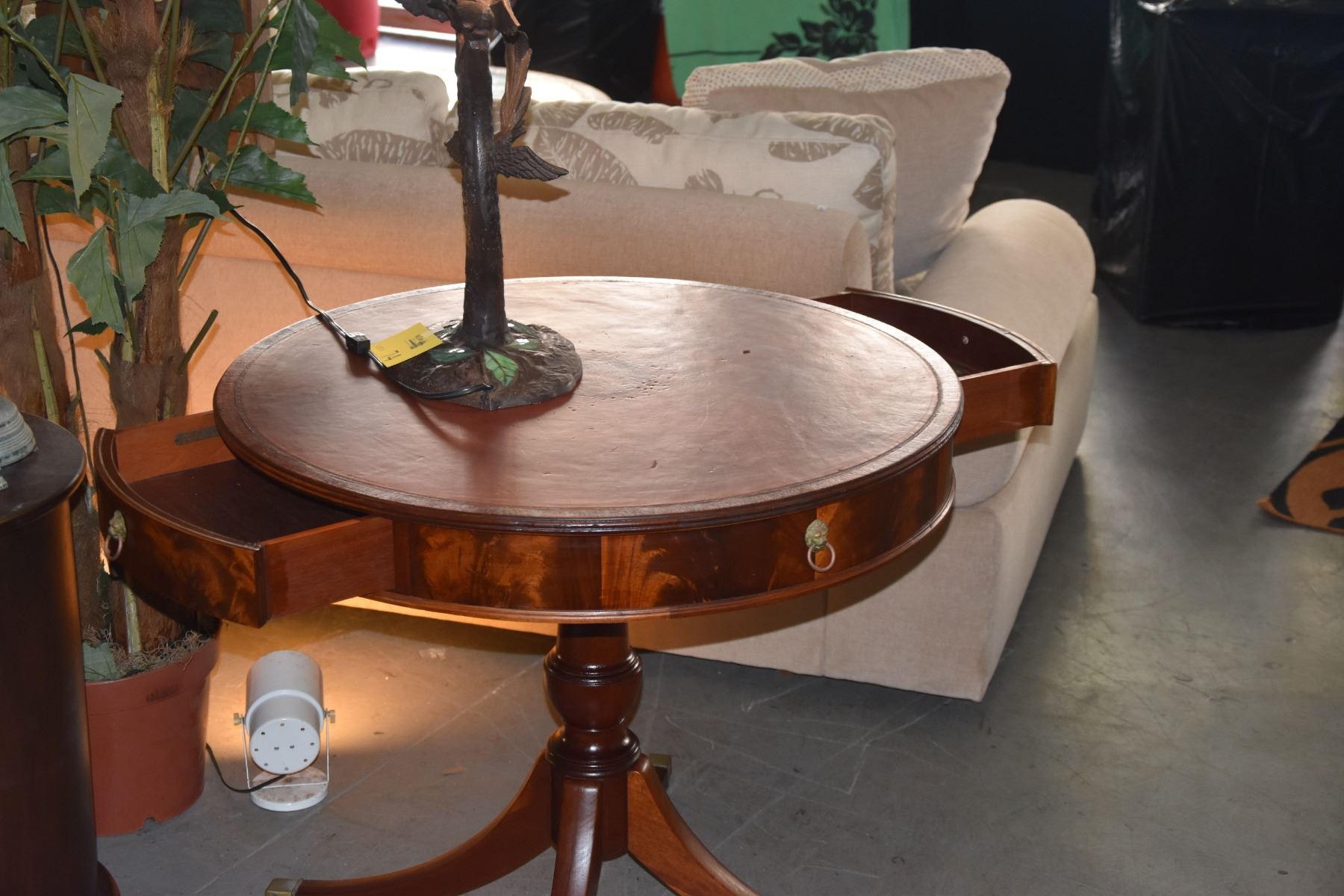 32" MAHOGANY & LEATHER DRUM TABLE W/2 DRAWERS