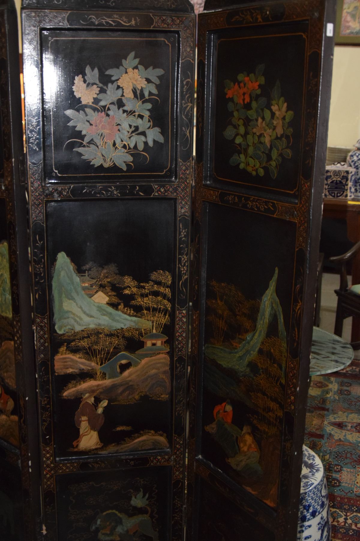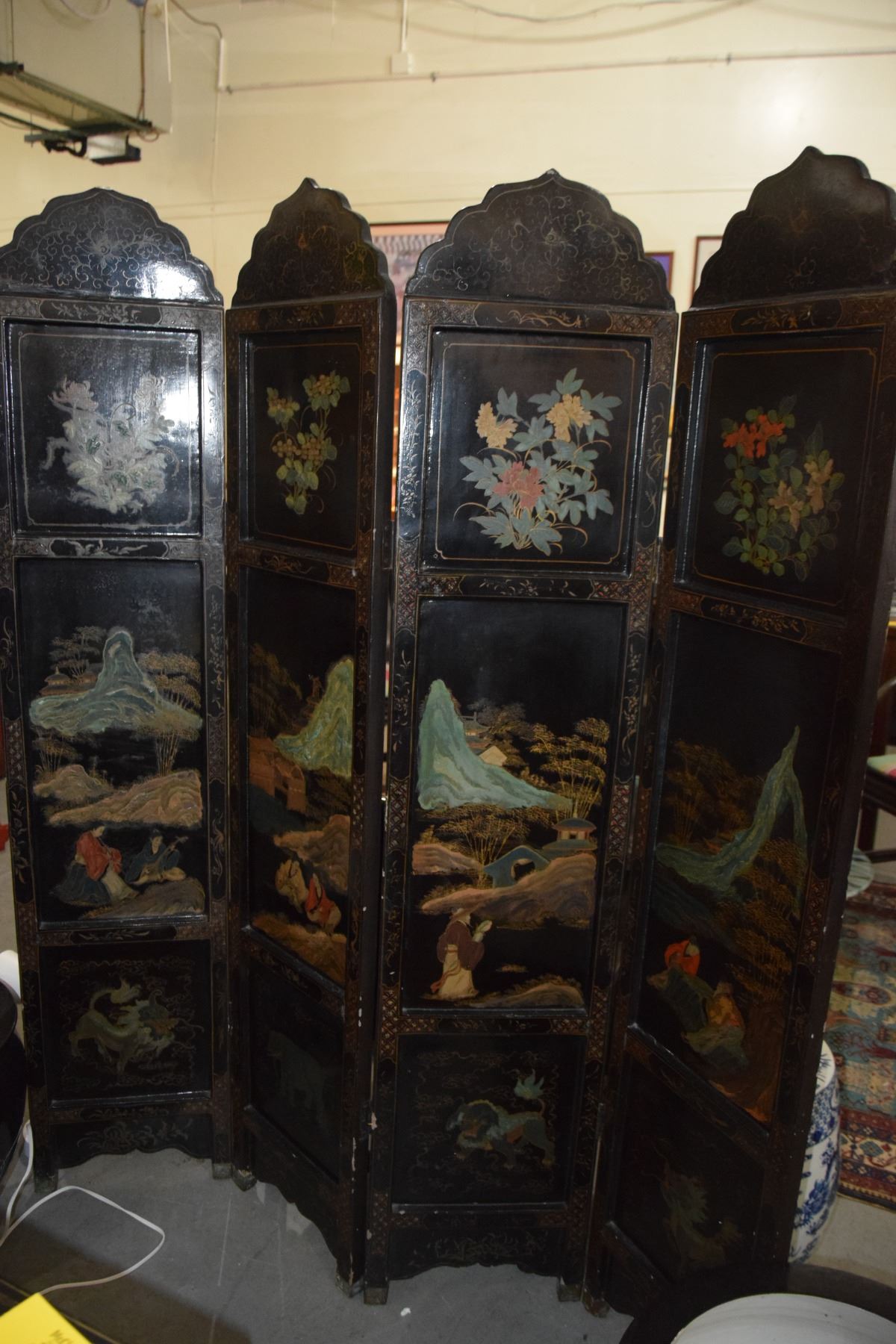 4 PANEL BLACK LACQUER PAINTED SCREEN (68" H, 14" PANELS)