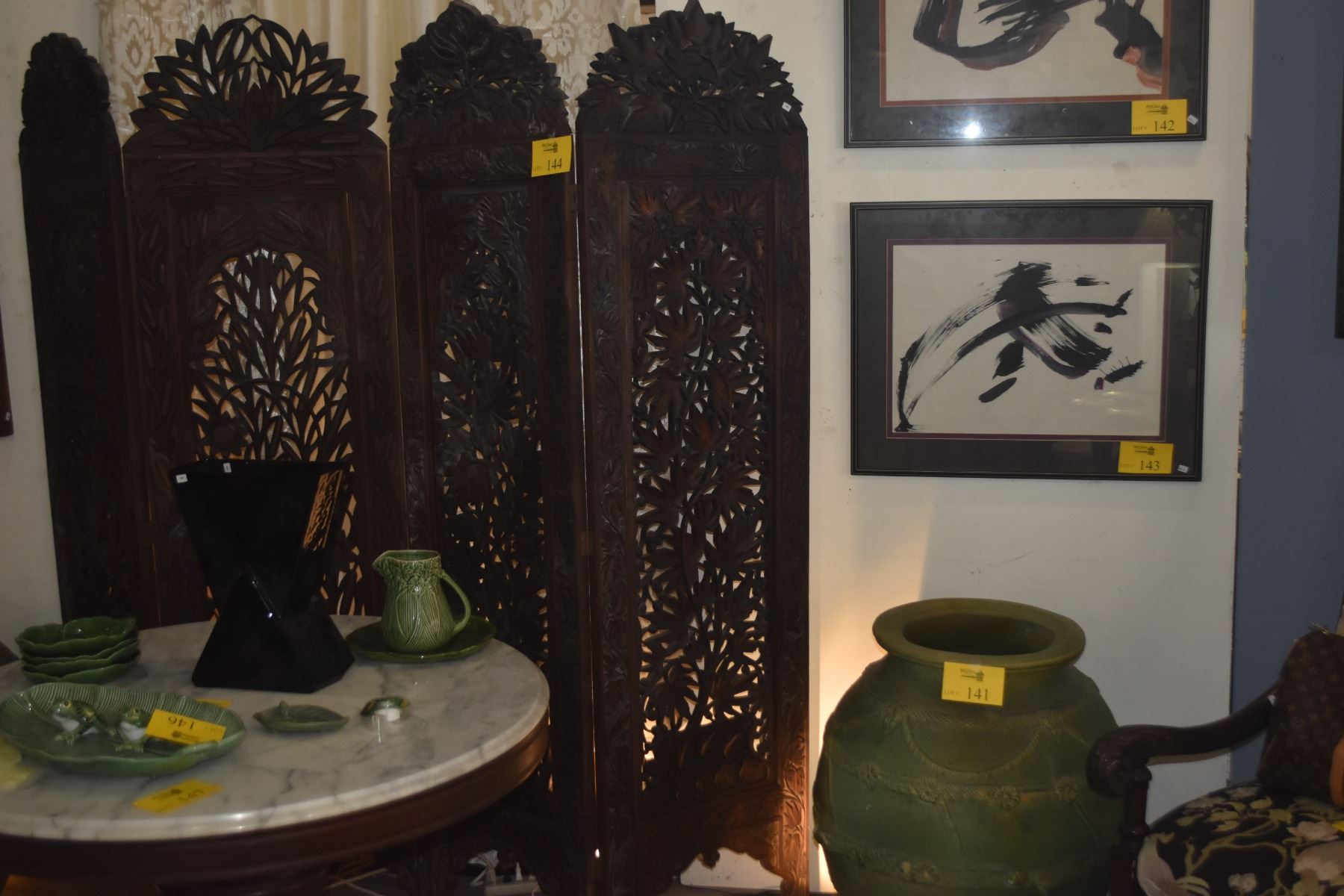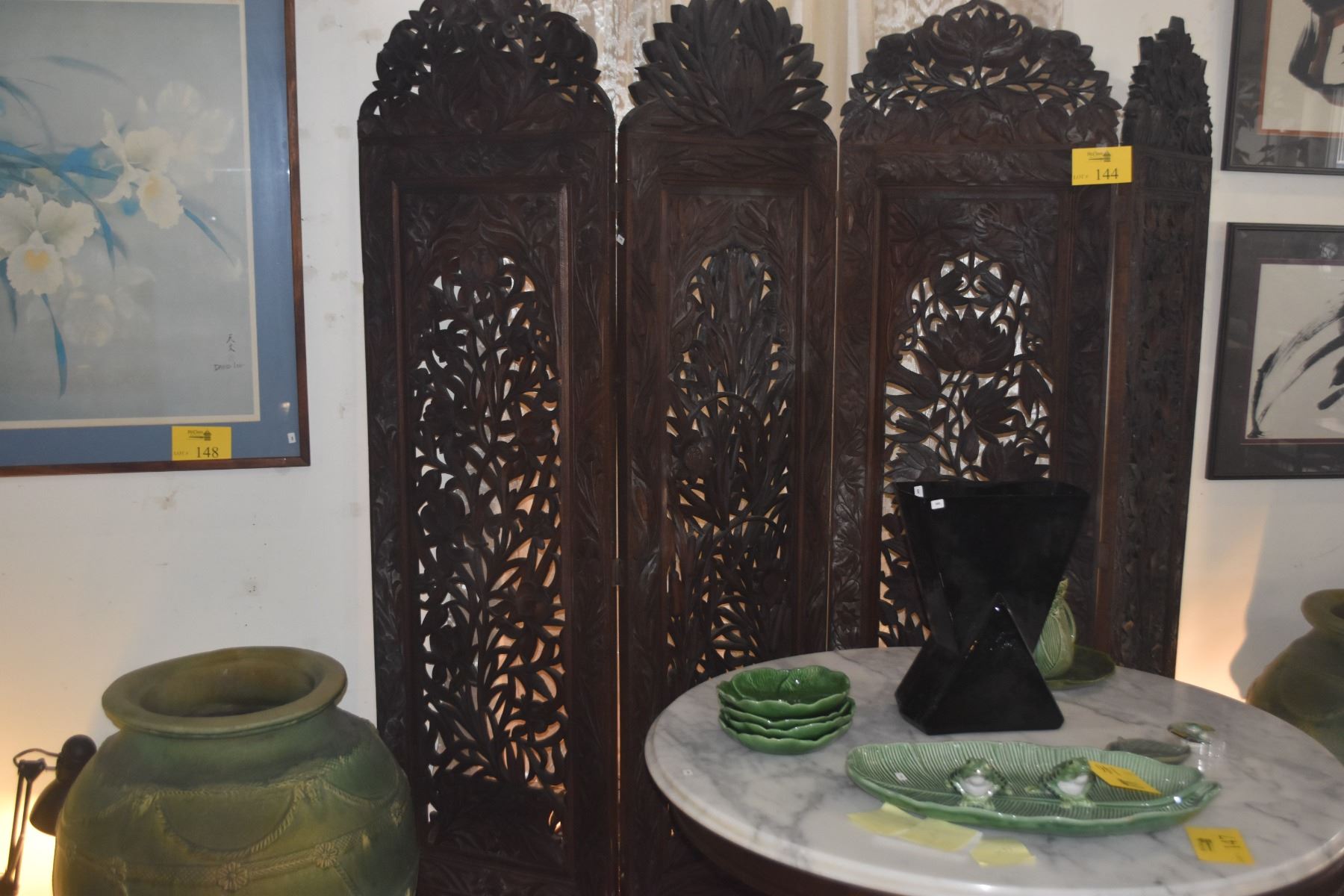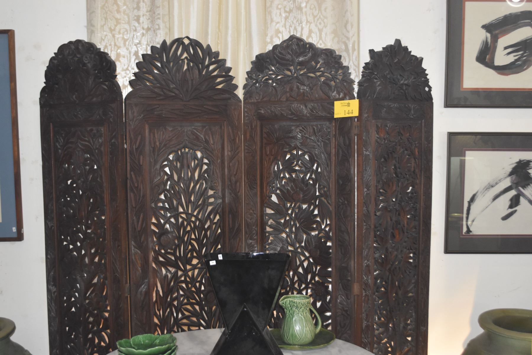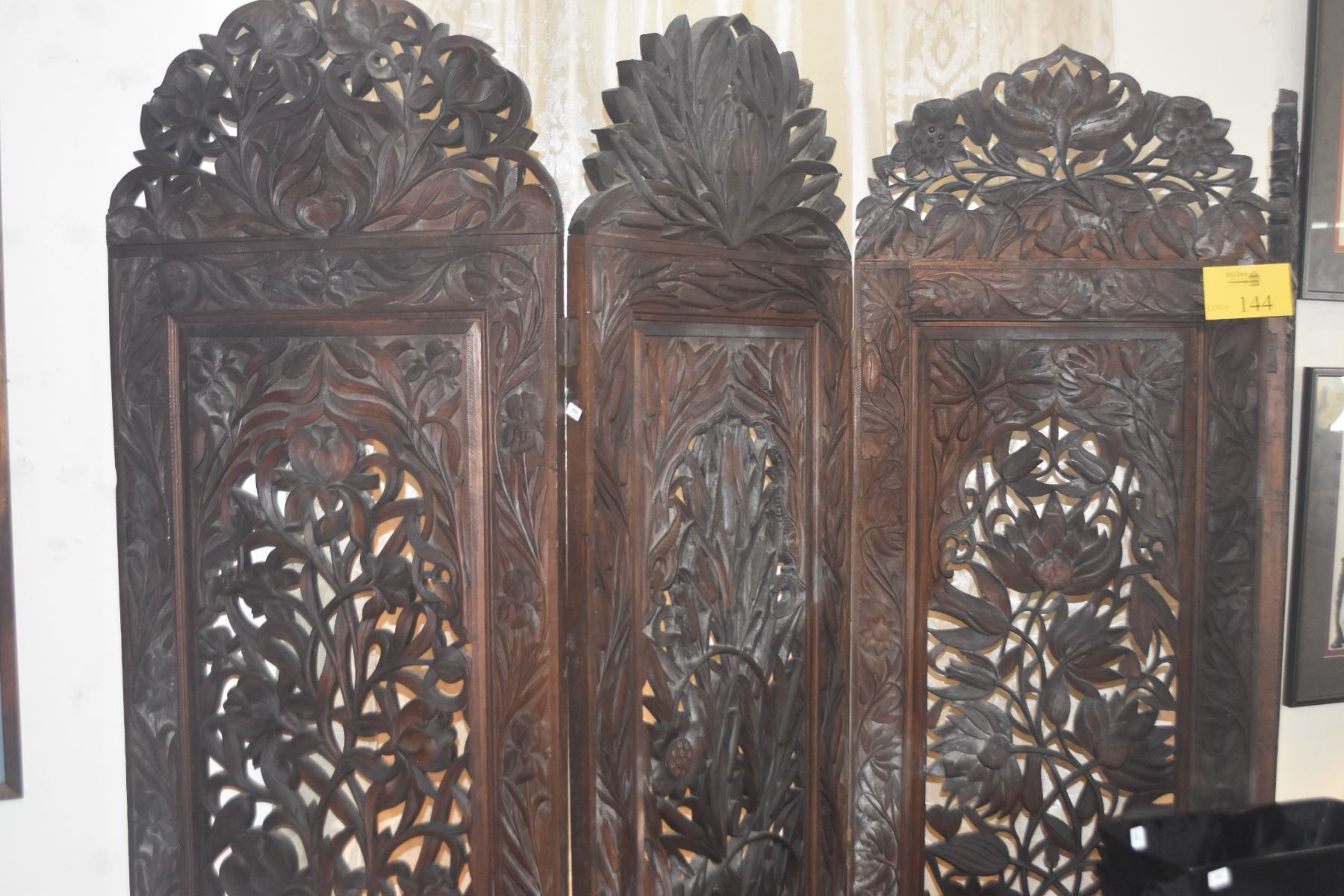 4 PANEL CARVED OPENWORK WOODEN SCREEN