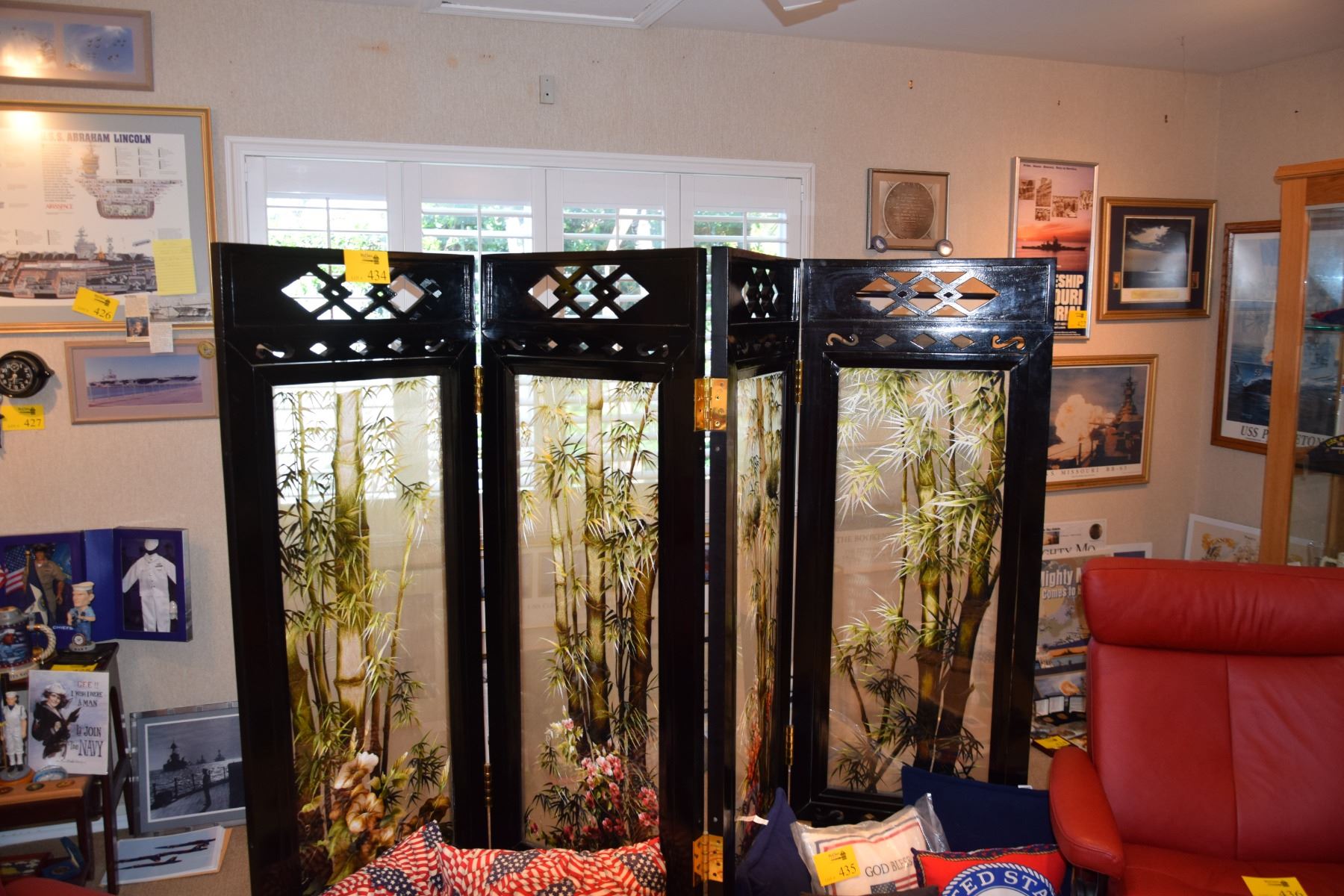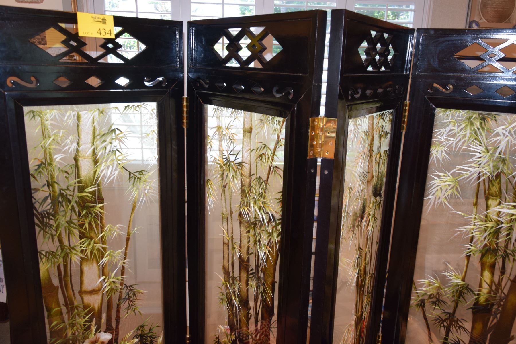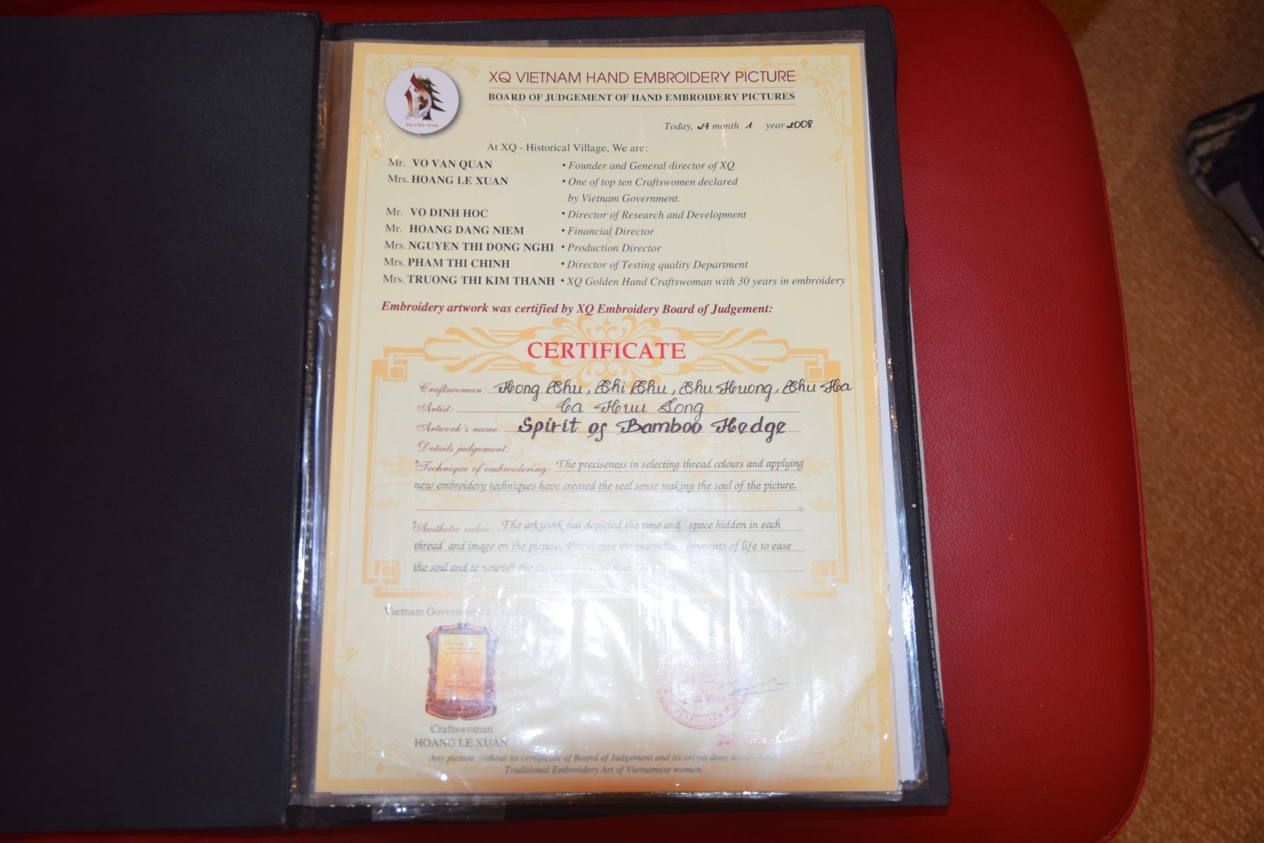 4 PANEL HAND EMBROIDERY ON SILK SCREEN, TITLED "SPIRIT OF BAMBOO HEDGE", W/BLACK LACQUER FRAME, EACH EMBROIDERY PANEL IS ENCLOSED IN GLASS & INDIVIDULLY SIGNED XO VIETNAM, PURCHASED FROM HALEIWA ART GALLERY