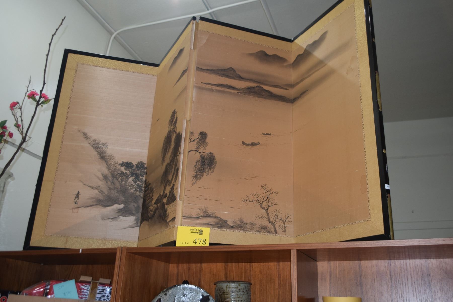 4 PANEL JAPANESE SCREEN, SUMI-E PAINTING ON SILK (SOME DAMAGE) (APPROX 66" X 36")