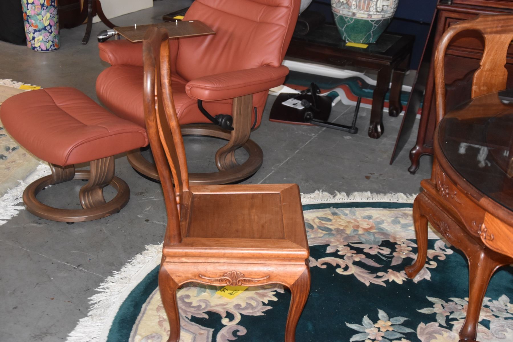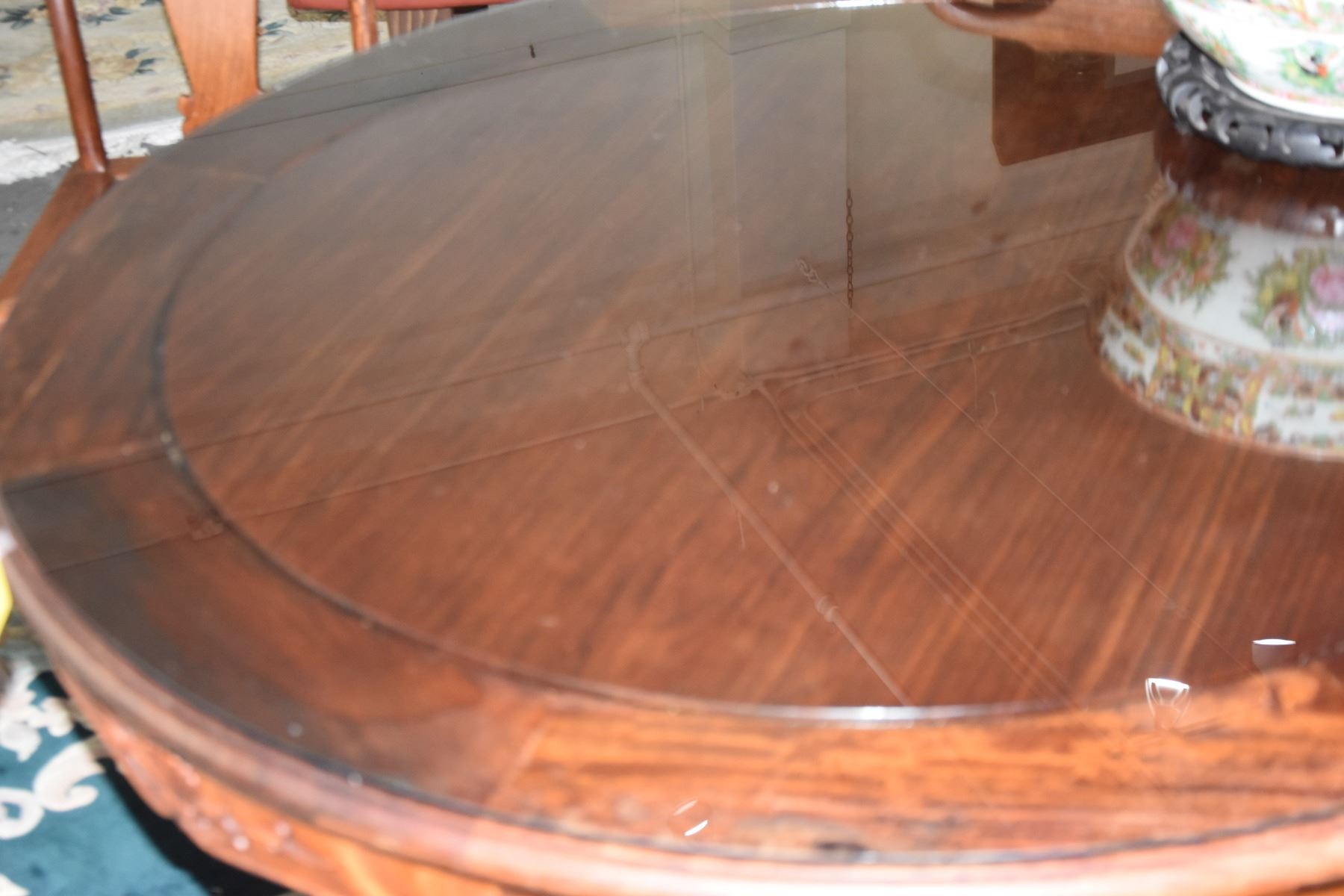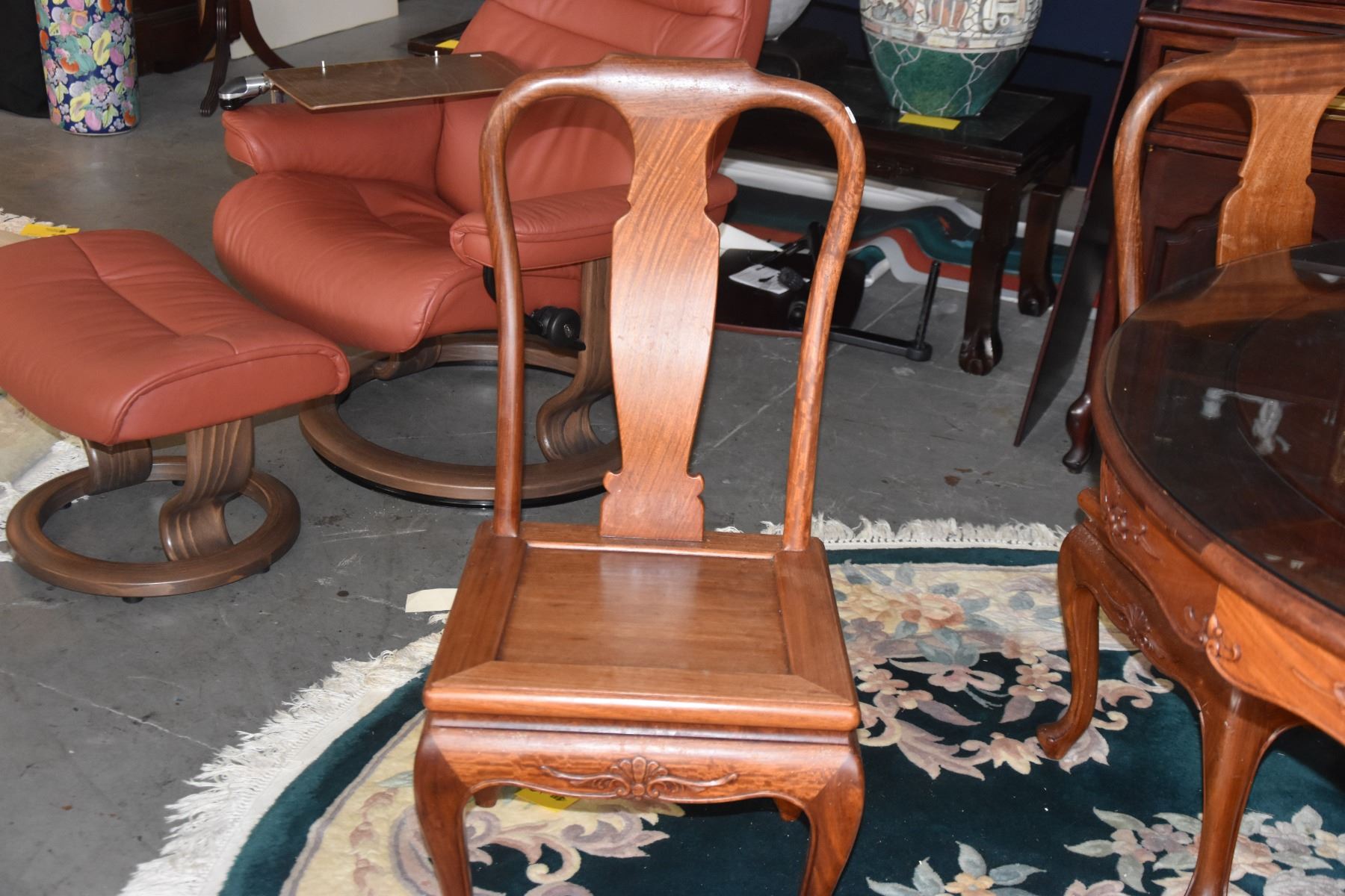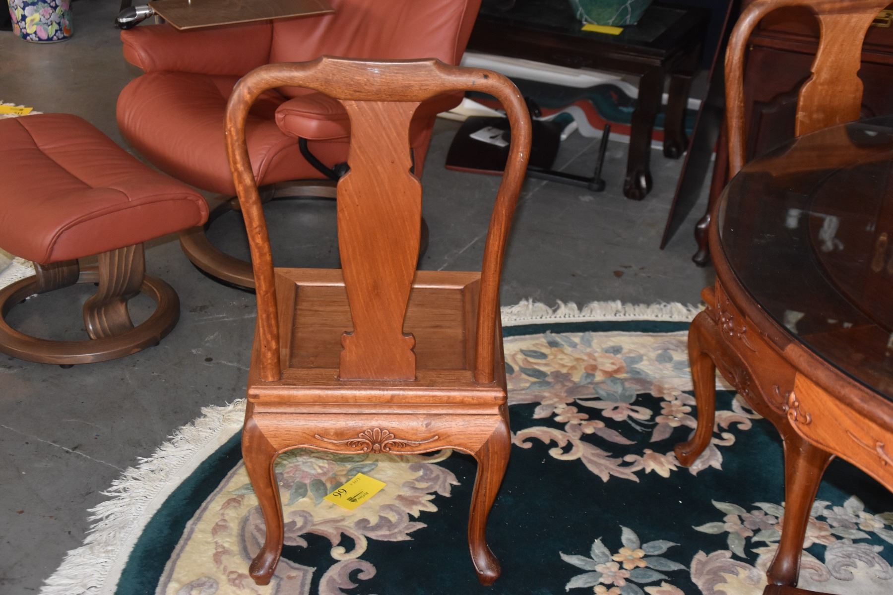 47" CHINESE CARVED ROSEWOOD TABLE W/SHALLOW RELIEF APRON, GLASS TOP & 4 ROSEWOOD CHAIRS (5 PCS)