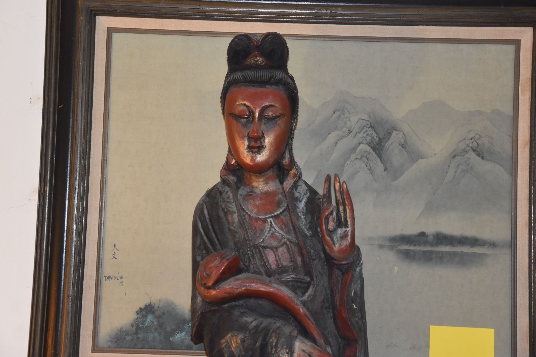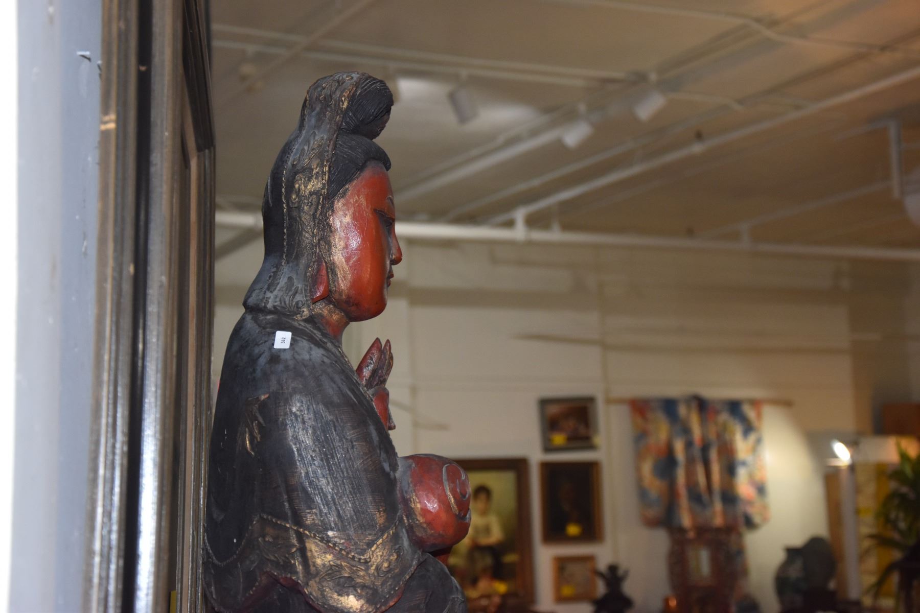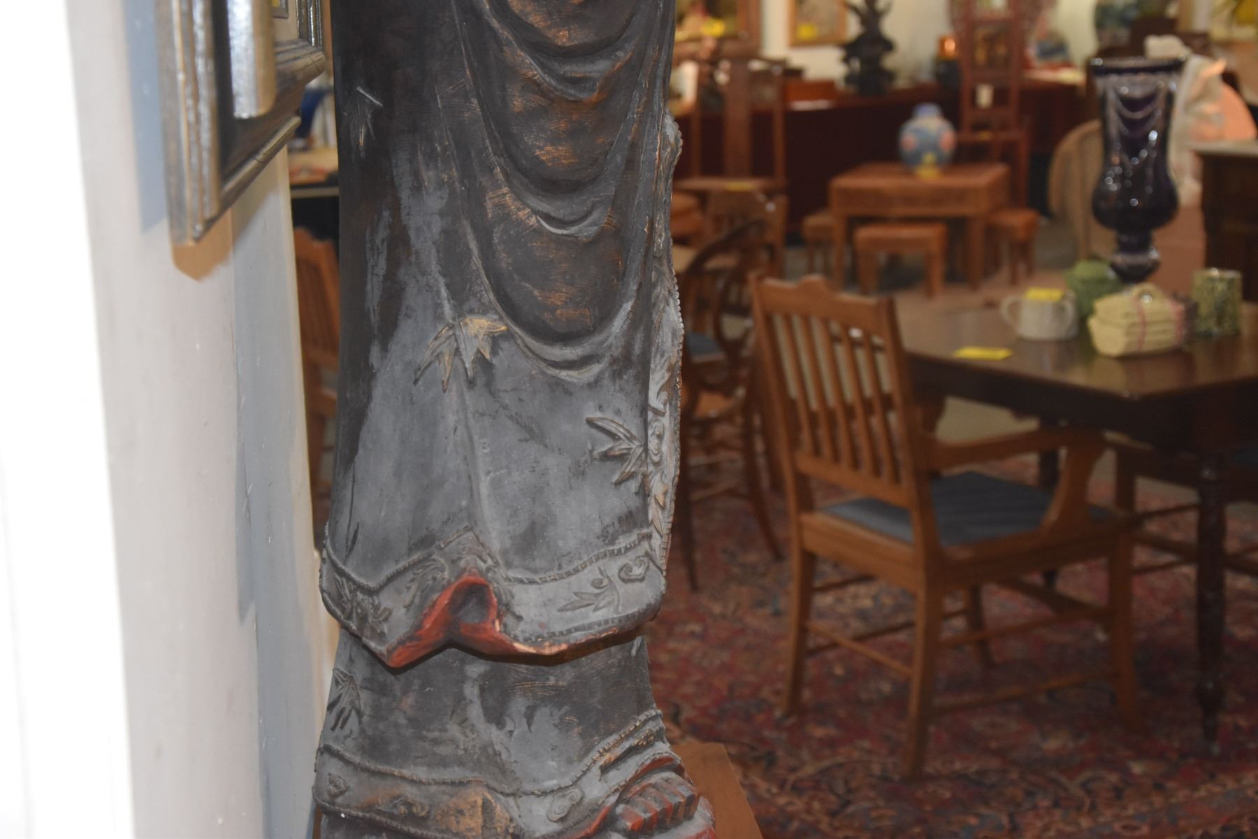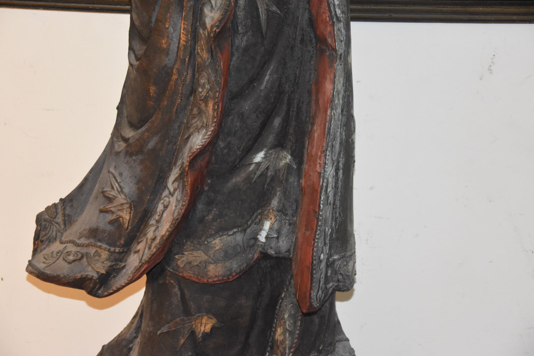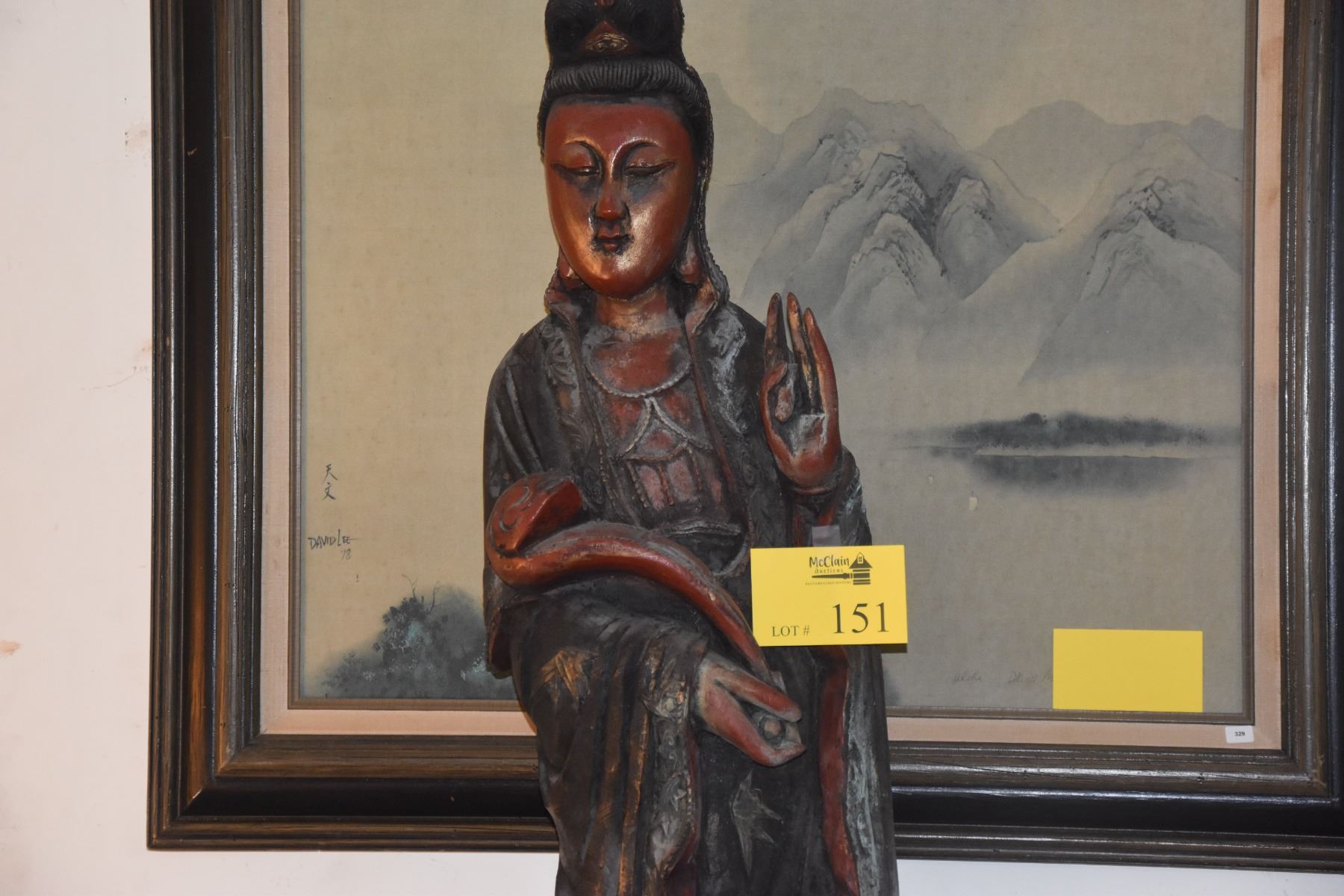 48" CHINESE POLYCHROME CARVED WOOD GUANYIN