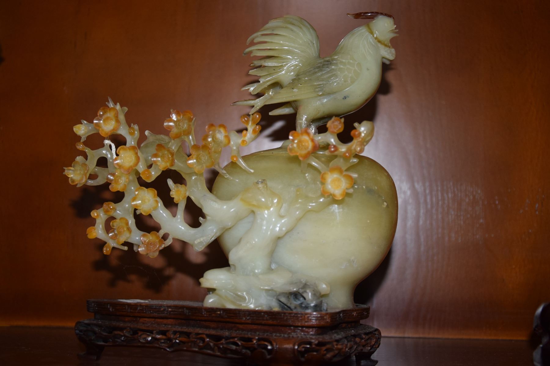 AGATE VASE W/JADE CHICKEN LID (8 1/2" H)