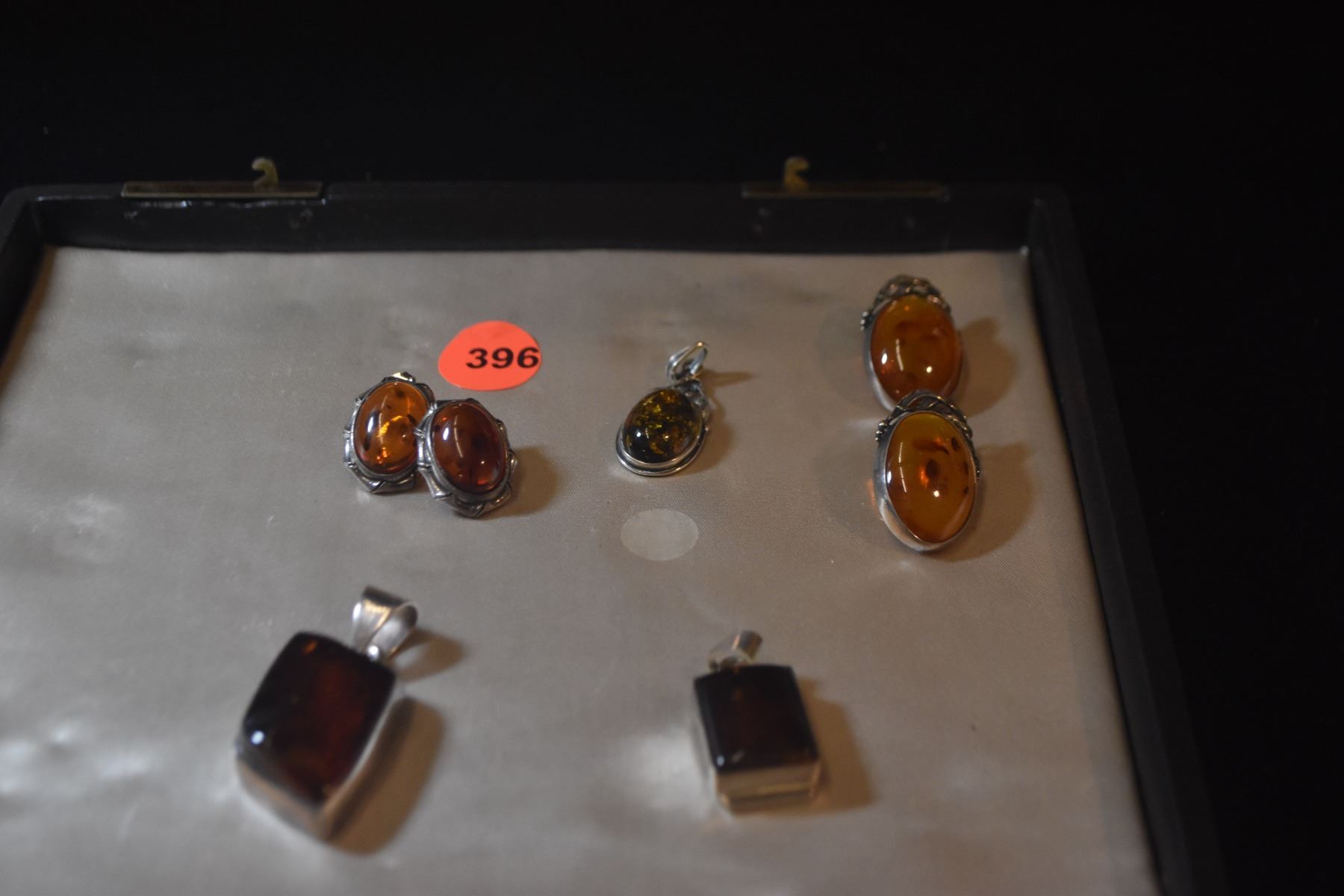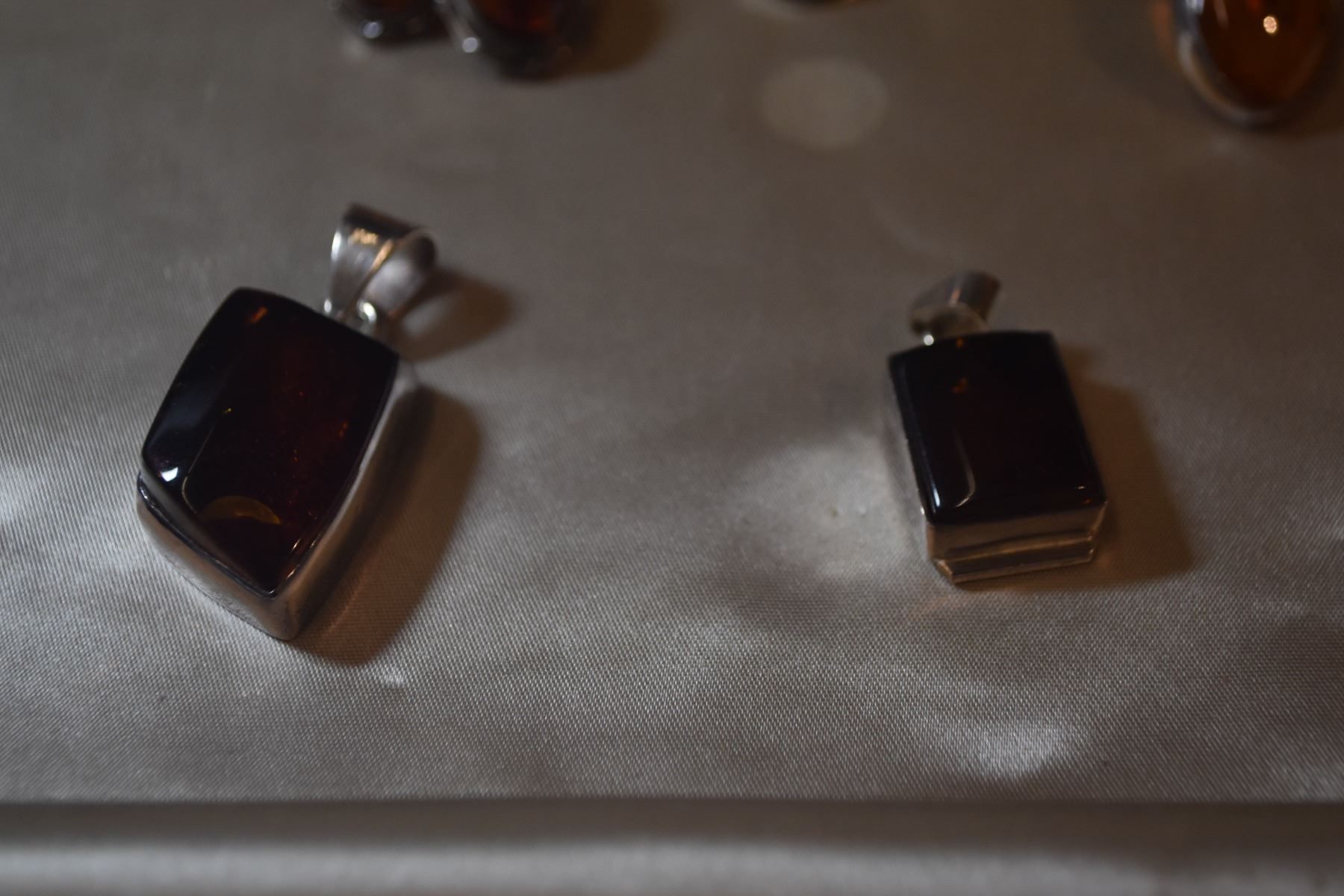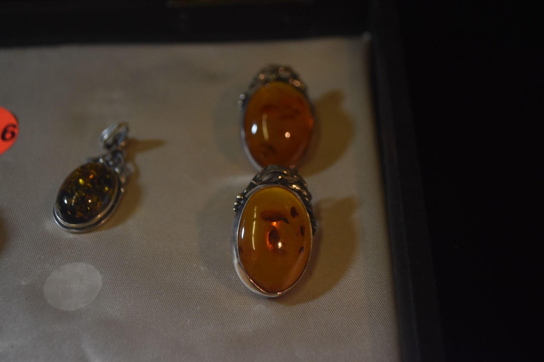 AMBER STERLING SILVER PENDANTS & EARRINGS (5 PCS)