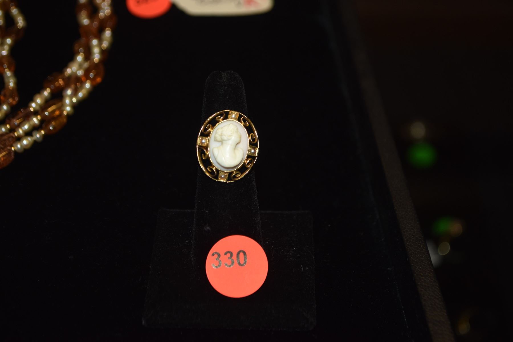 ANTIQUE 14K CAMEO SEED PEARL RING (5 GTW)