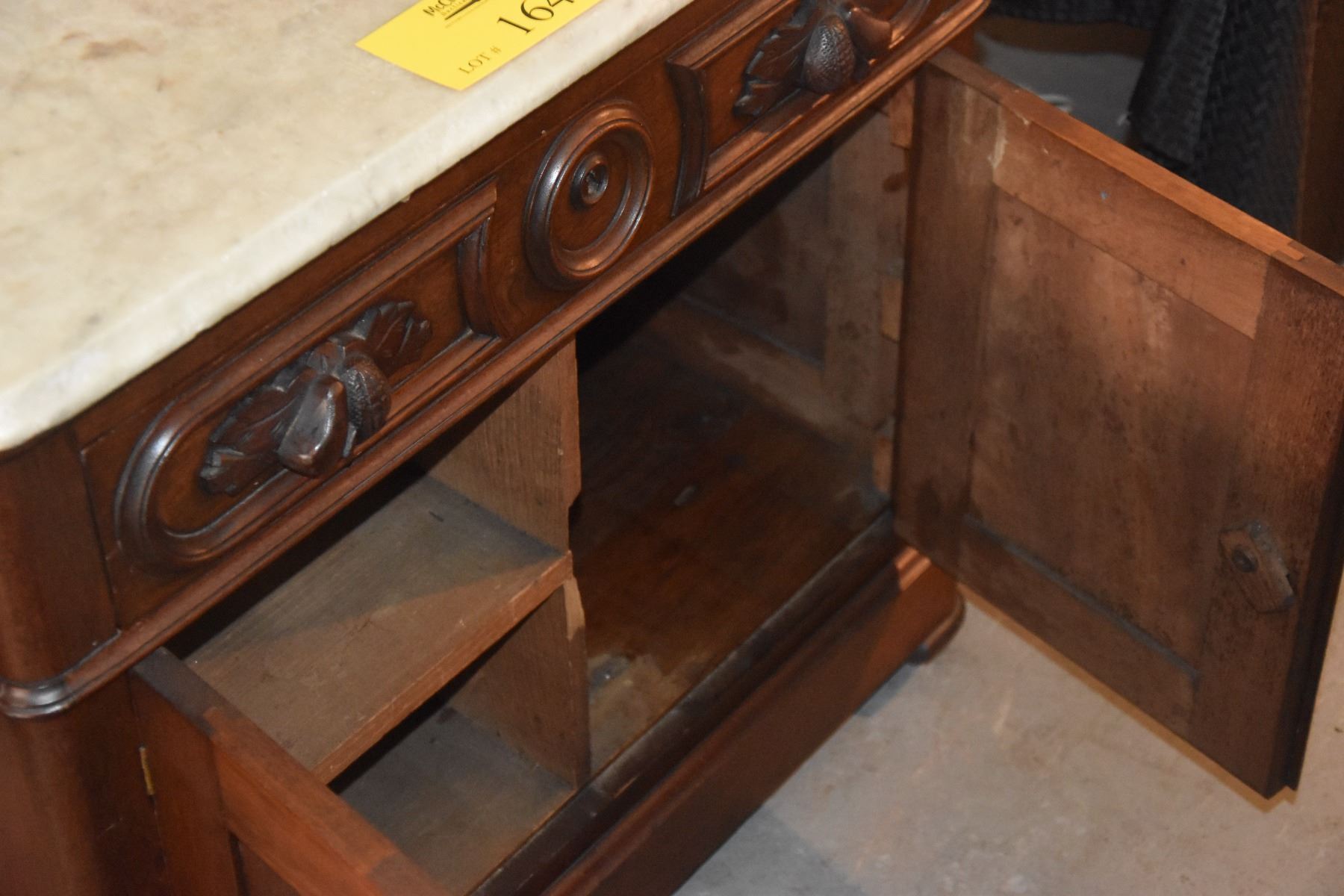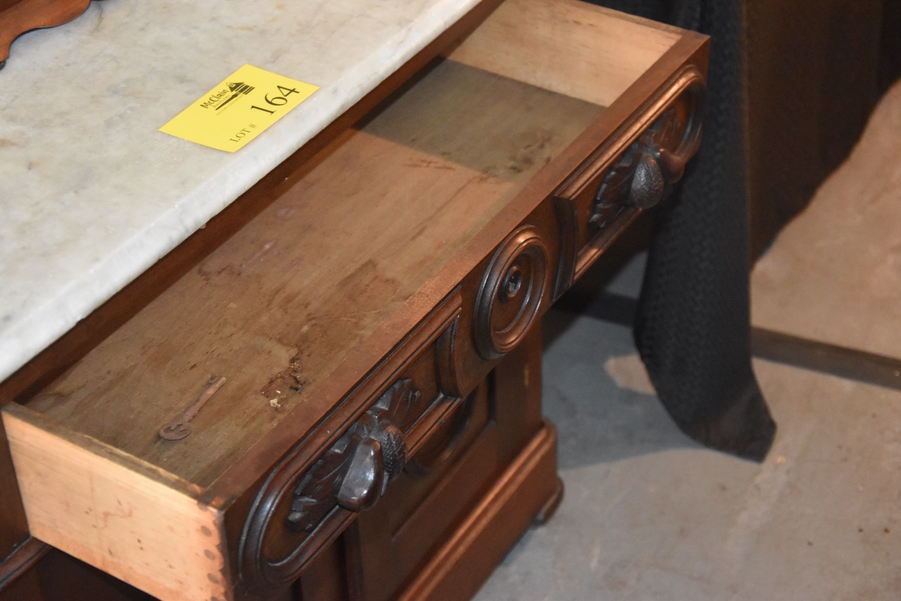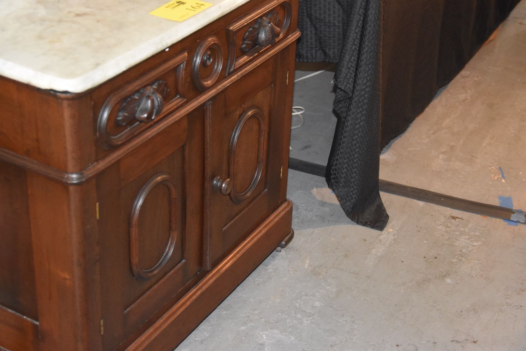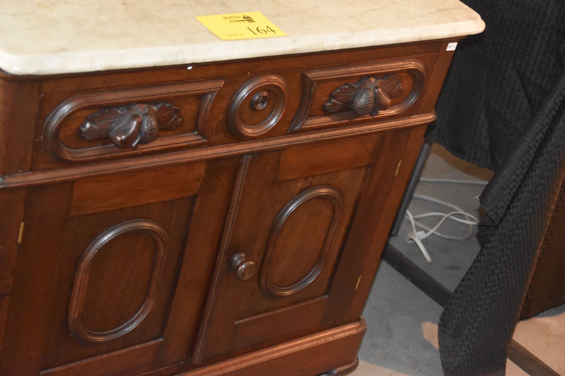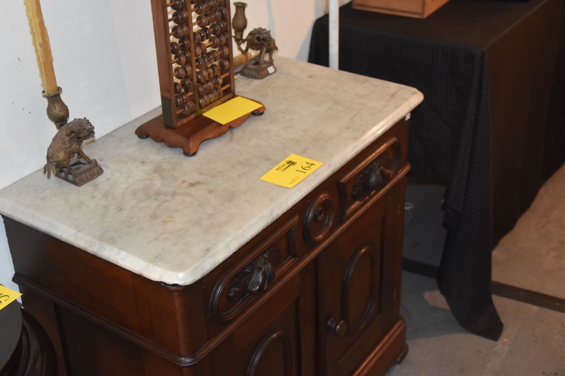 ANTIQUE AMERICAN 19TH CENTURY LOW CHEST W/WHITE MARBLE TOP, THE FRONT W/A PANELED DRAWER OVER A 2 DOOR CUPBOARD (31 1/2" X 29 1/2" X 17 1/2")