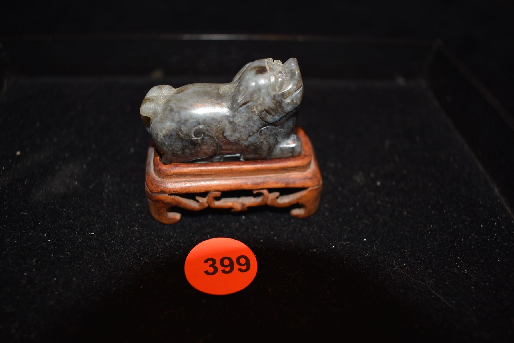 ANTIQUE CARVED NEPHRITE BEAD ON STAND
