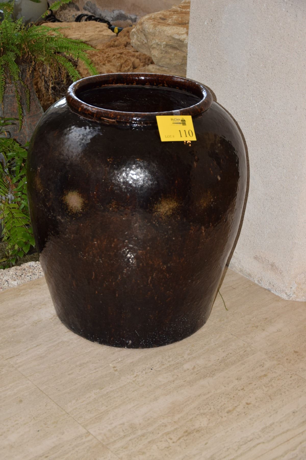 ANTIQUE CERAMIC STORAGE JAR (29 1/2" T X 15" D @ TOP)