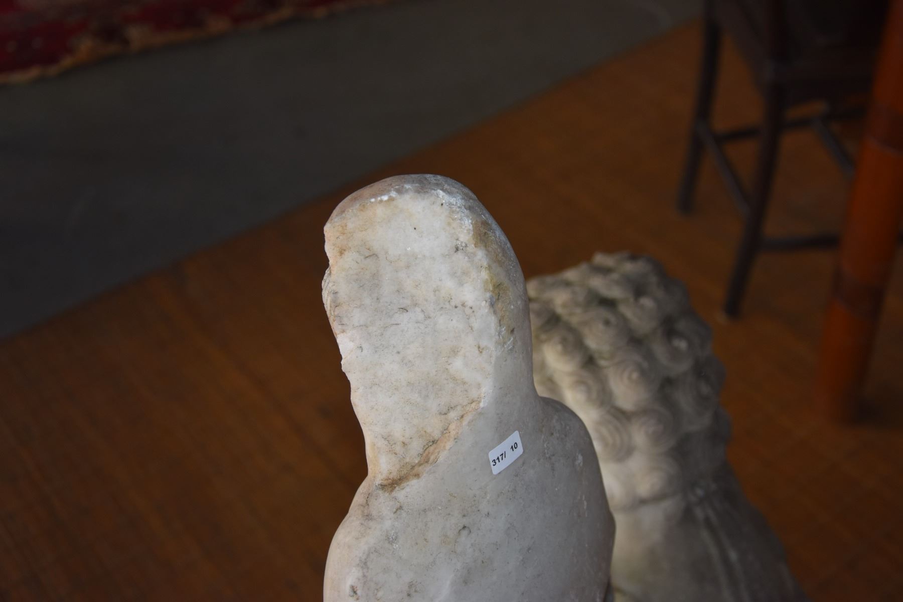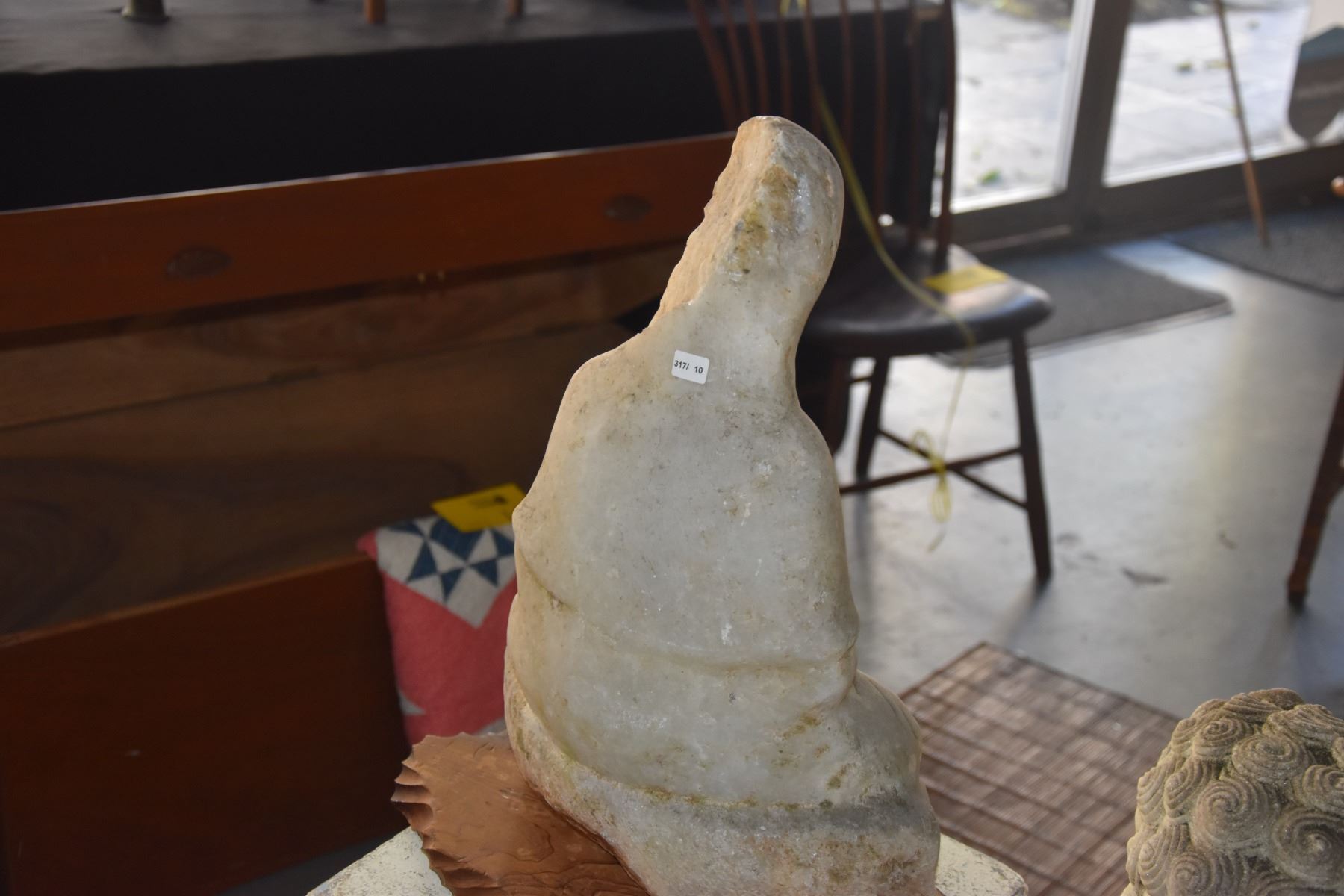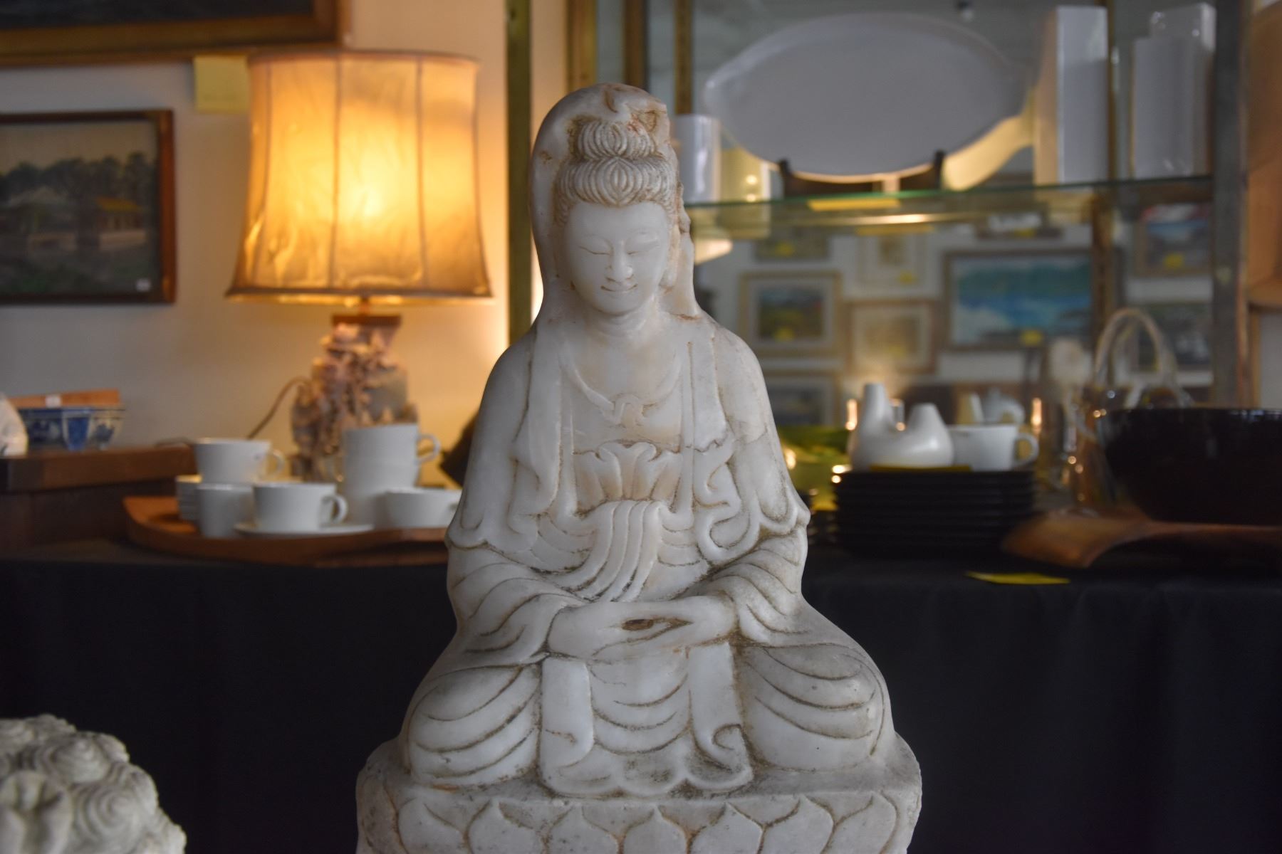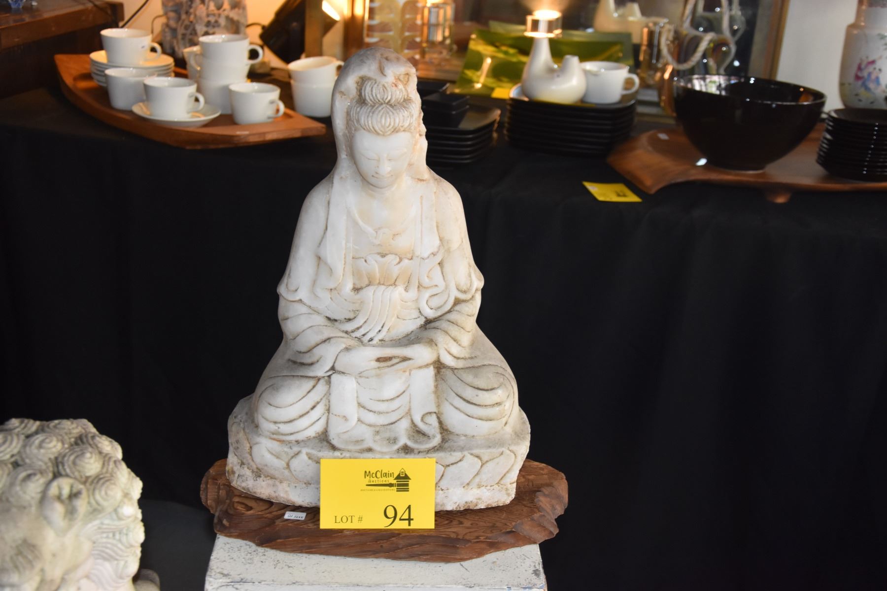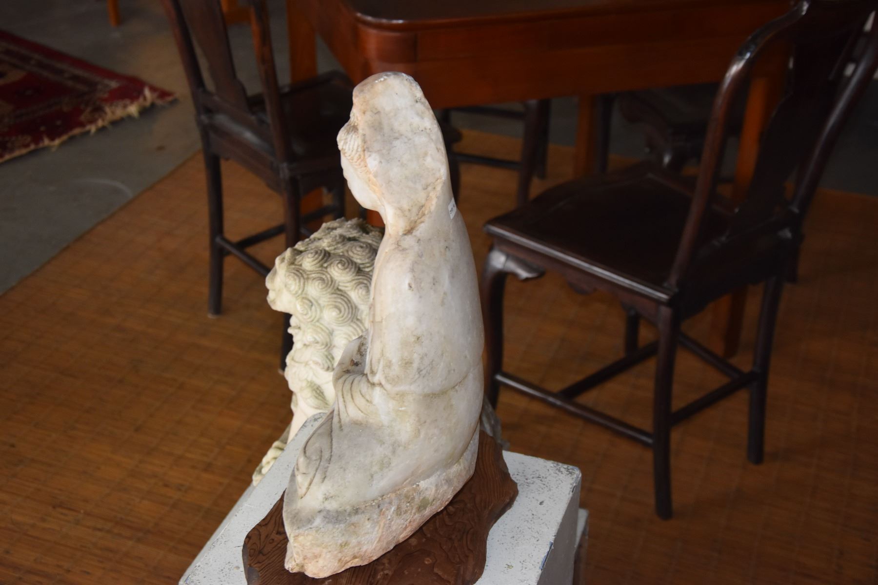 ANTIQUE CHINESE WHITE STONE QUAN YIN W/WOOD BASE (17")