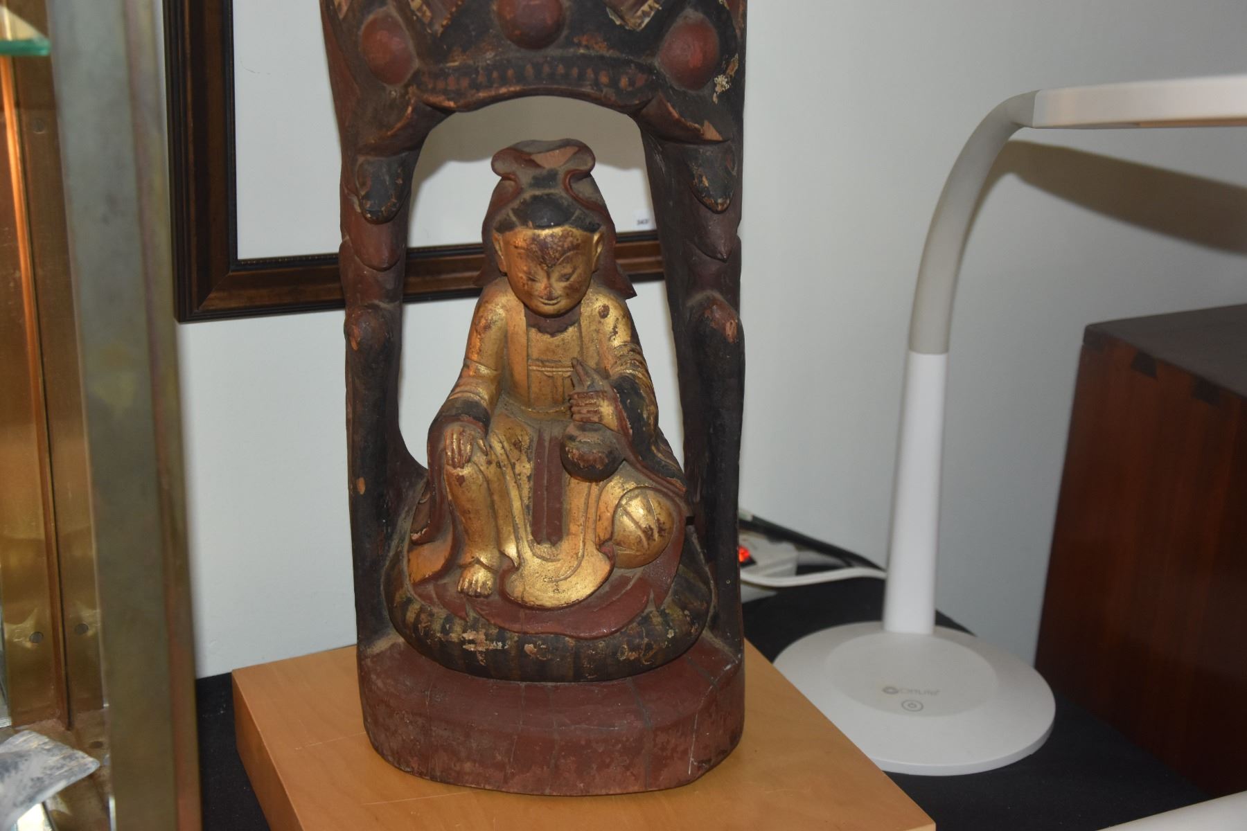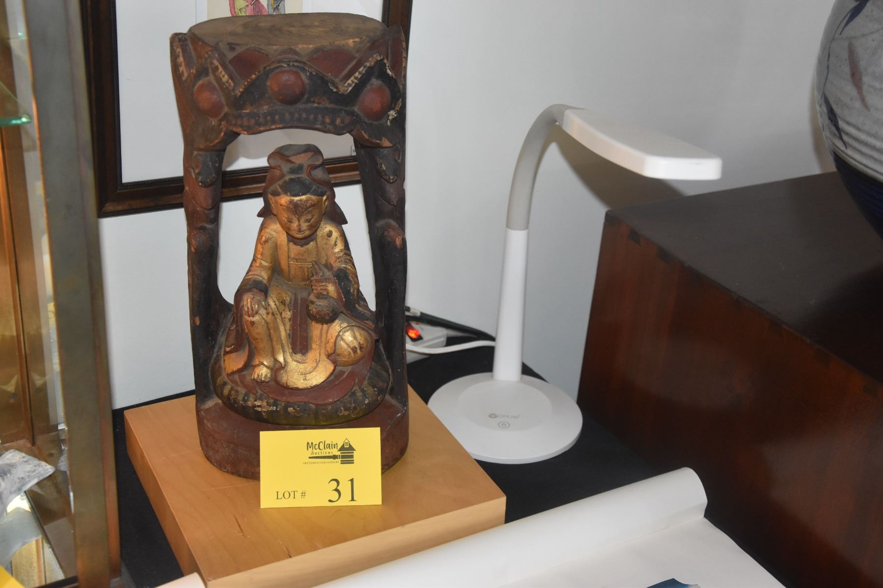ANTIQUE CHINESE WOOD CARVED BUDDHA (16") (DOES NOT INCLUDE STAND)
