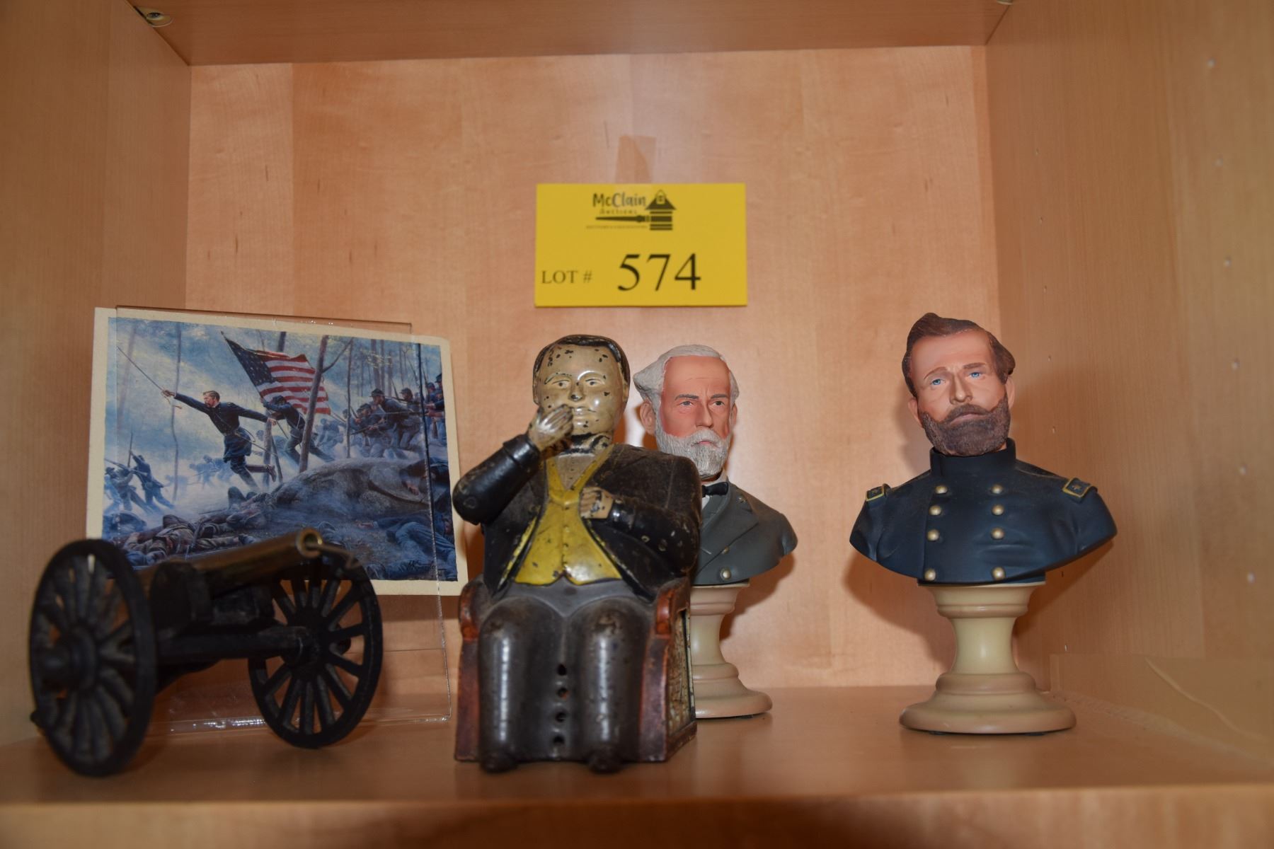 ANTIQUE COIN BANK BY TAMANY, CIVIL WAR RELATED BUSTS, CANNON & POSTER