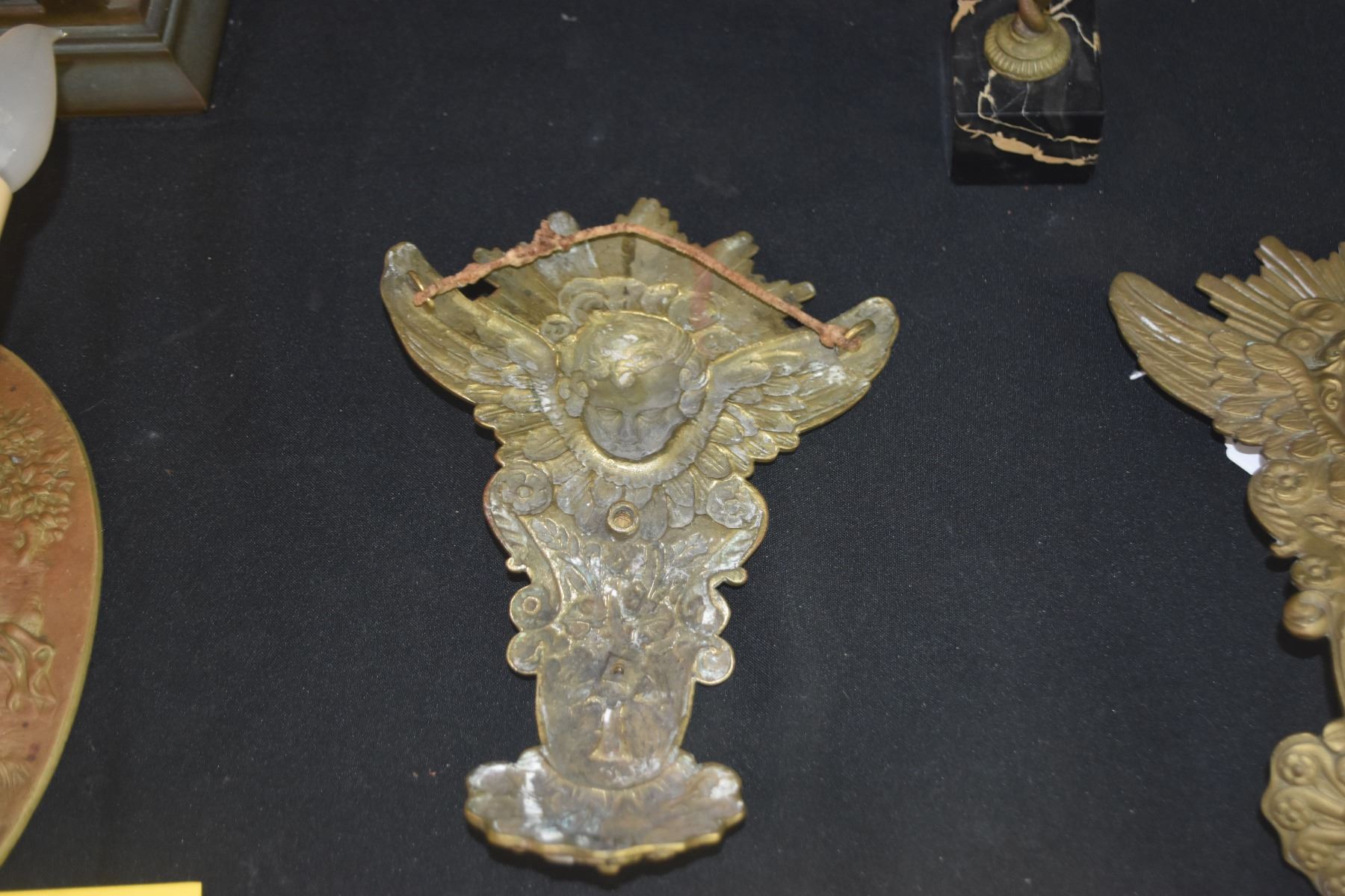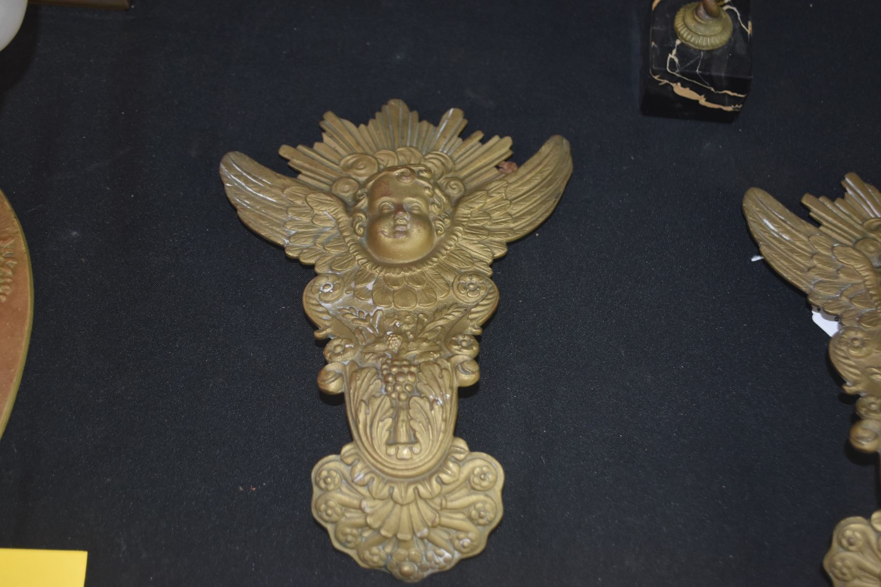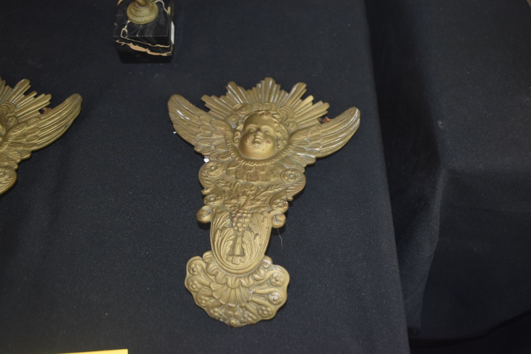 ANTIQUE FRENCH STYLE CHERUB WALL HANGINGS & GILDED CHERUB ON MARBLE BASE (3 PCS)