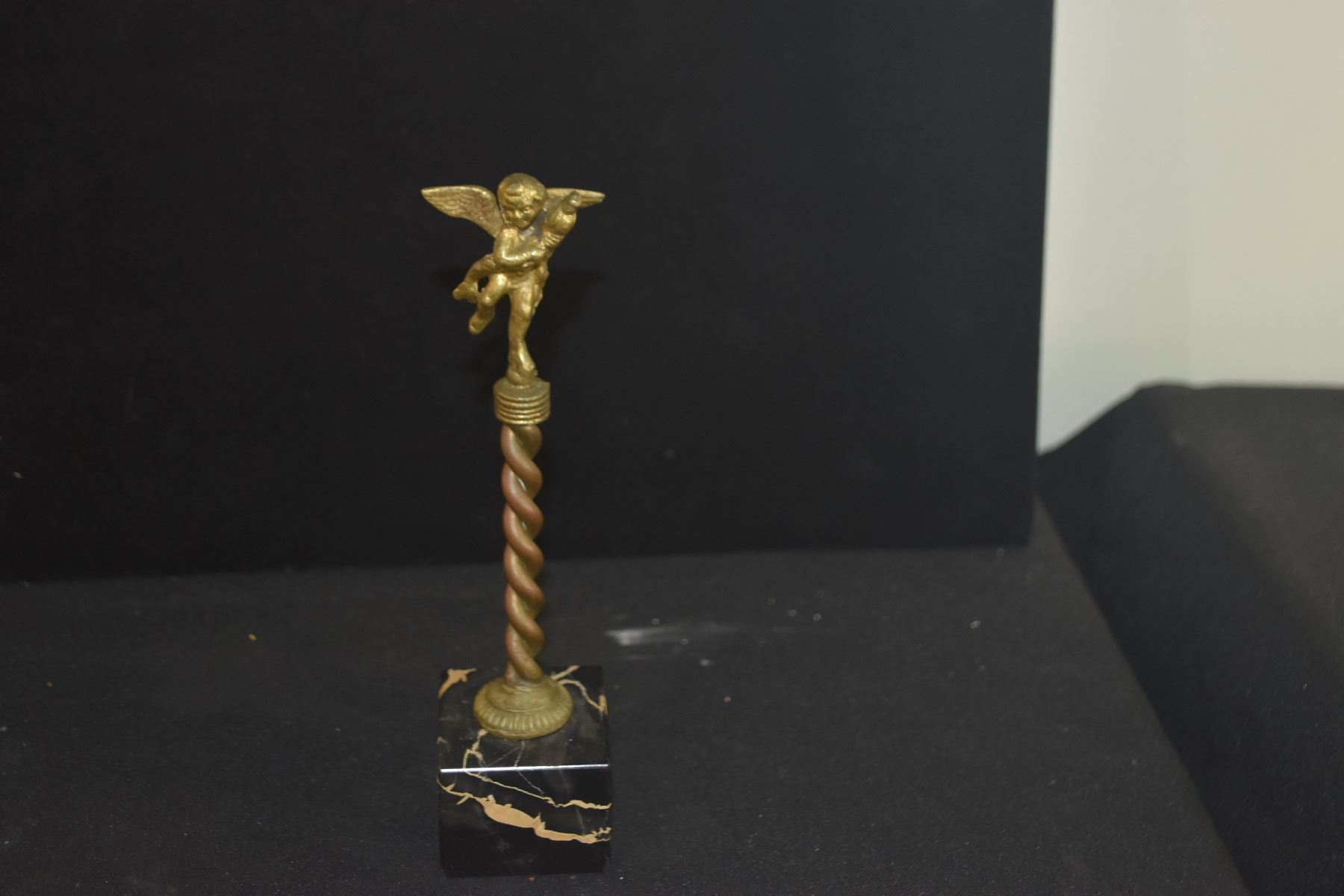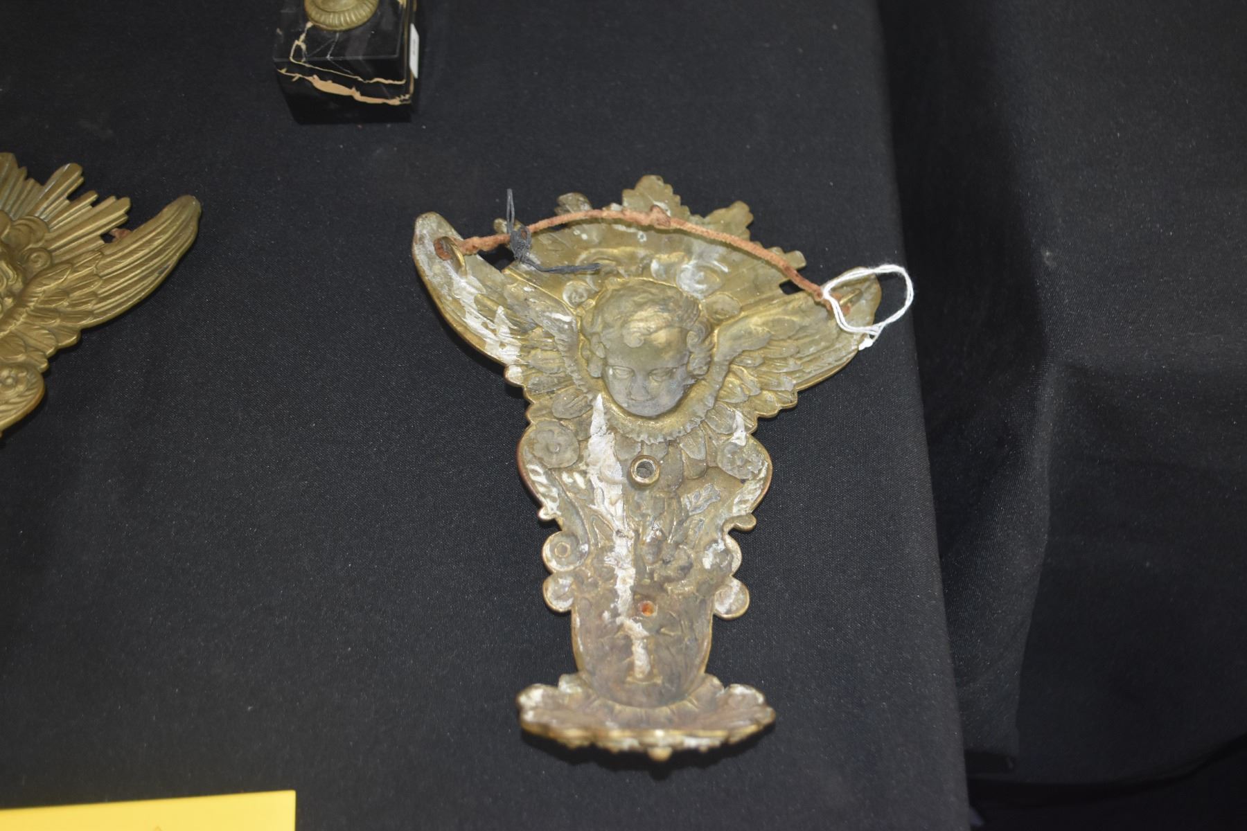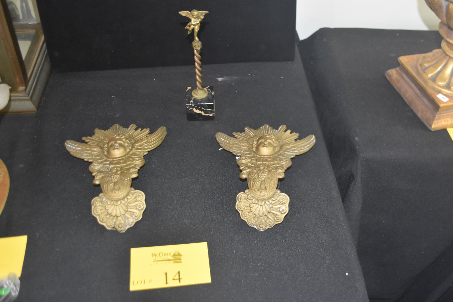 ANTIQUE FRENCH STYLE CHERUB WALL HANGINGS & GILDED CHERUB ON MARBLE BASE (3 PCS)