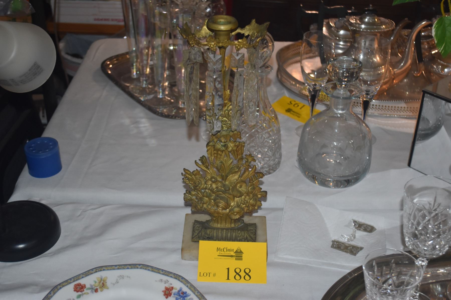 ANTIQUE GIRANDOLE-BRASS, MARBLE & CRYSTAL CANDLE HOLDERS (PAIR)